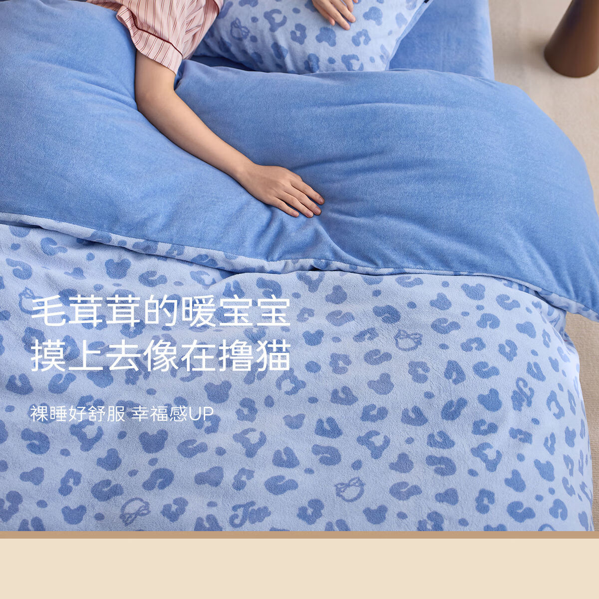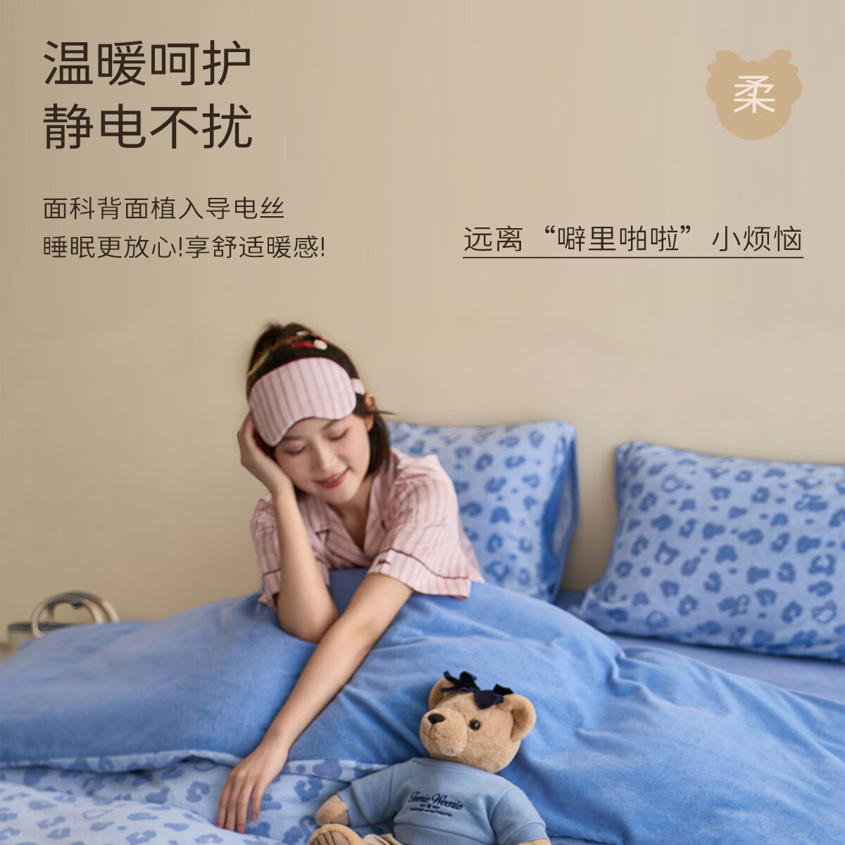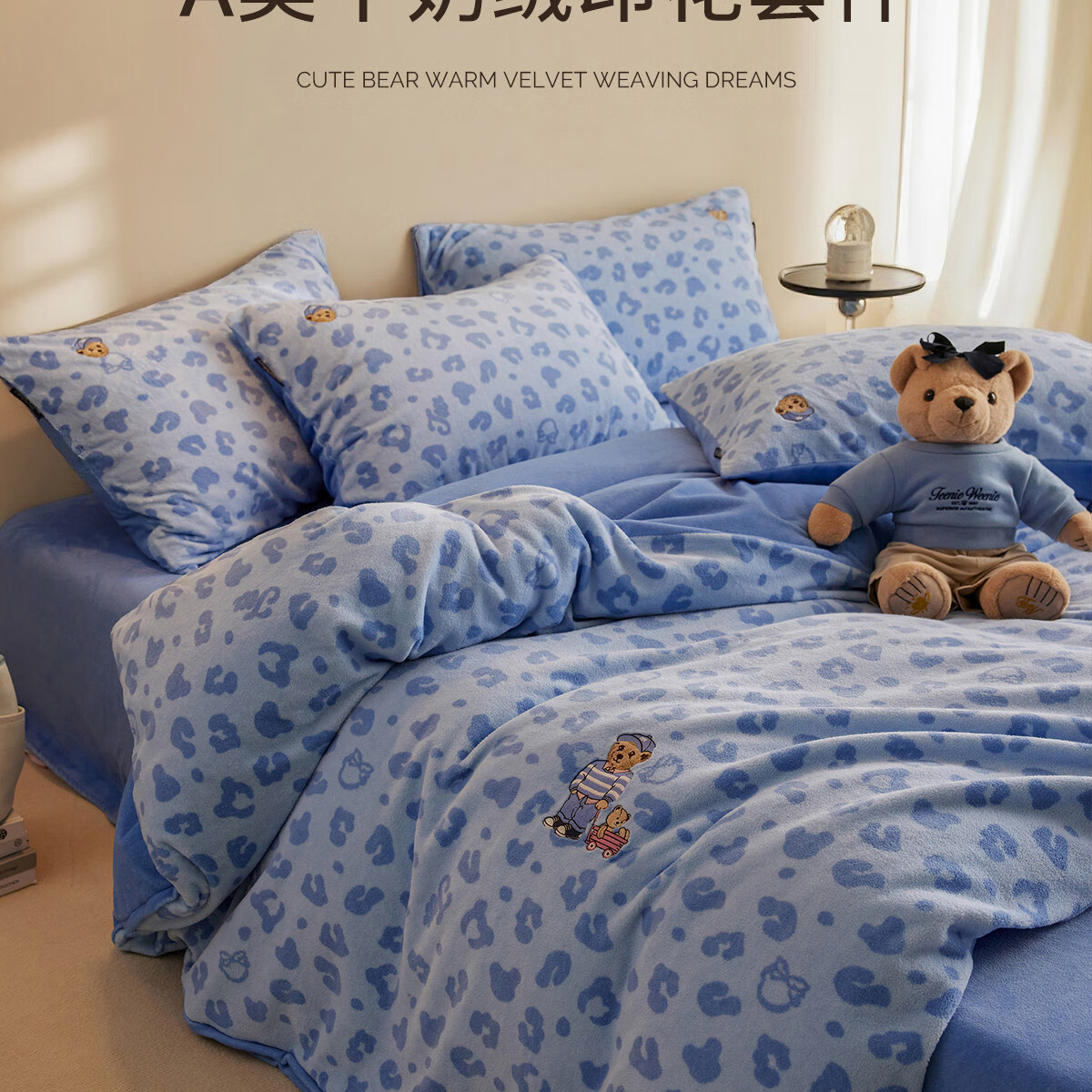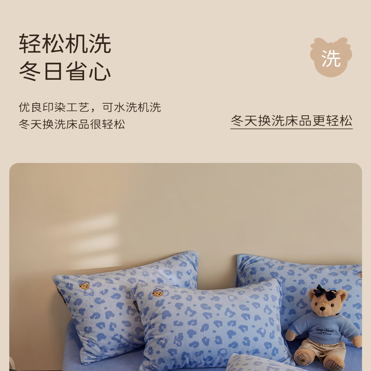Teenie Weenie小熊A类豹纹牛奶绒加厚四件套秋冬保暖珊瑚绒被套法兰绒套件 小熊豹豹系列-粉 1.5/1.8m 床单款 被套200*230cm