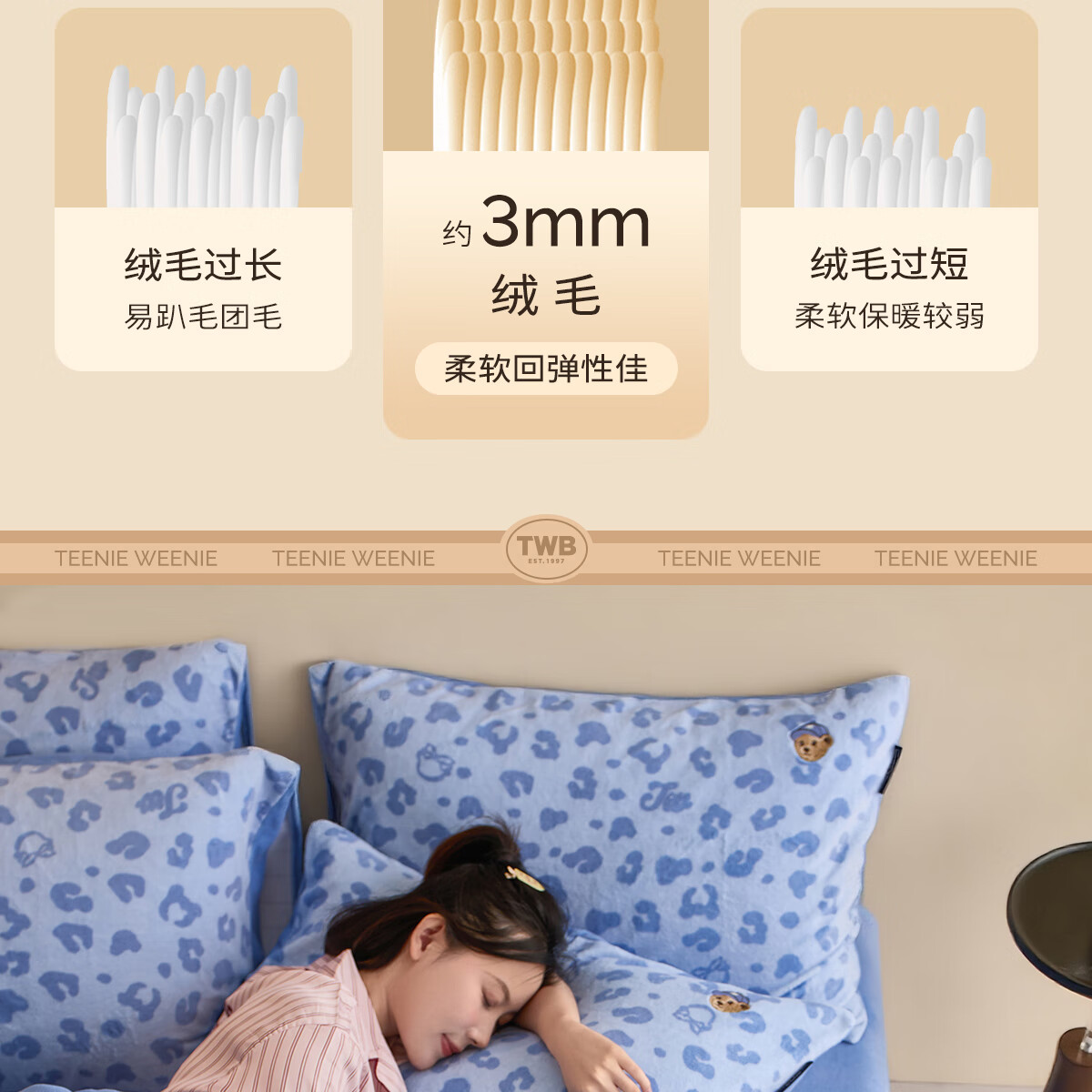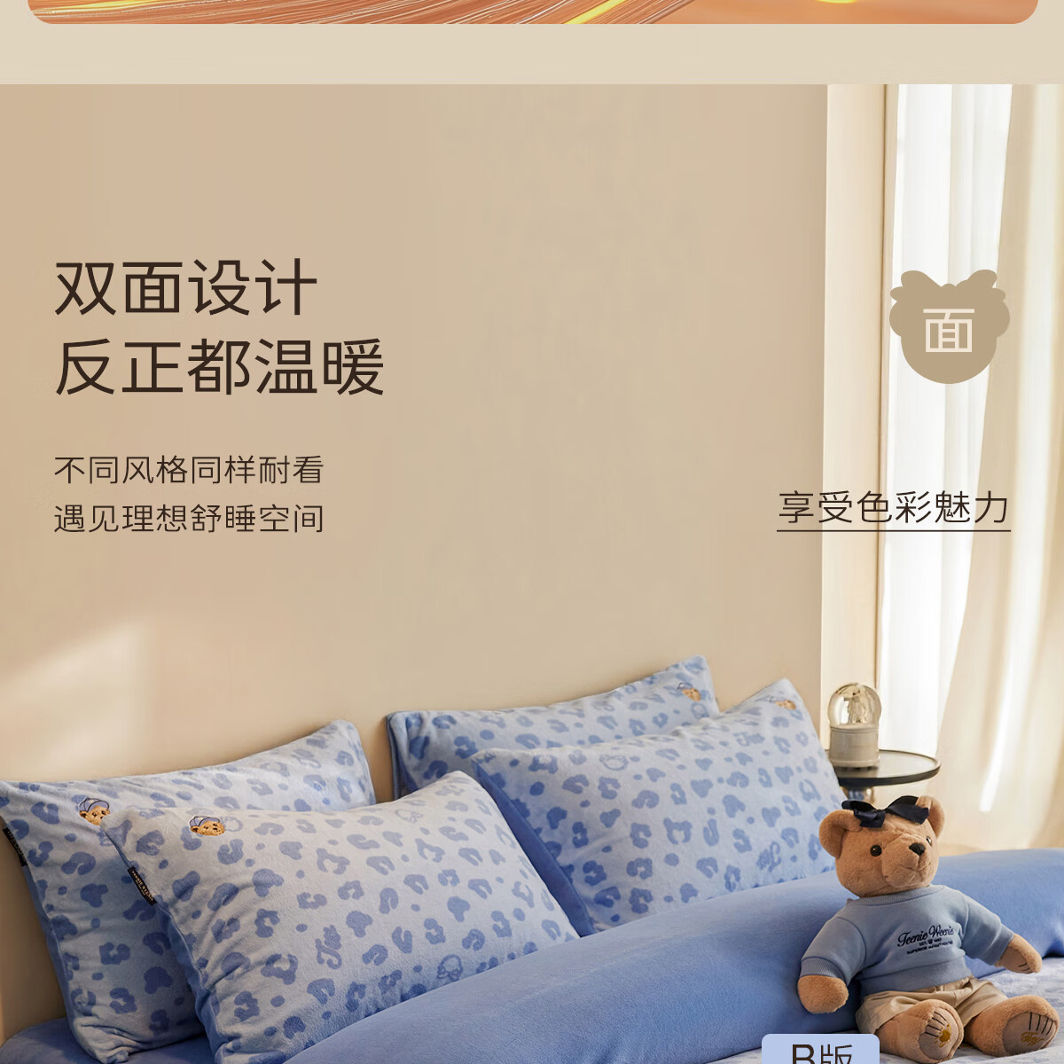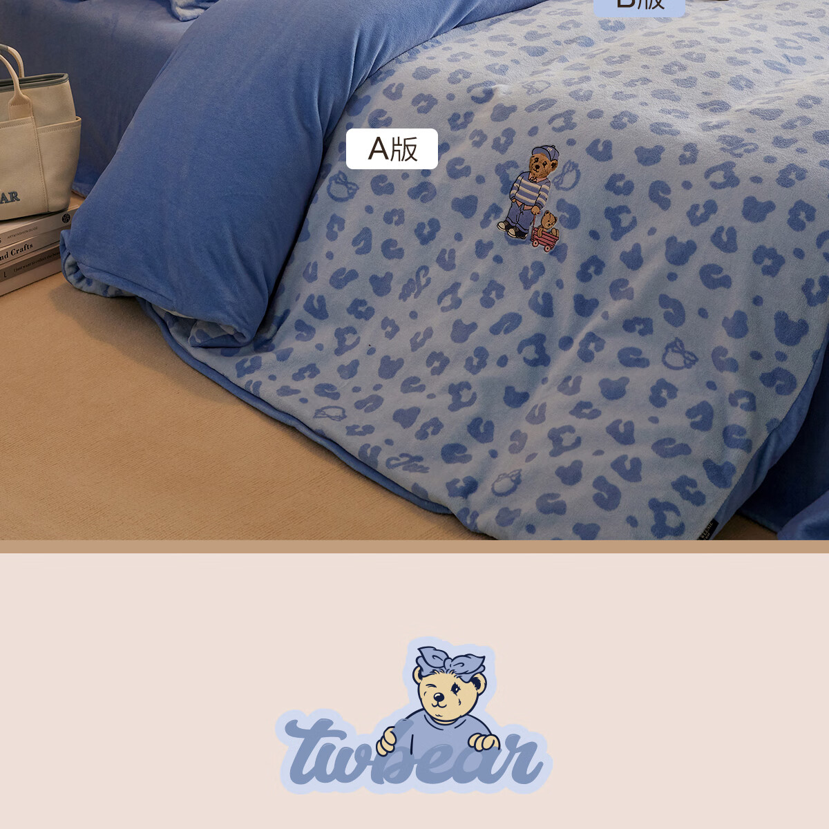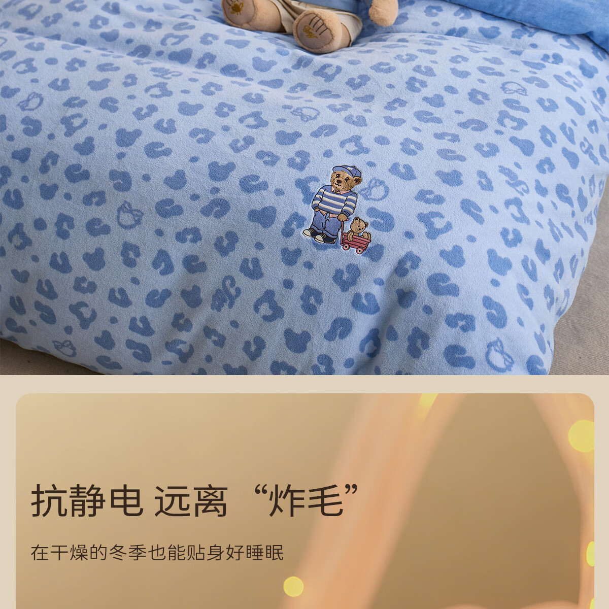 Teenie Weenie小熊A类豹纹牛奶绒加厚四件套秋冬保暖珊瑚绒被套法兰绒套件 小熊豹豹系列-粉 1.5/1.8m 床单款 被套200*230cm