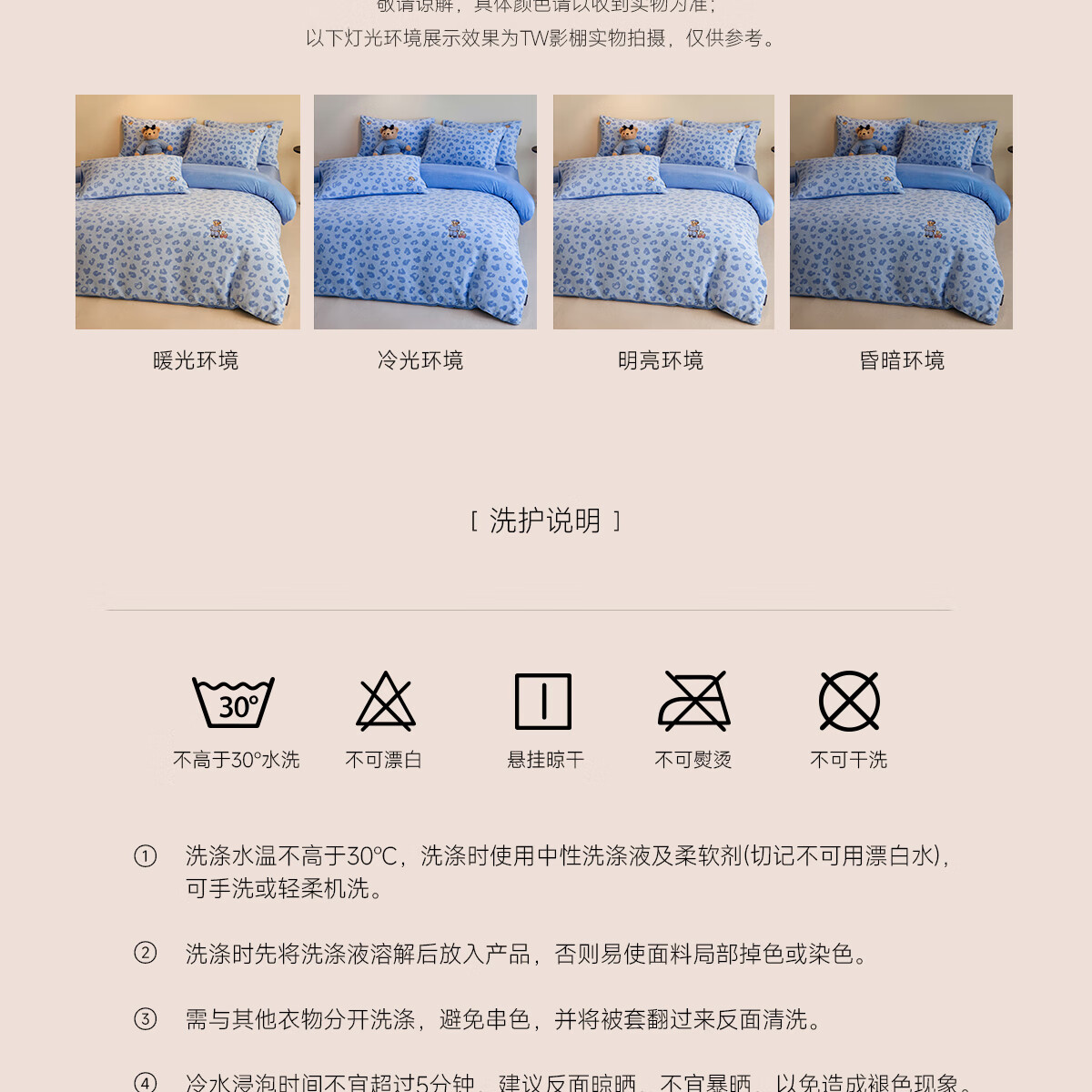 多喜爱家纺 A类纯棉床上四件套 Qi可Qi克系列双人全棉床单被套床上用品套件1.5米床203*229cm