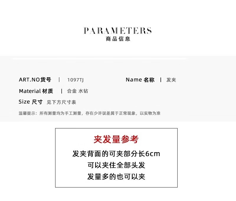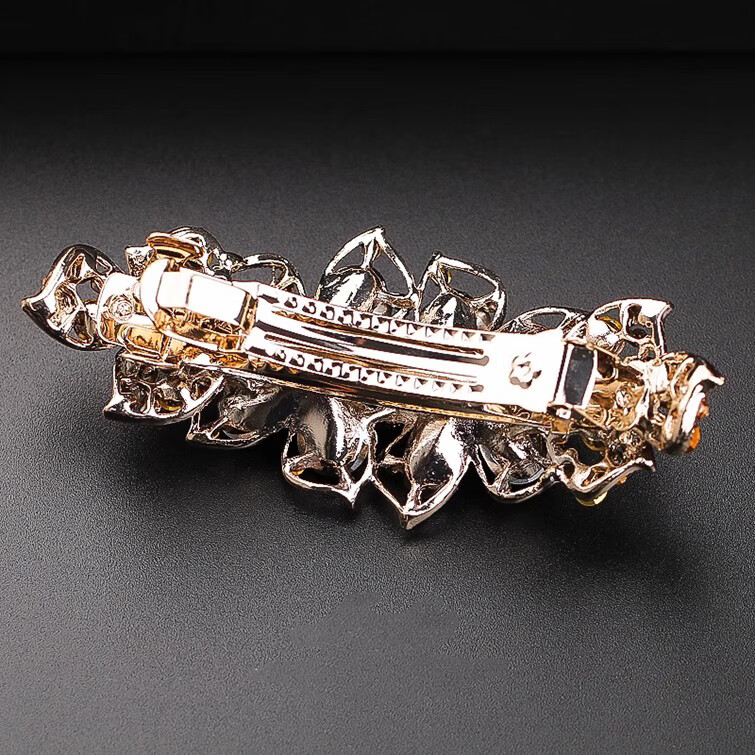 HANS’F夹子头饰2026年新款高端发夹女后脑勺大号横夹水晶发卡妈妈弹簧夹 香槟色