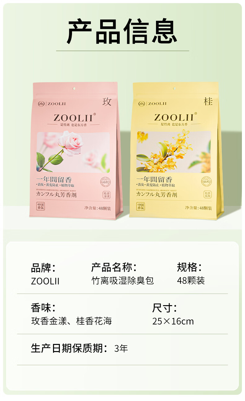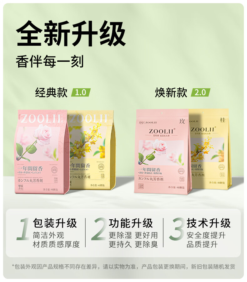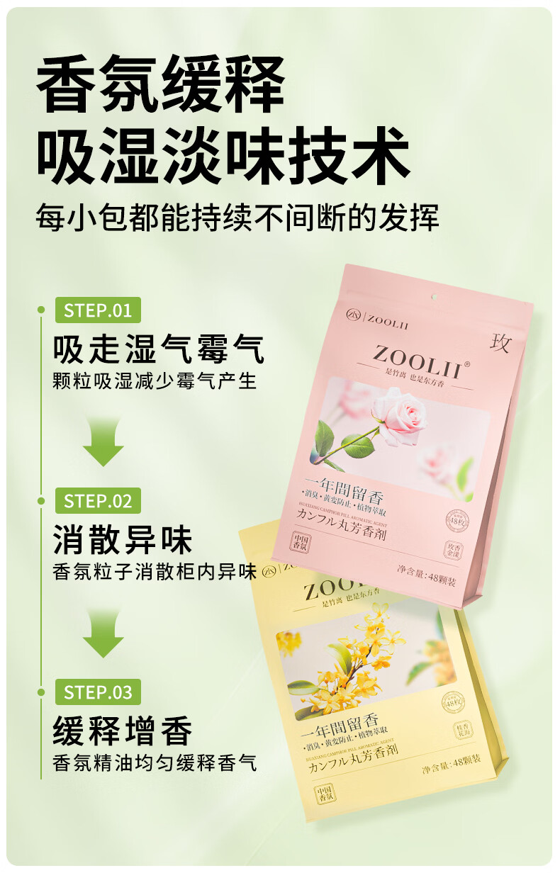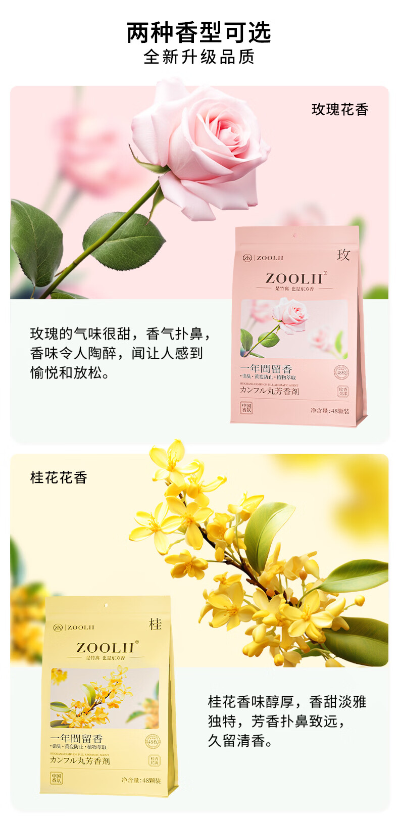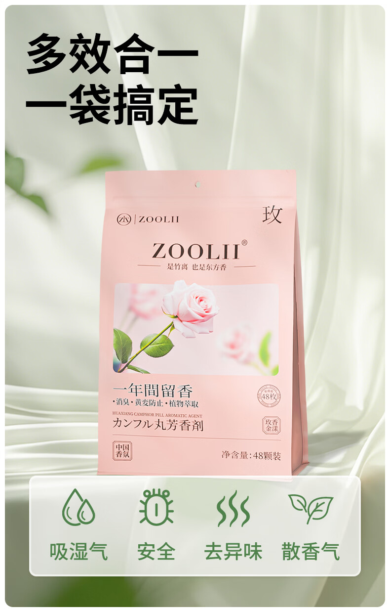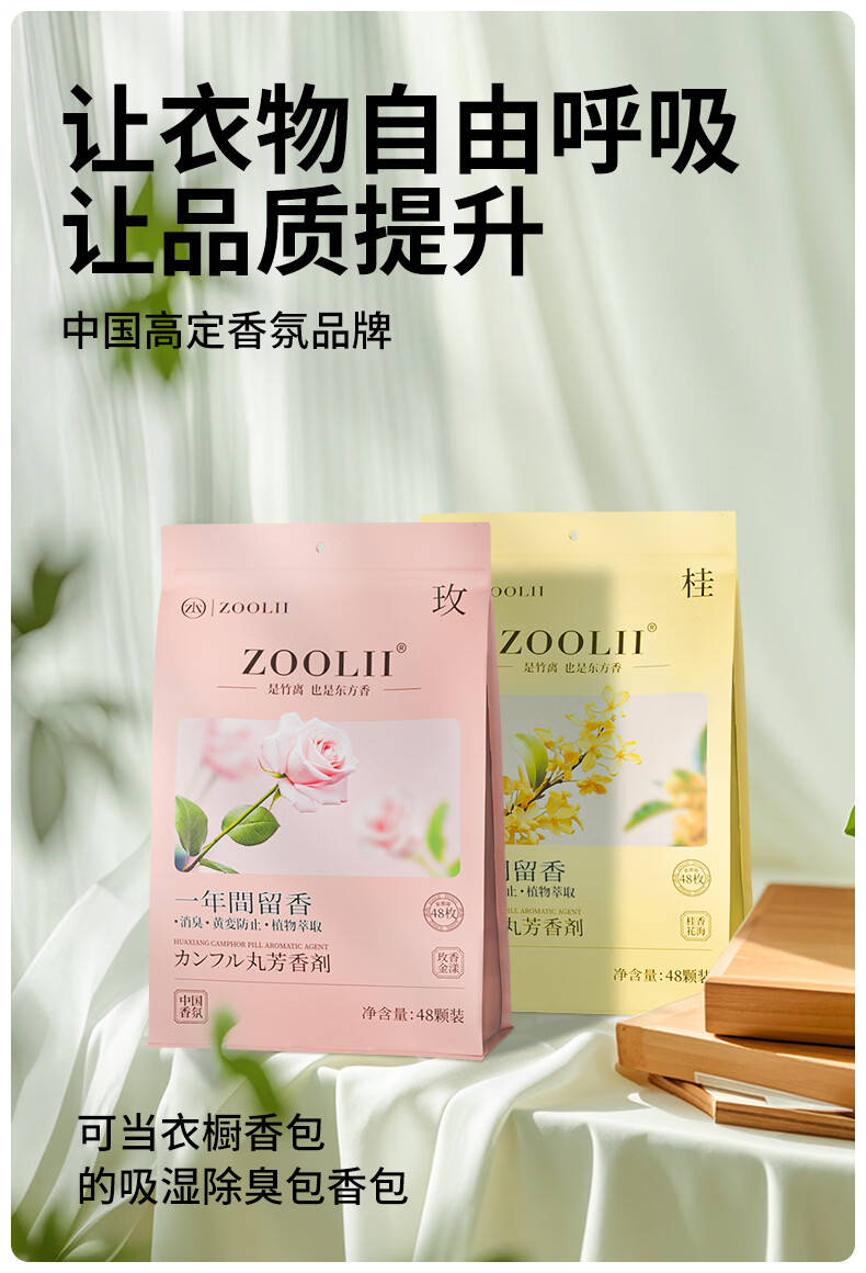 ZOOLII花香樟脑丸香包香薰防霉防潮衣柜鞋柜独立包装清香型香氛芳香剂 (96小袋)玫瑰花香1包+桂花香1包