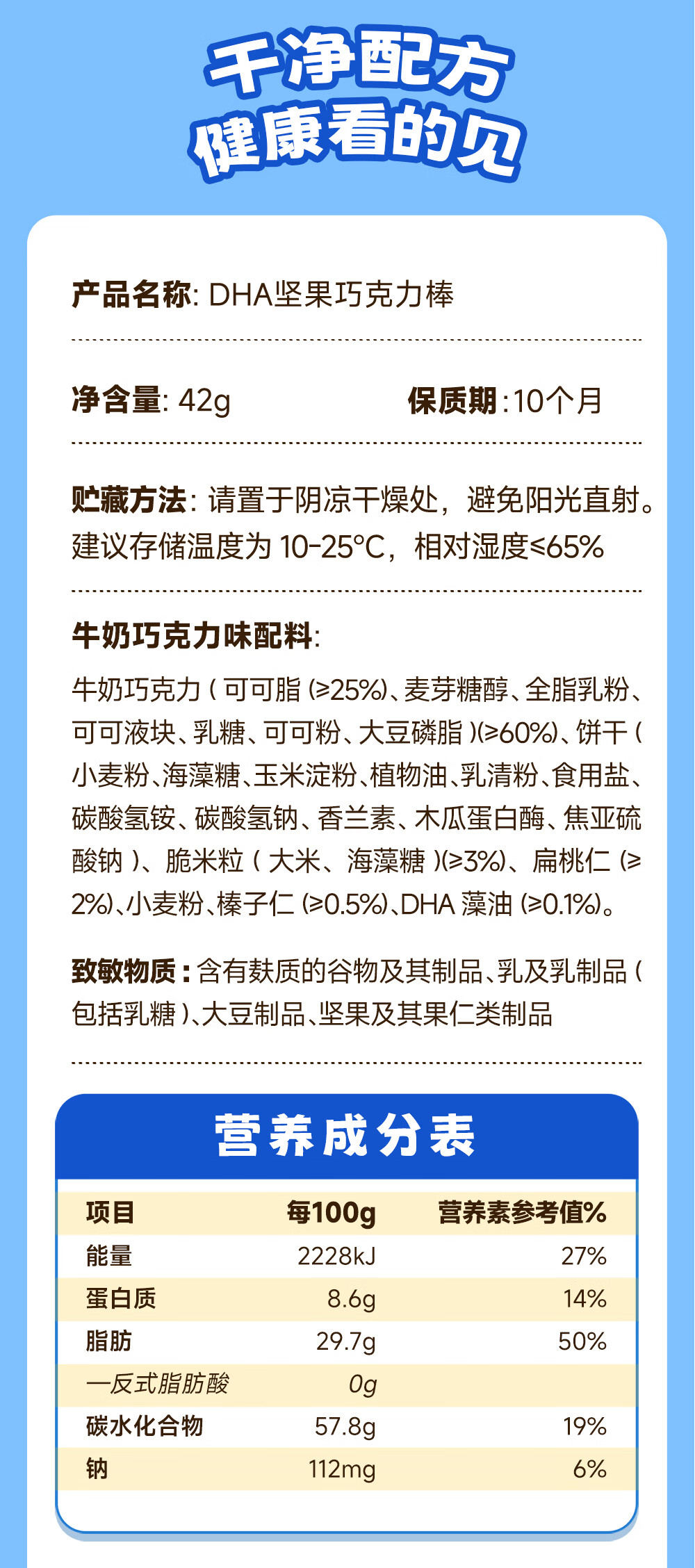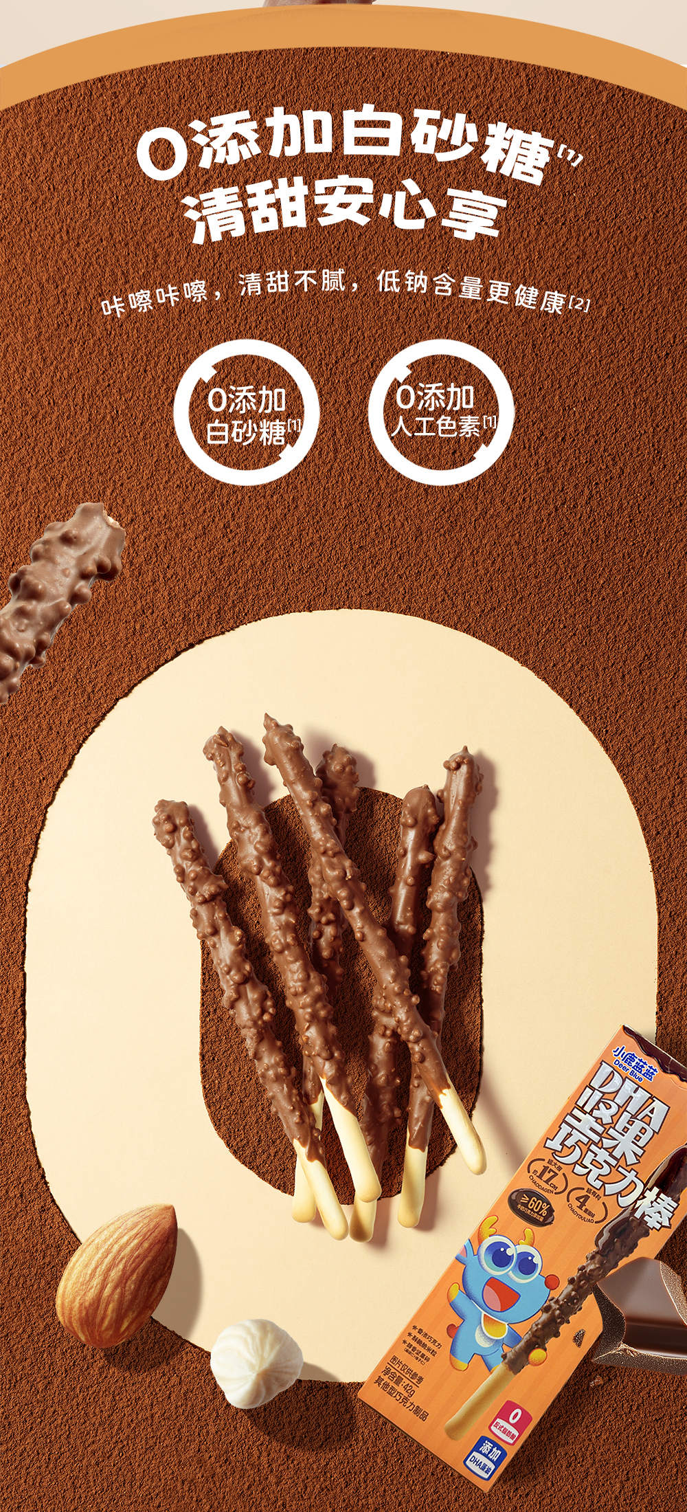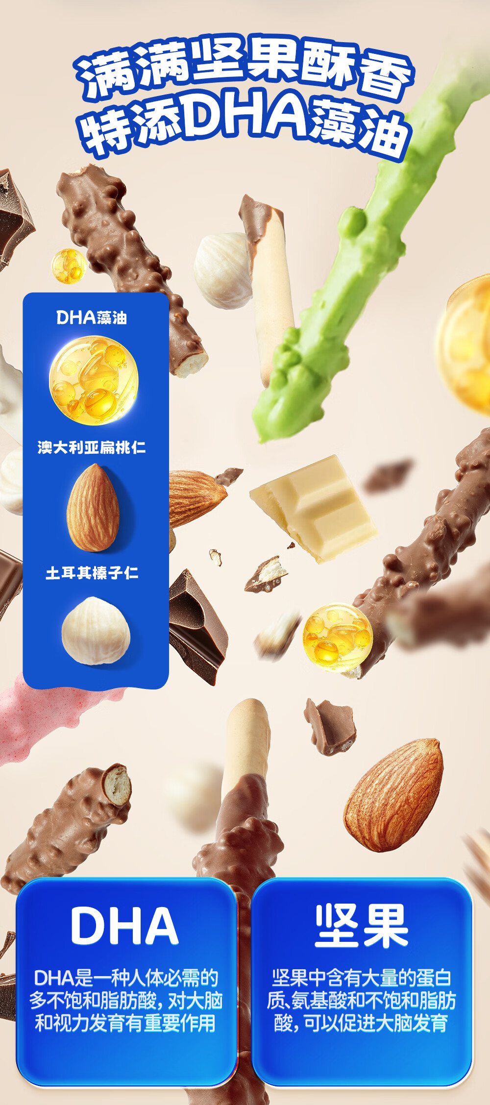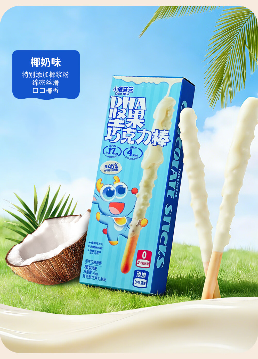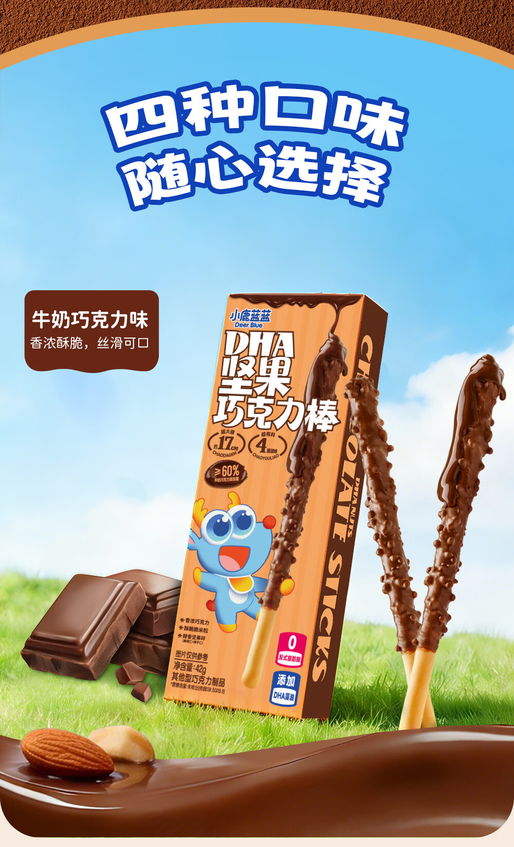 小鹿蓝蓝DHA坚果巧克力棒儿童零食宝宝磨牙炭烧棒无蔗糖棒棒 【6盒|超值分享】坚果巧克力棒/252g