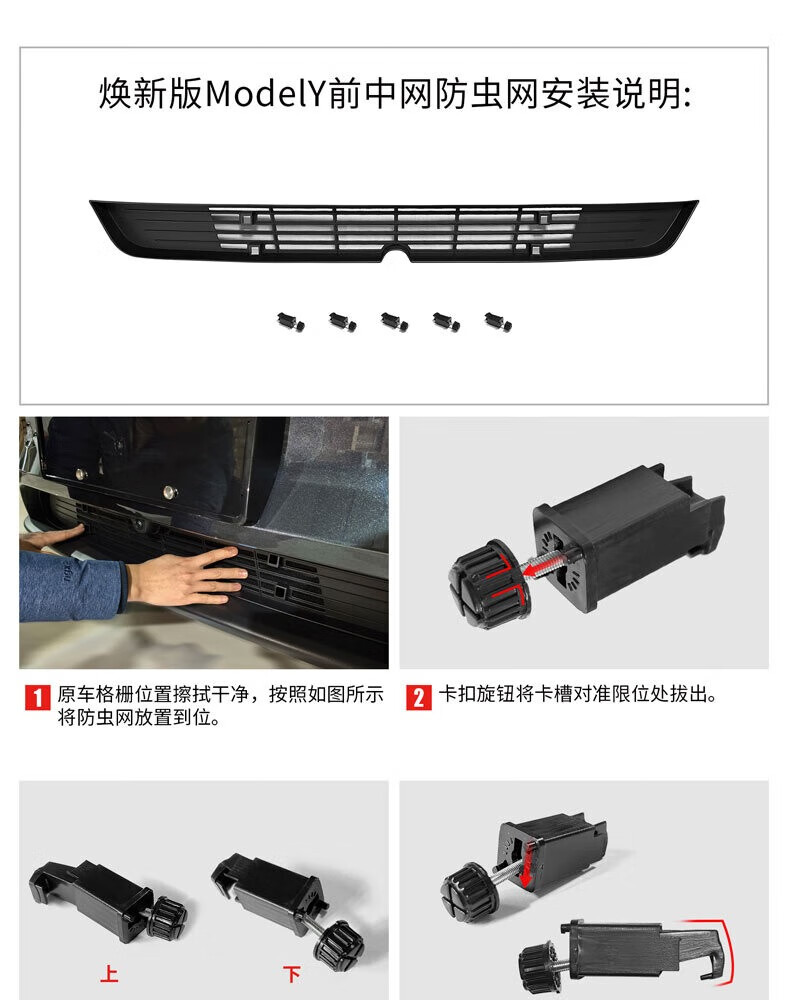 TESUPPORT防虫网适用2025款特斯拉焕新版ModelY/YL6座中网进气口保护罩改装 焕新版ModelY/YL一体式防虫网