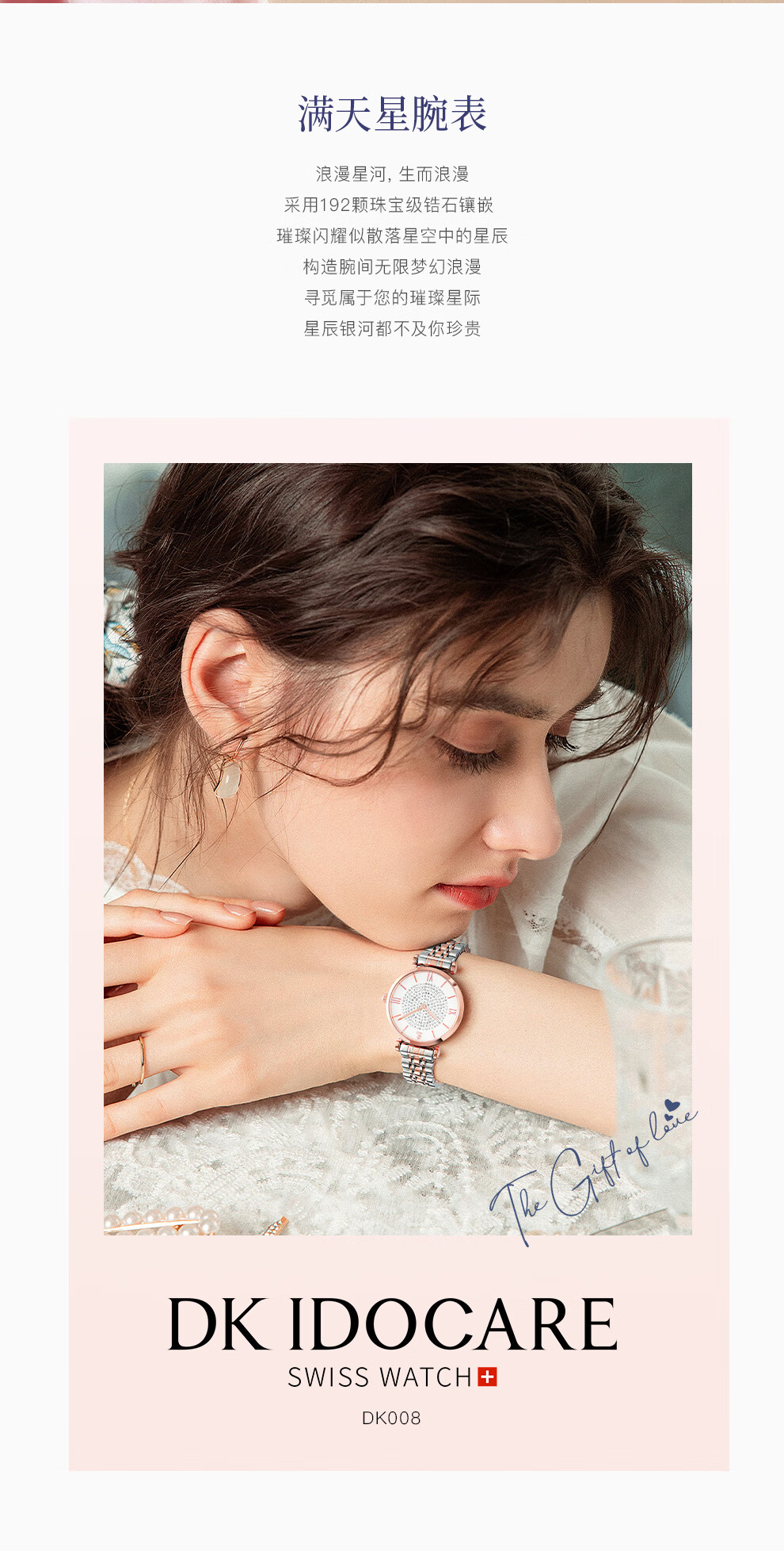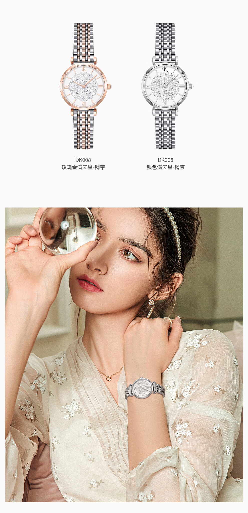DK满天星女士手表女轻奢石英腕表情人节生日新年礼物送女友送老婆 钢带满天星白盘金边 32mm