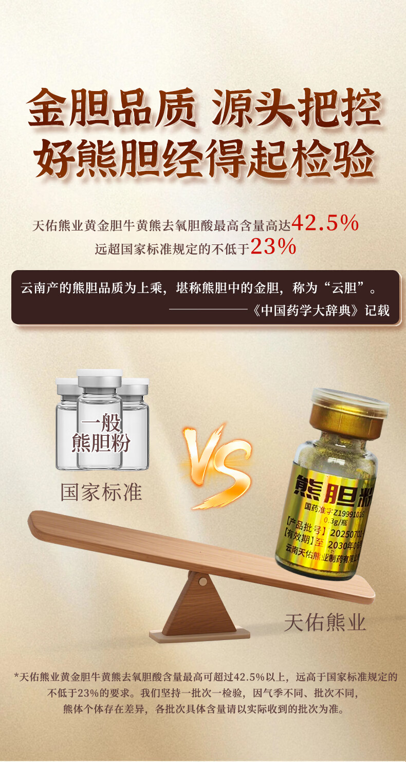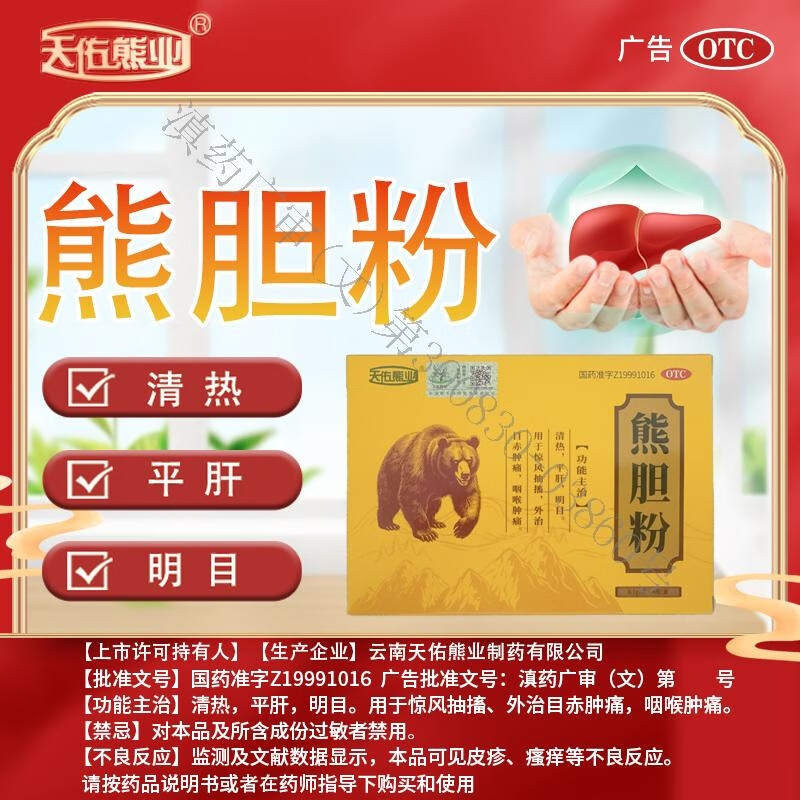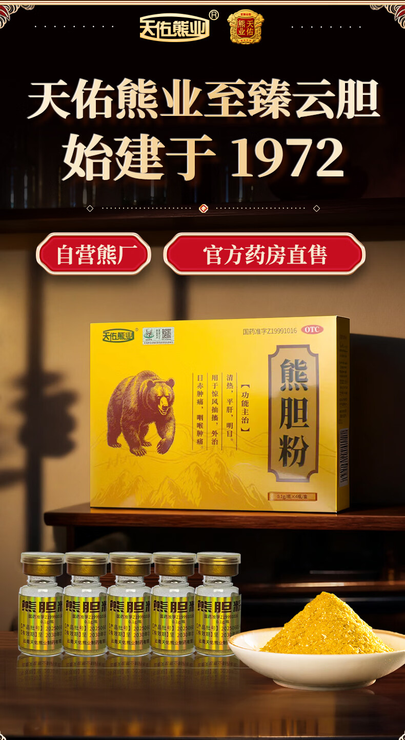 [天佑熊业]熊胆粉 0.1g*4瓶 5盒装 正品国药准字OTC0.1g*4瓶/盒清热平肝明目药正宗云南产金胆级用于目赤肿痛咽 特惠装 共20瓶