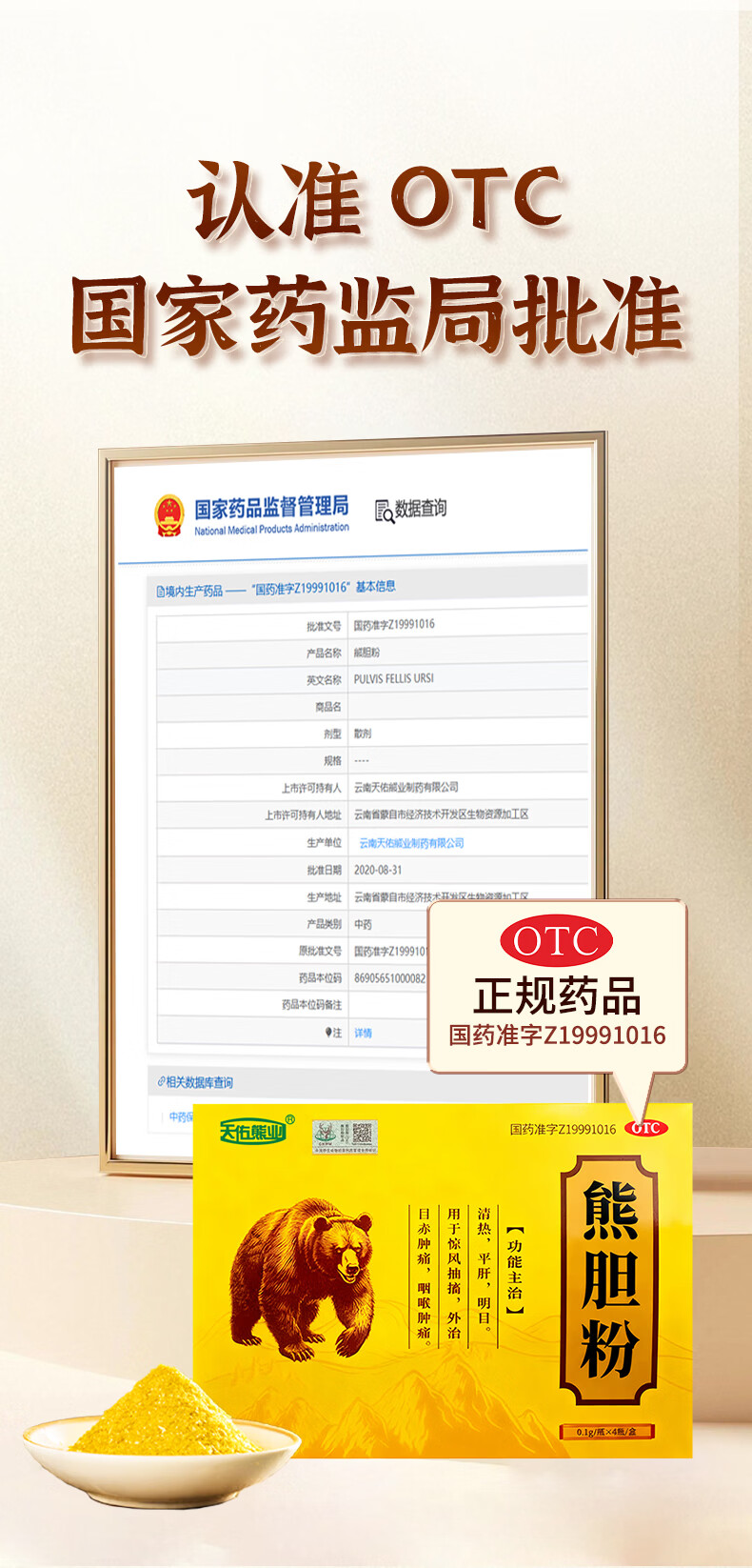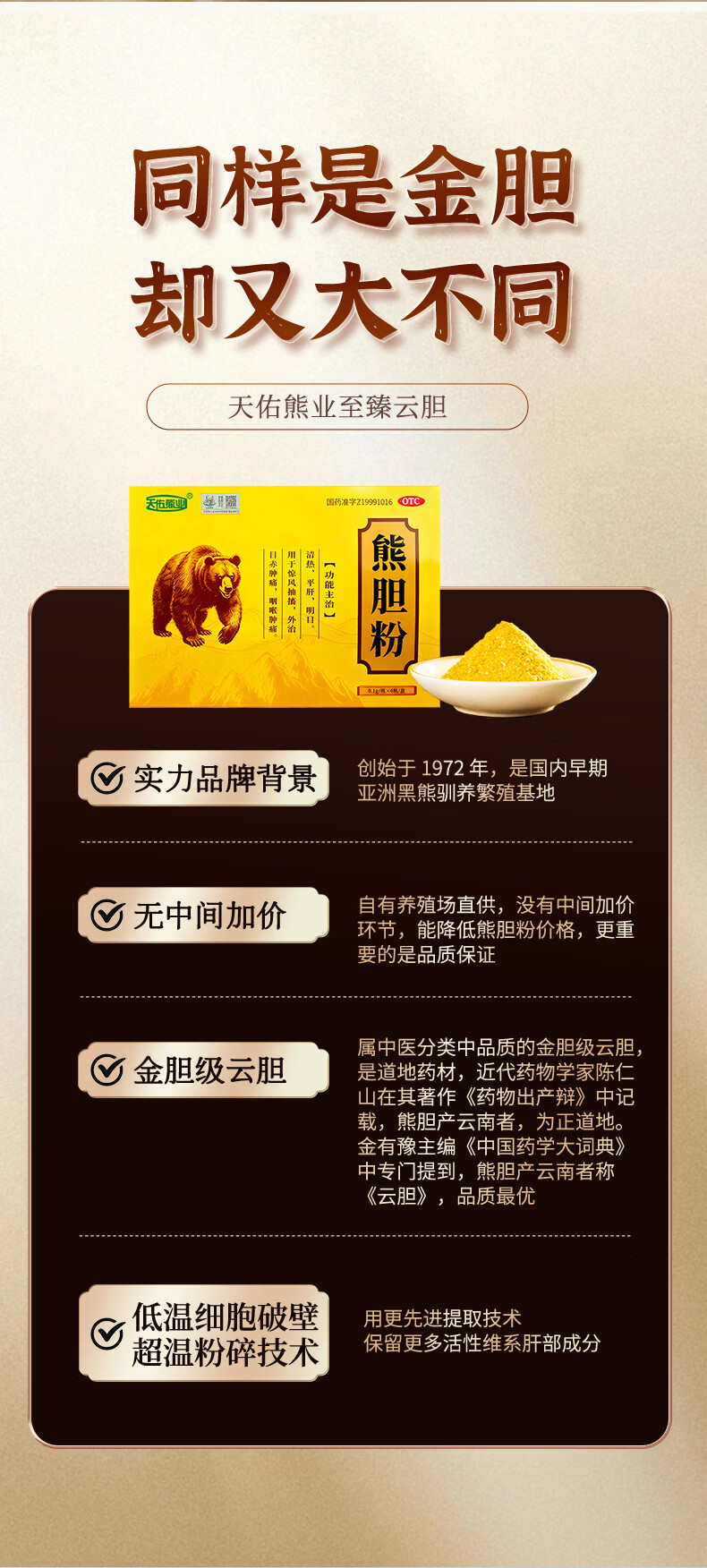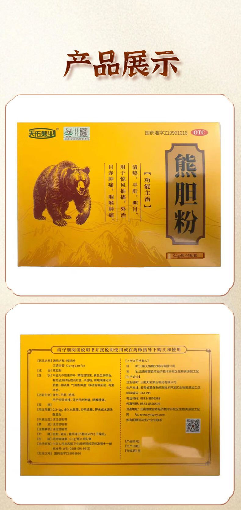 [天佑熊业]熊胆粉 0.1g*4瓶 5盒装 正品国药准字OTC0.1g*4瓶/盒清热平肝明目药正宗云南产金胆级用于目赤肿痛咽 特惠装 共20瓶