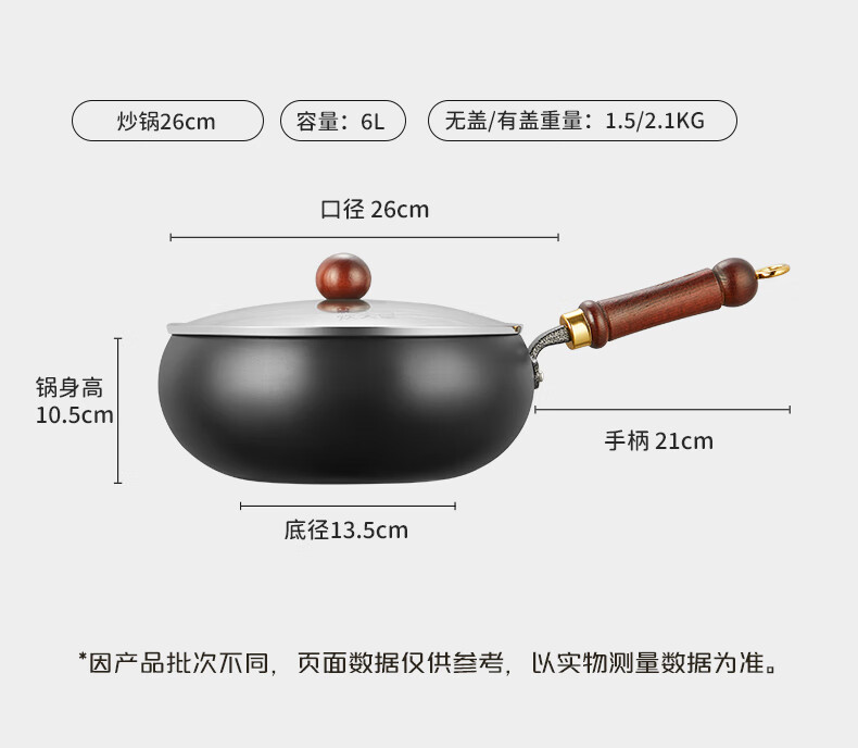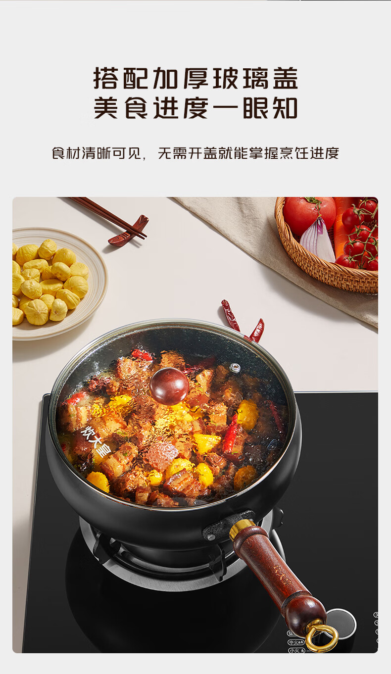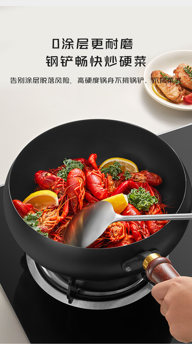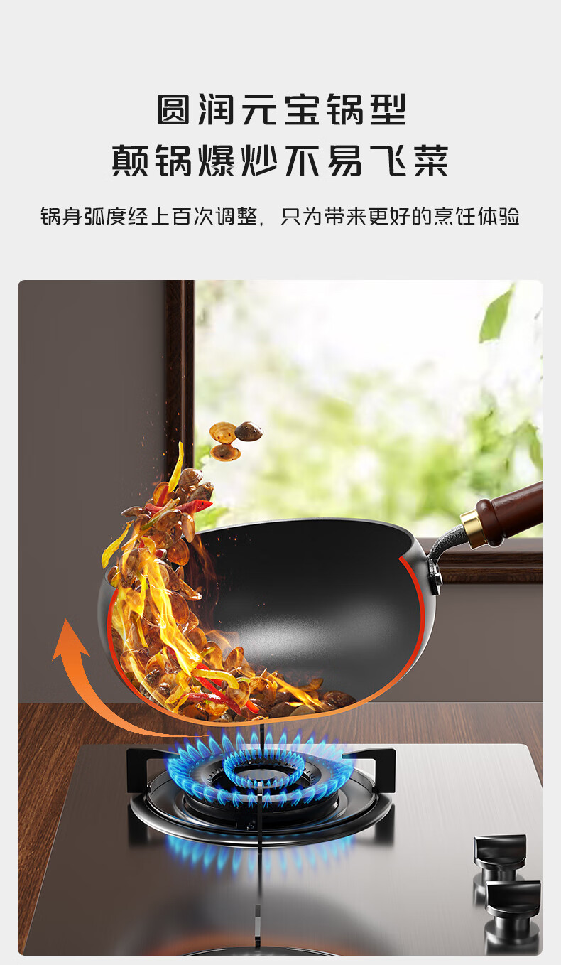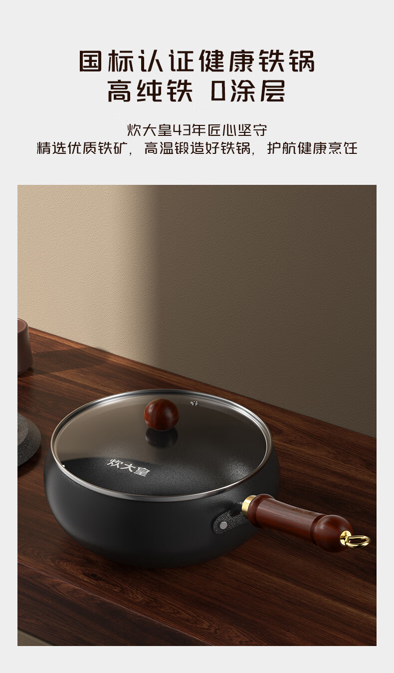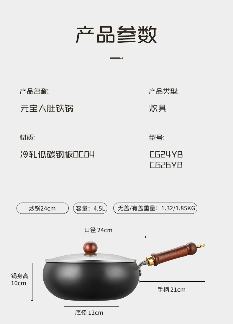 炊大皇(COOKER KING)大肚锅铁锅无涂层炒锅平底铁锅燃气灶电磁炉通用多功能家用炒菜锅 0涂层24cm大肚精铁炒锅+锅盖 24cm