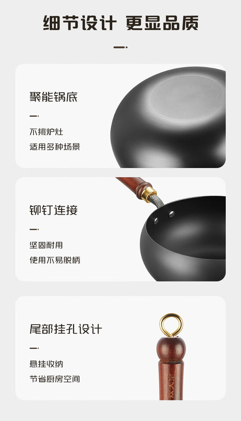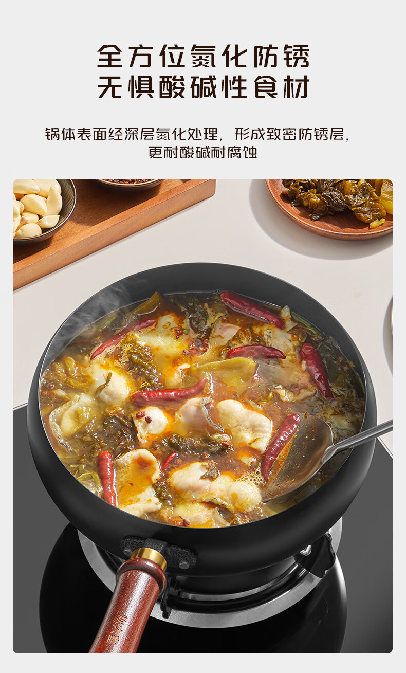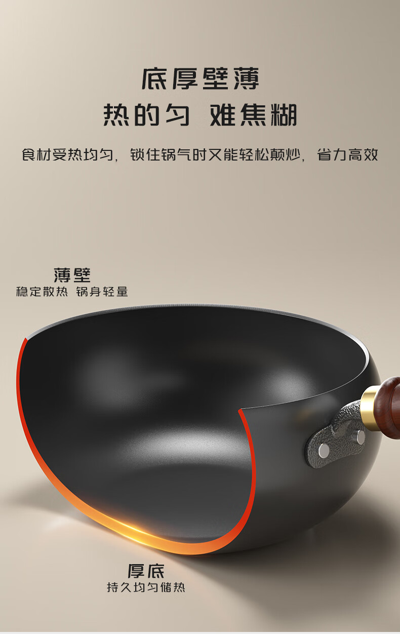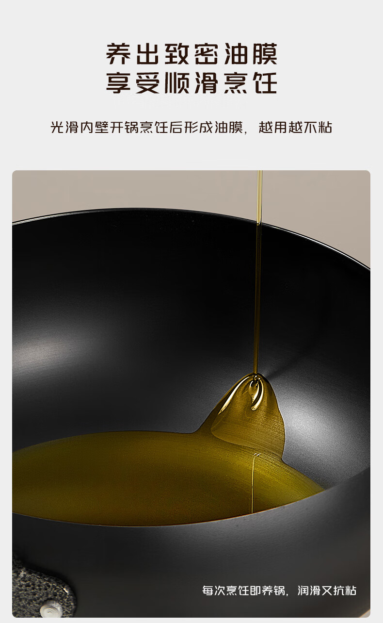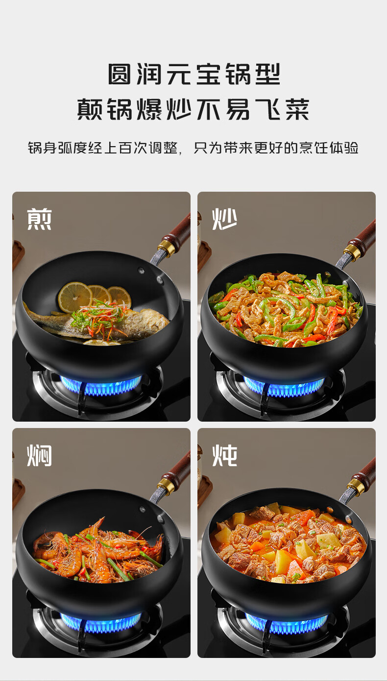 【严选百货】平底锅炒锅家用铁锅厨师炒菜电磁炉燃气灶铁锅 34cm 1.8MM厚平底铁锅【手工烤蓝】