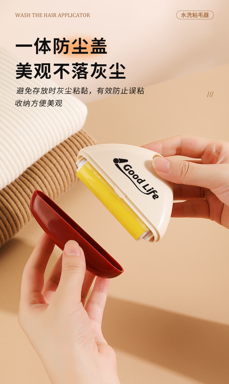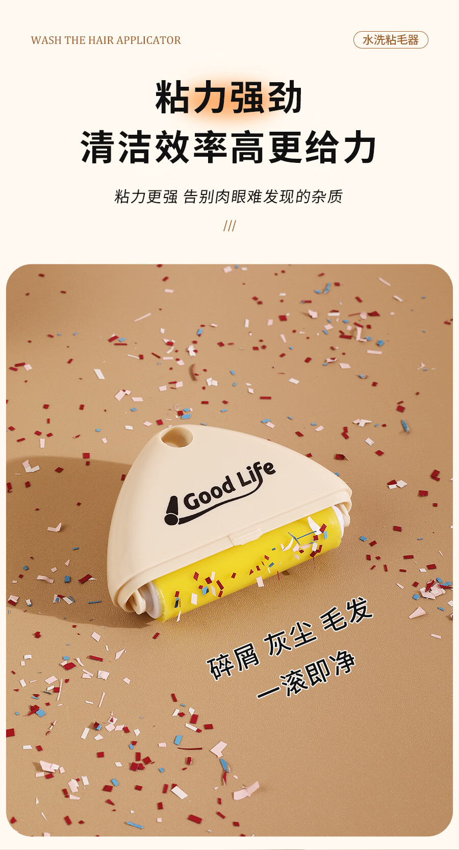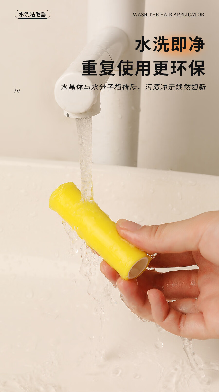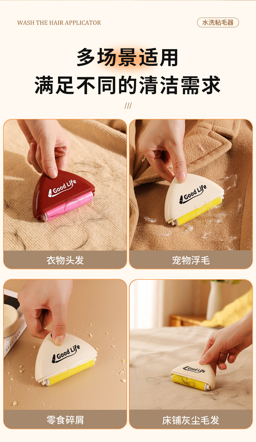 温诗欧可水洗粘毛器重复使用便携去毛宠物除毛滚筒 1个装(撞色奶油色为主) 无规格