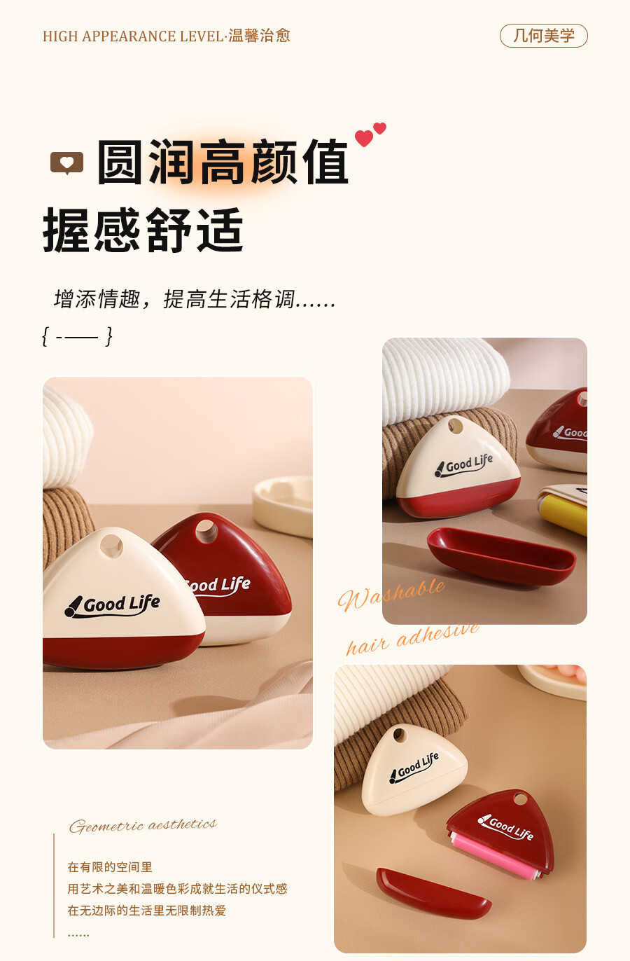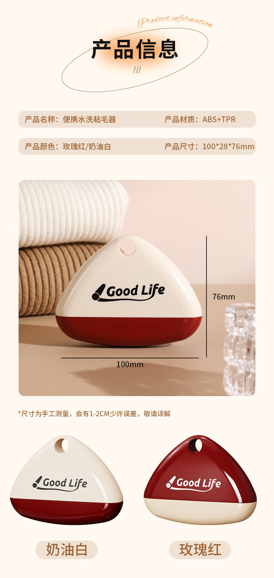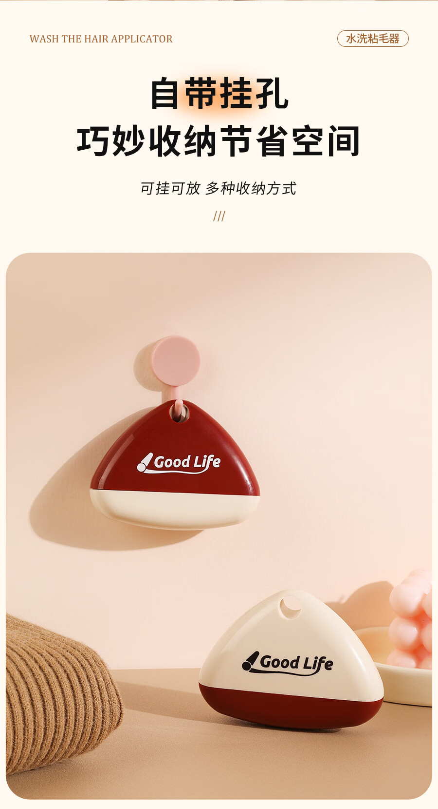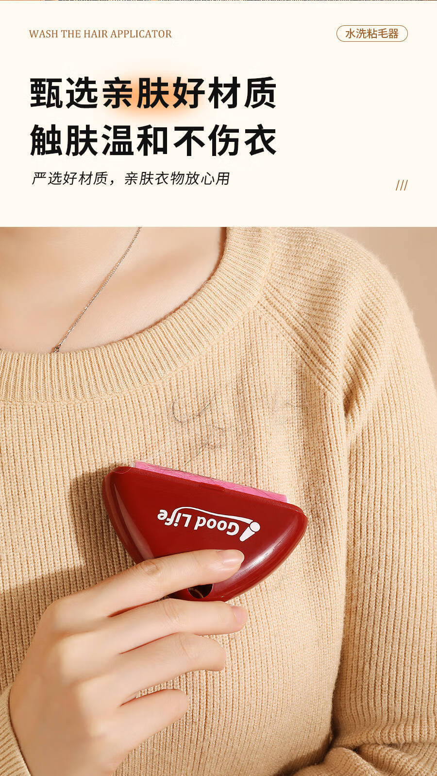 温诗欧可水洗粘毛器重复使用便携去毛宠物除毛滚筒 1个装(撞色奶油色为主) 无规格