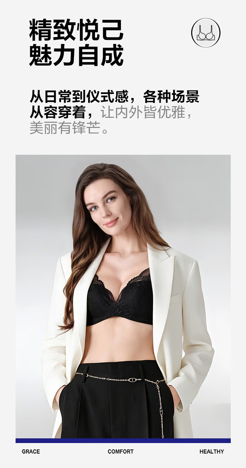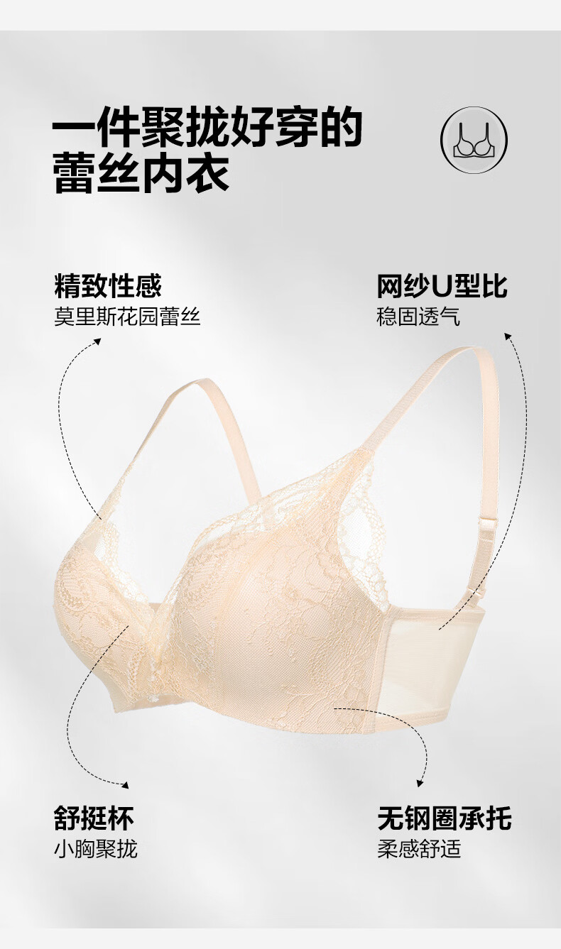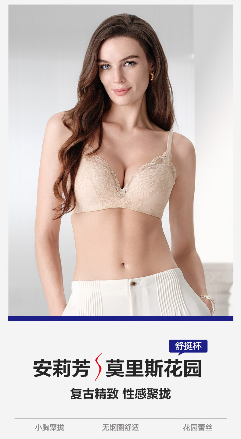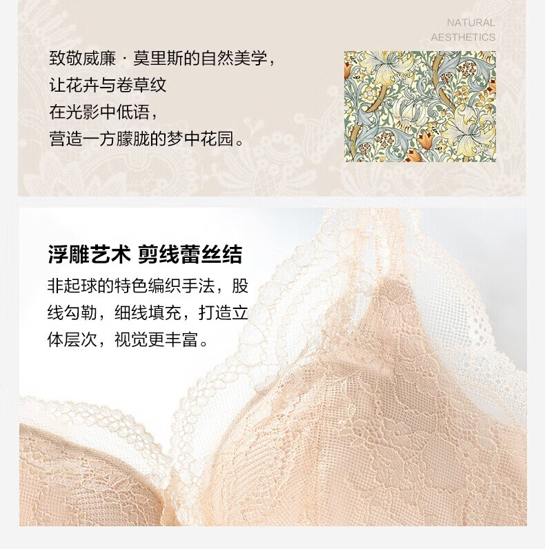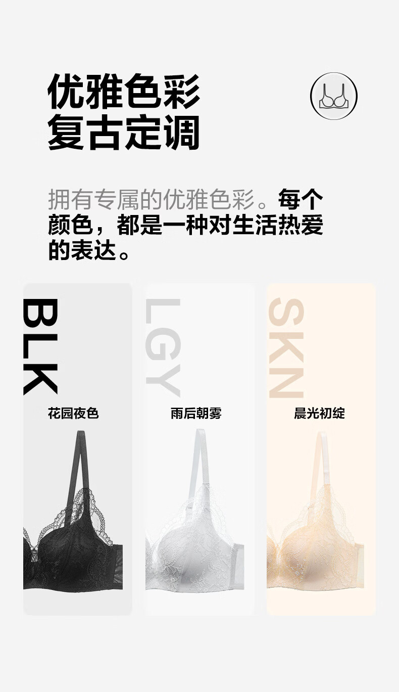 安莉芳【莫里斯花园蕾丝舒挺杯】小胸聚拢内衣无钢圈显大文胸新年礼物 花园夜色 BLK 文胸 75B