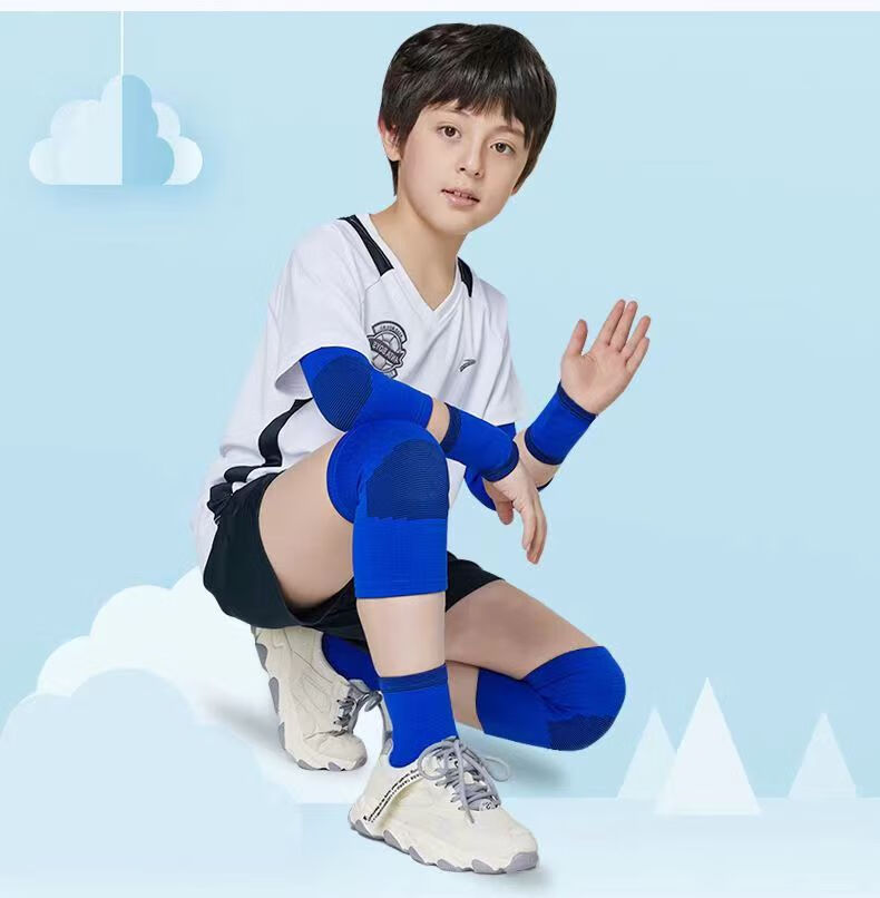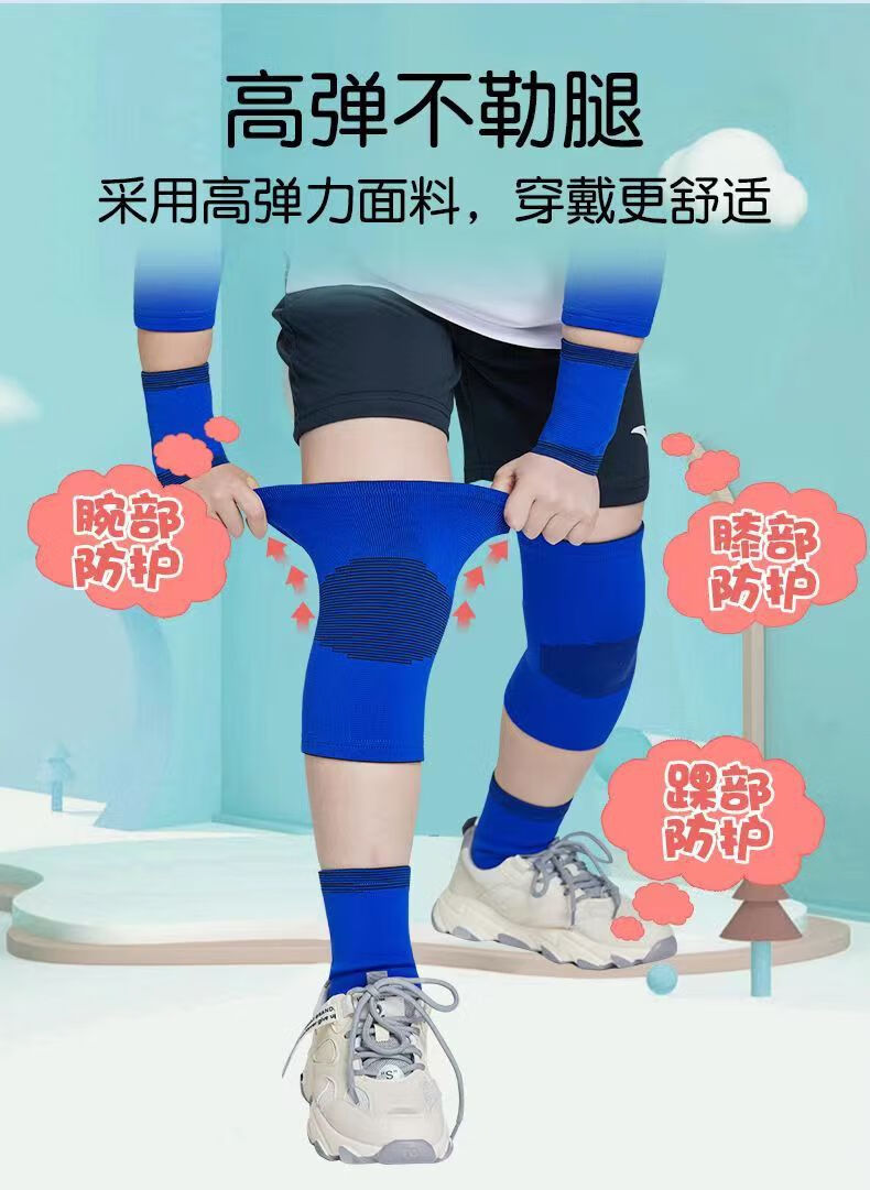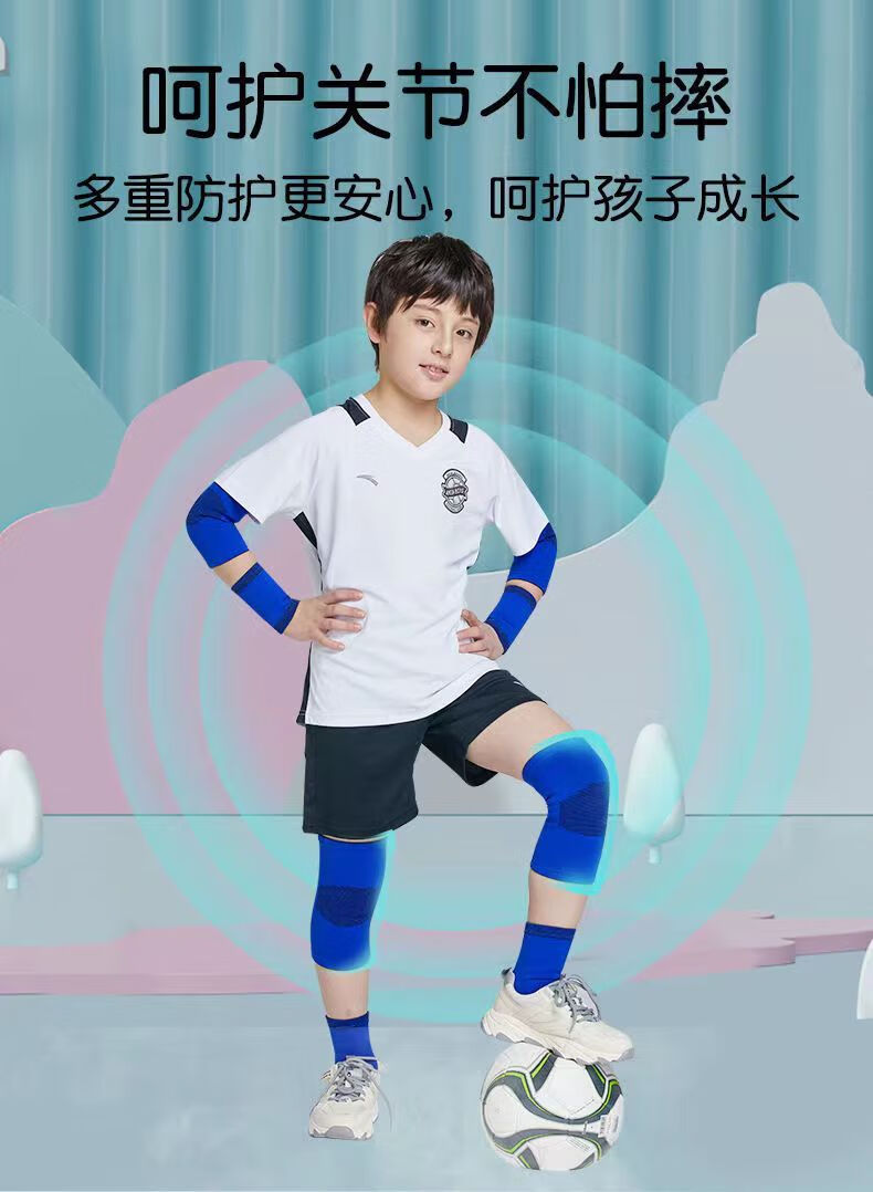 夏季尼龙儿童运动护膝护肘套装男足球篮球轮滑防摔薄款护膝 蓝色【护膝】 S码【55斤以下】