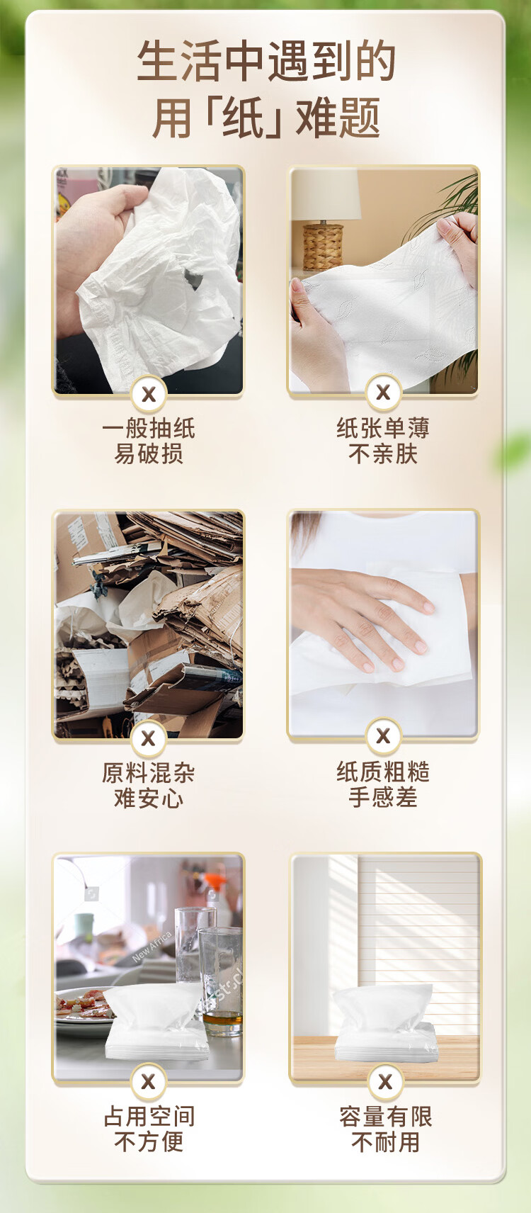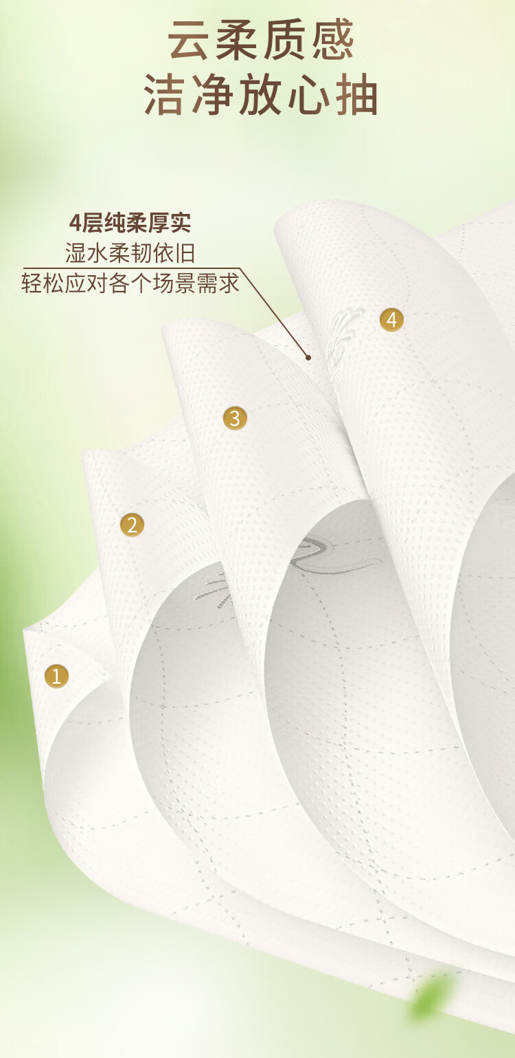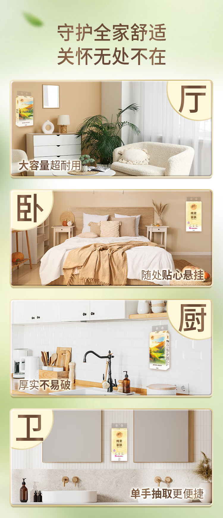 清风纯柔系列挂抽 S码4层250抽*6包整箱悬挂式抽纸 家用量大实惠装