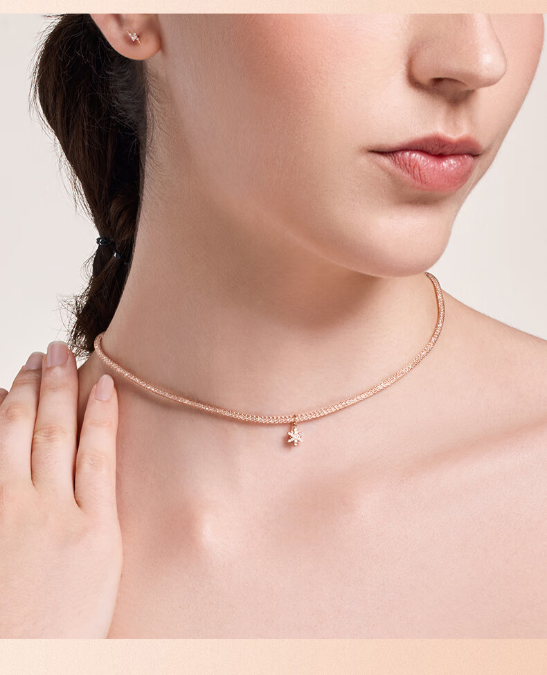 DJULA【明星同款】茱蕊星耀轻奢贵气小众时尚18K金镶钻项链新年礼物 18K金白金(月亮)