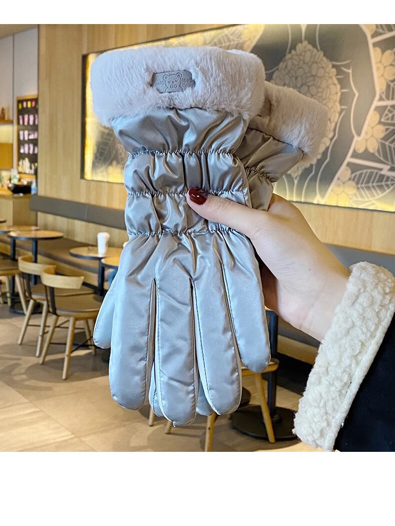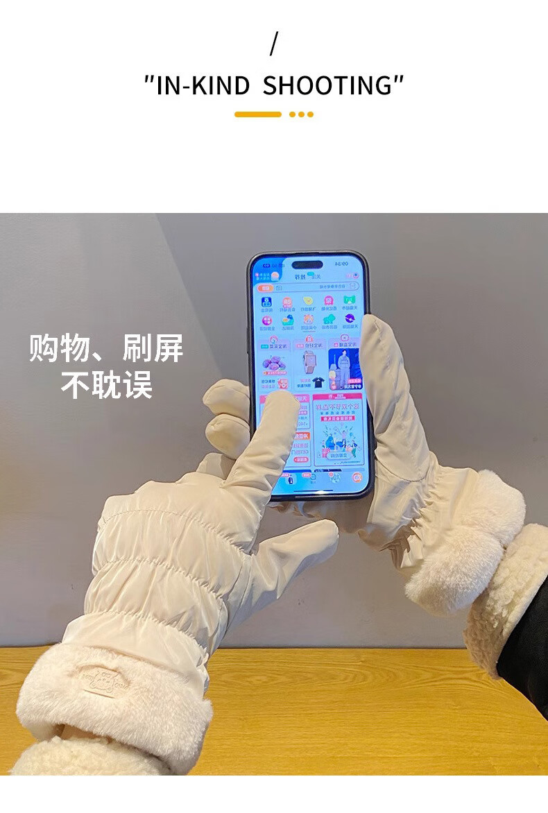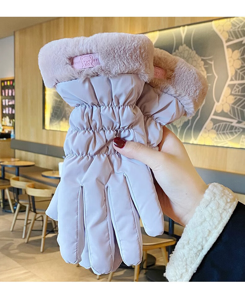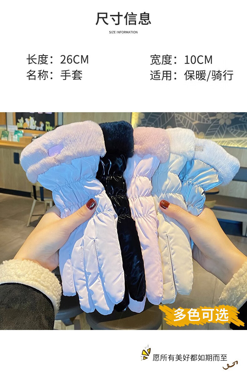 冬季保暖手套女学生加厚棉触屏羽绒手套骑车防寒防风加绒滑雪手套 双蝴蝶结--紫色
