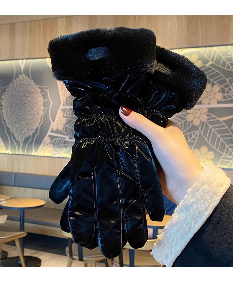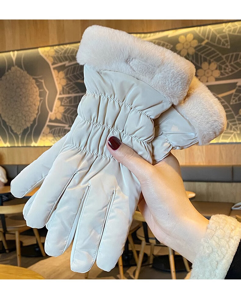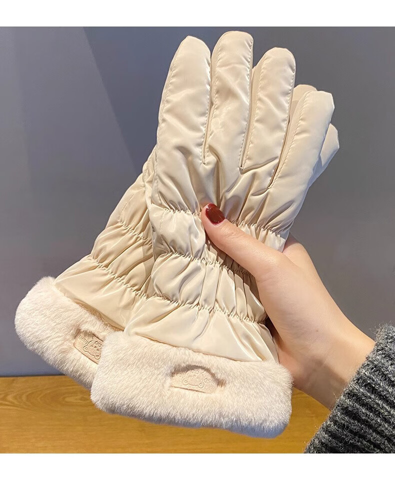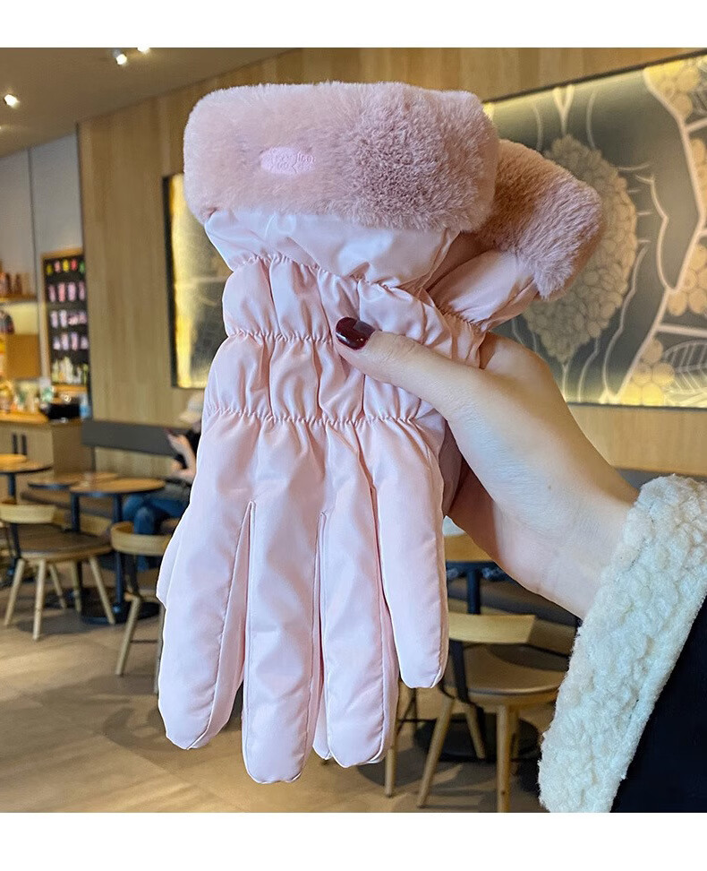 冬季保暖手套女学生加厚棉触屏羽绒手套骑车防寒防风加绒滑雪手套 双蝴蝶结--紫色