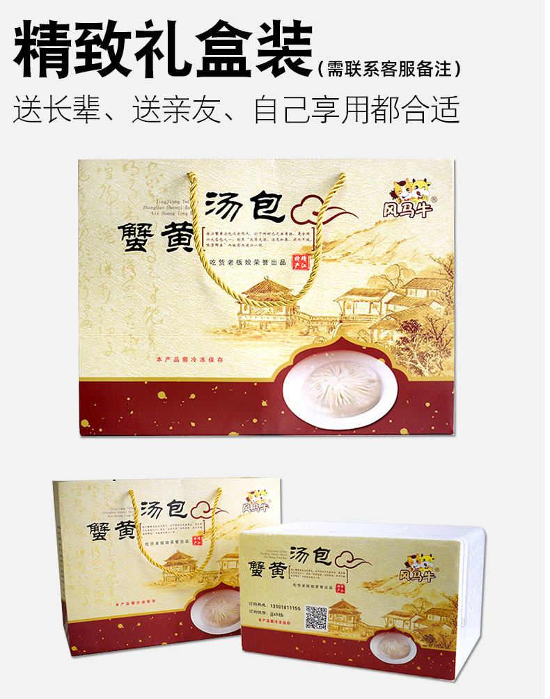 风马牛【正宗】蟹黄汤包6盒靖江蟹粉大包子特色早餐儿童面点 年货送礼 【爆款】蟹黄大汤包120g×6袋