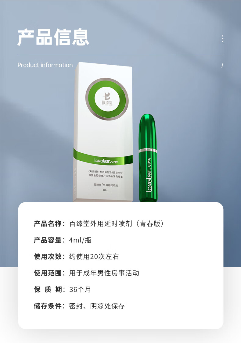 百臻堂9919男士外用延时喷雾男用延时喷剂可口不麻成人房事情趣性用品 9919三代【送体验装试用】