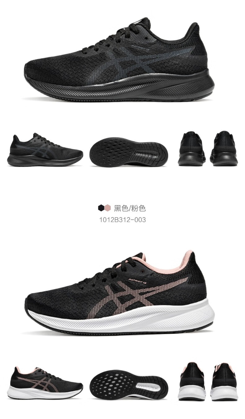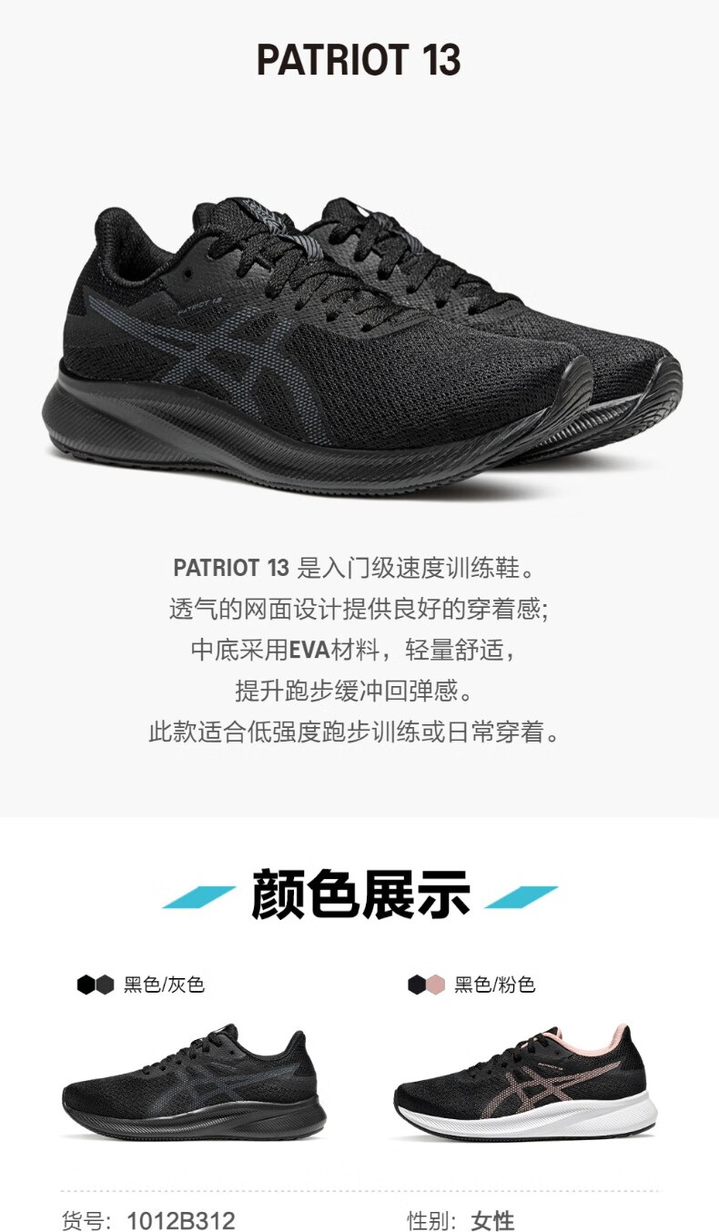 亚瑟士ASICS跑步鞋女鞋缓震耐磨运动鞋舒适透气回弹跑鞋 PATRIOT 13 黑色/灰色 36