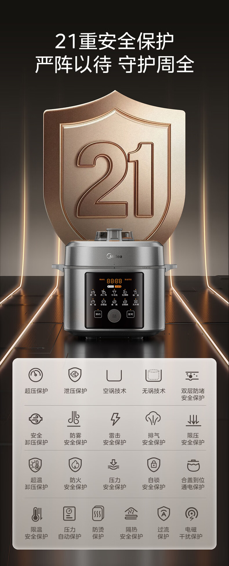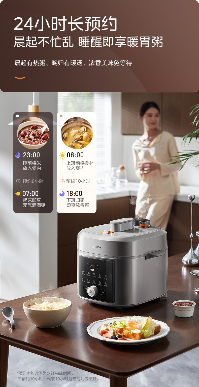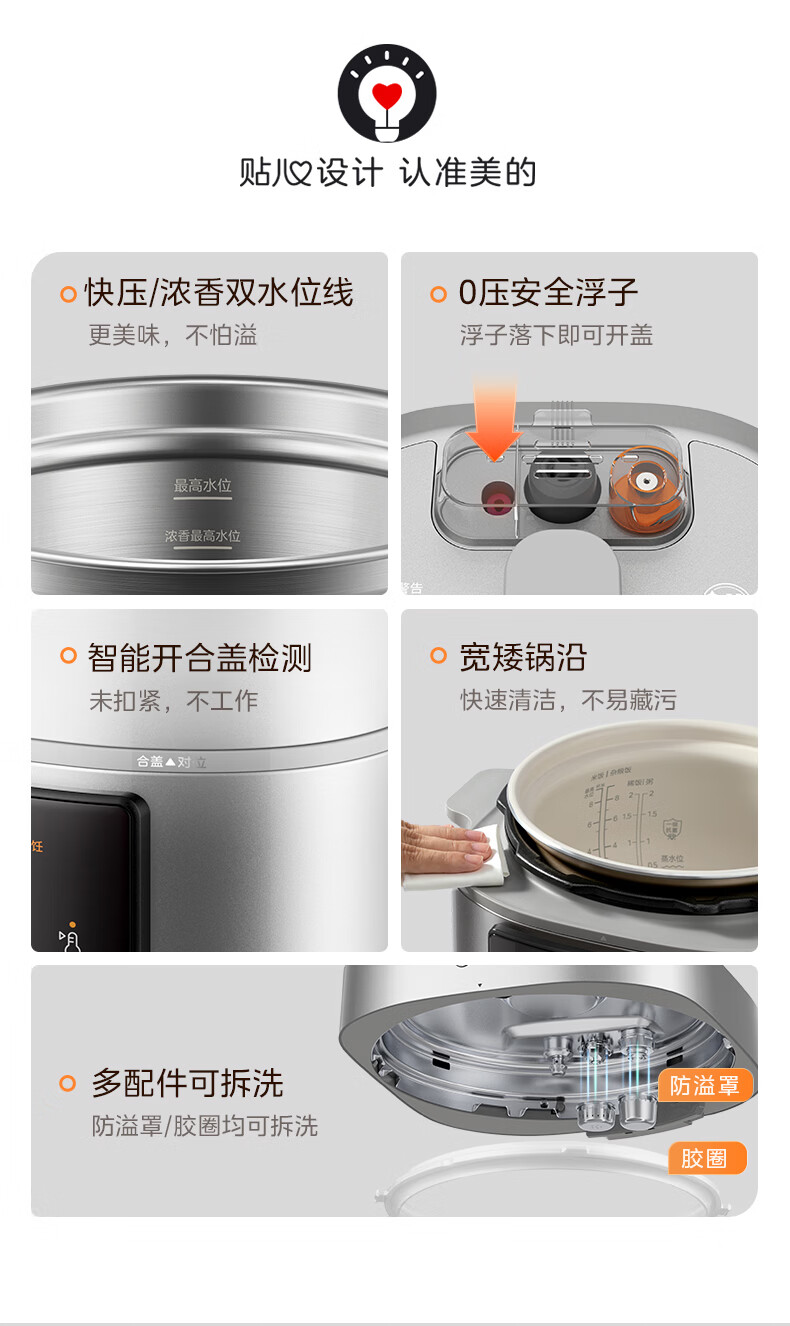 美的(Midea)京东自营0涂层电压力锅小型2-3人电饭煲高压锅1.8L 全自动智能预约开盖火锅煲汤炖煮MY-E2925G
