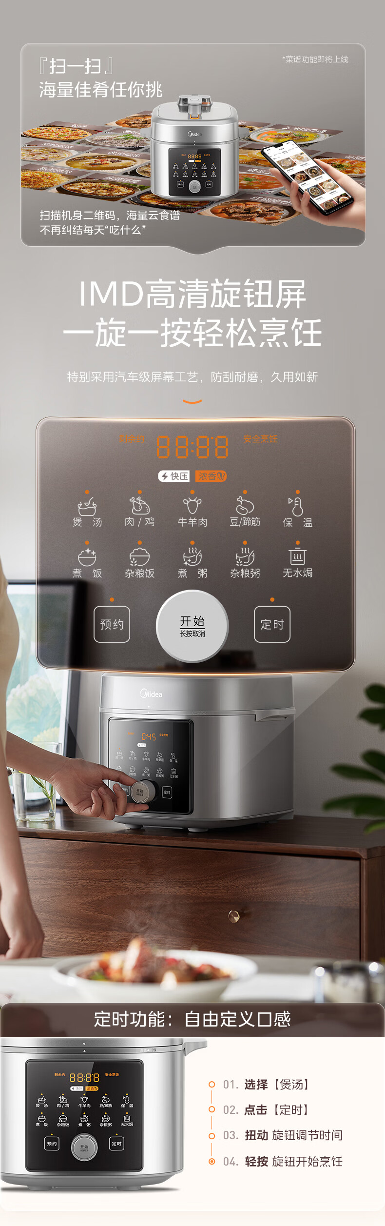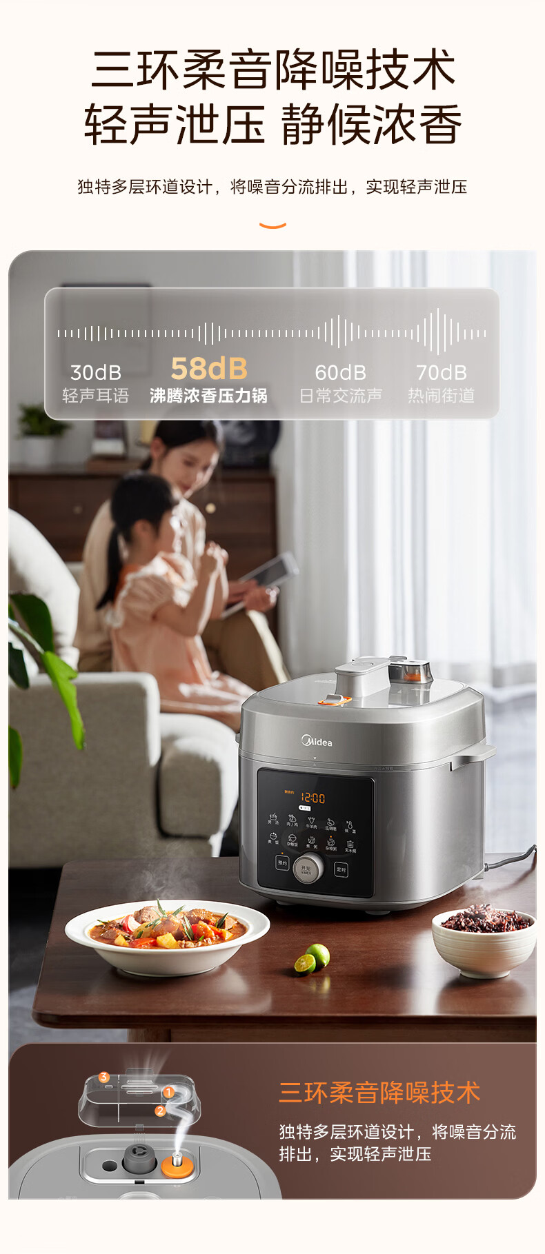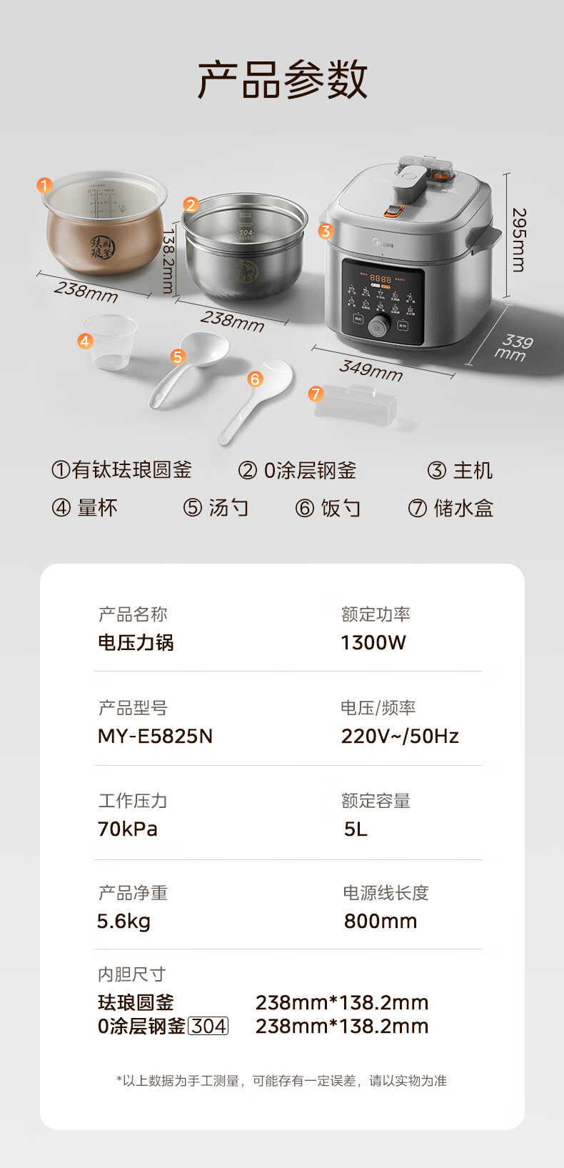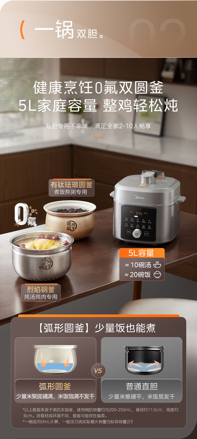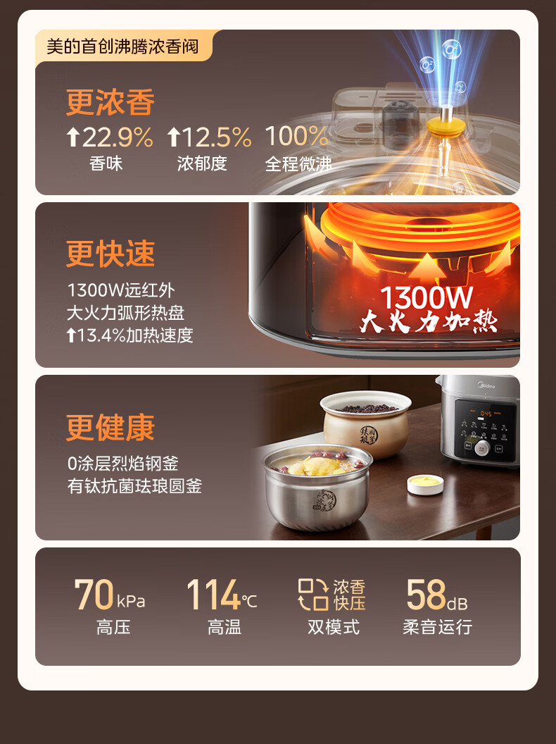美的(Midea)【国家补贴】浓香小飞侠电压力锅有钛0氟0涂层双胆高压锅5L智能预约家用煲汤4-6人煮饭煲E5825N