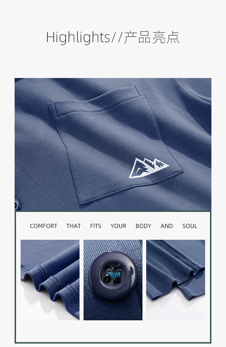 叶盼(yepan)【柔软】莱卡纯棉睡衣男春秋季长袖宽松大码高级感男士家居服套装 8711-蓝灰 L (170) :建议100-135斤穿着