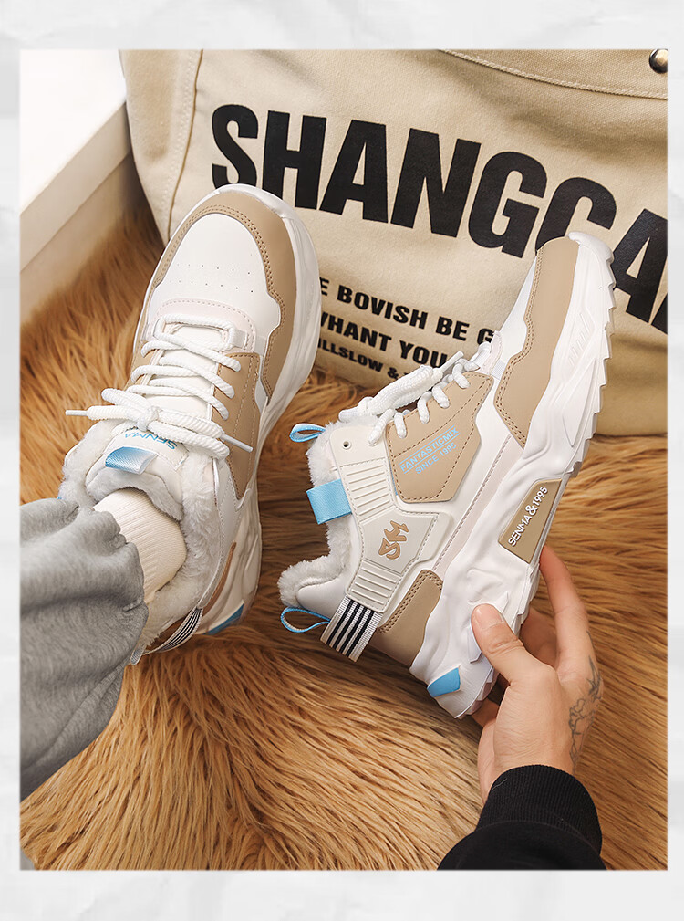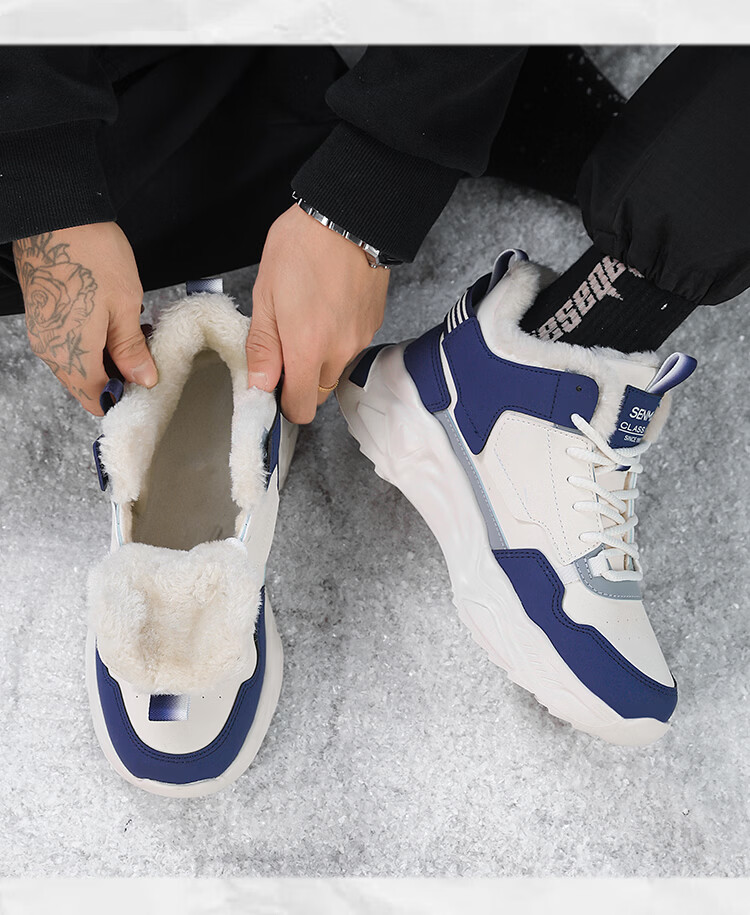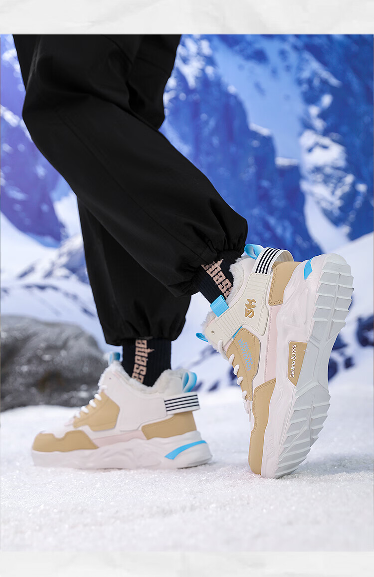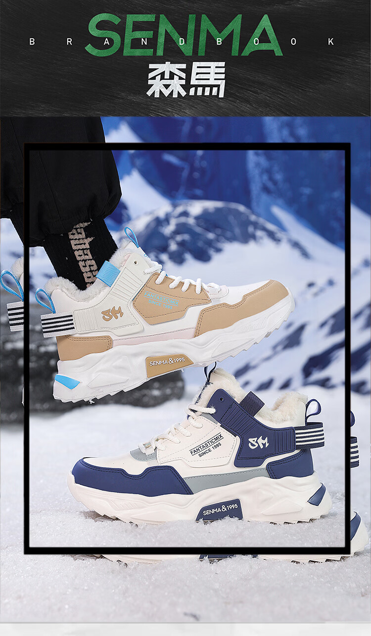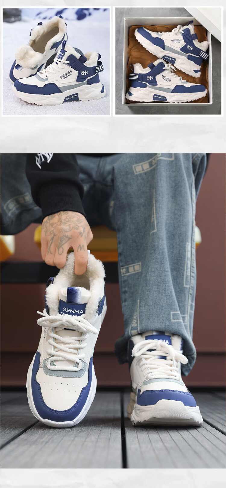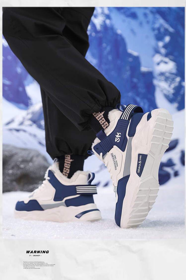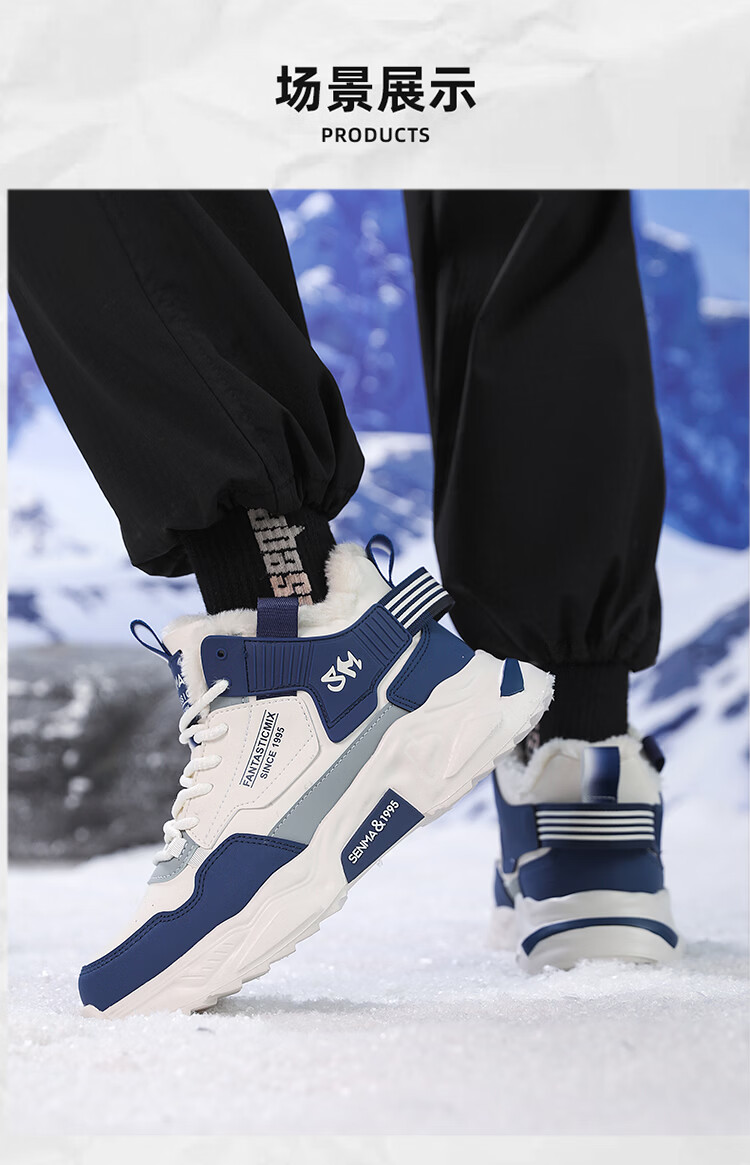 森馬高帮男鞋2026冬季户外防寒加绒保暖大棉运动鞋男士休闲雪地靴棉鞋 米蓝【基础款】 39 标准码数/现货秒发