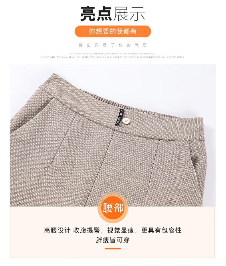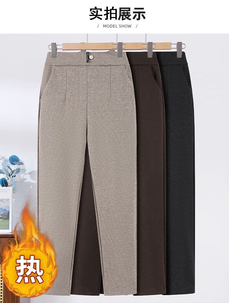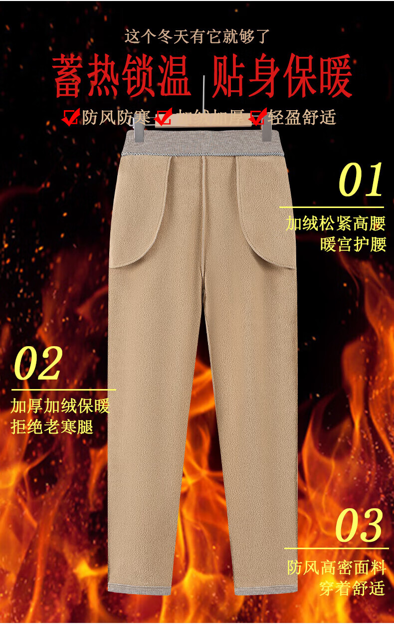 情罗兰(QINGLUOLAN)妈妈裤子秋冬款加绒加绒裤子休闲裤外穿50岁60老年人保暖棉裤女 卡其 常规 XL 【80-100斤】