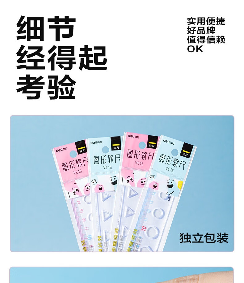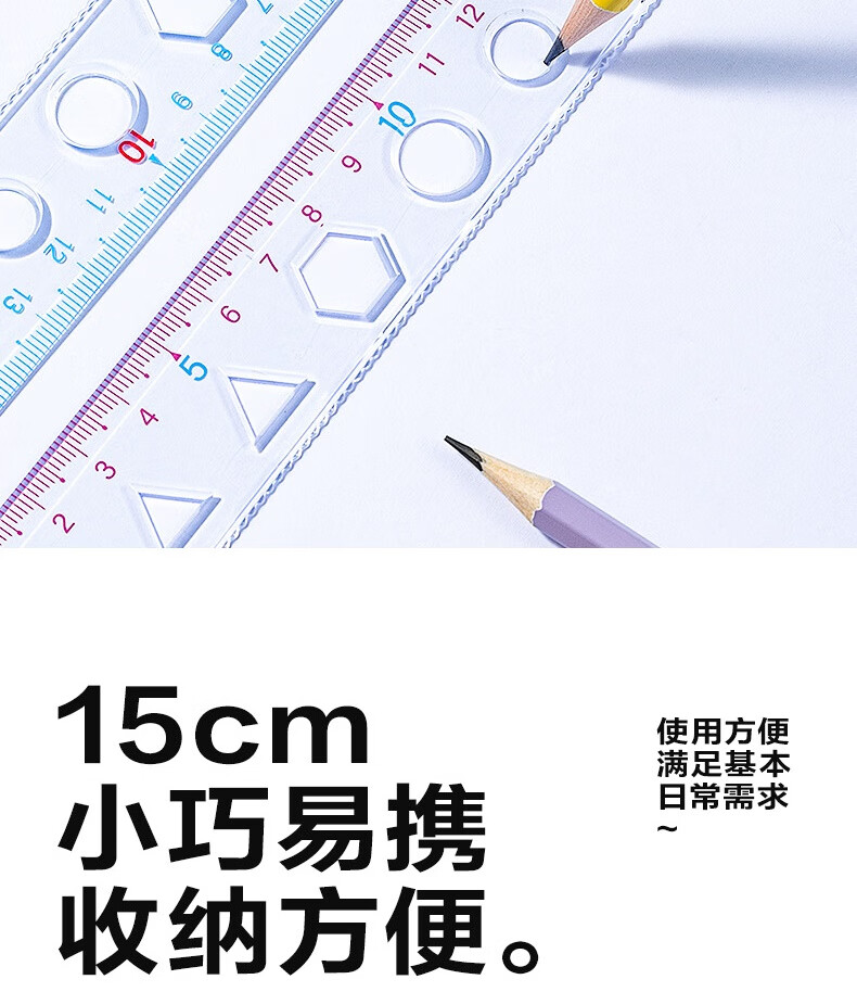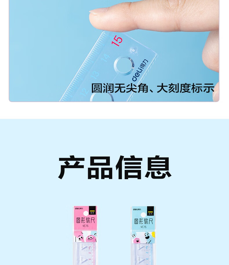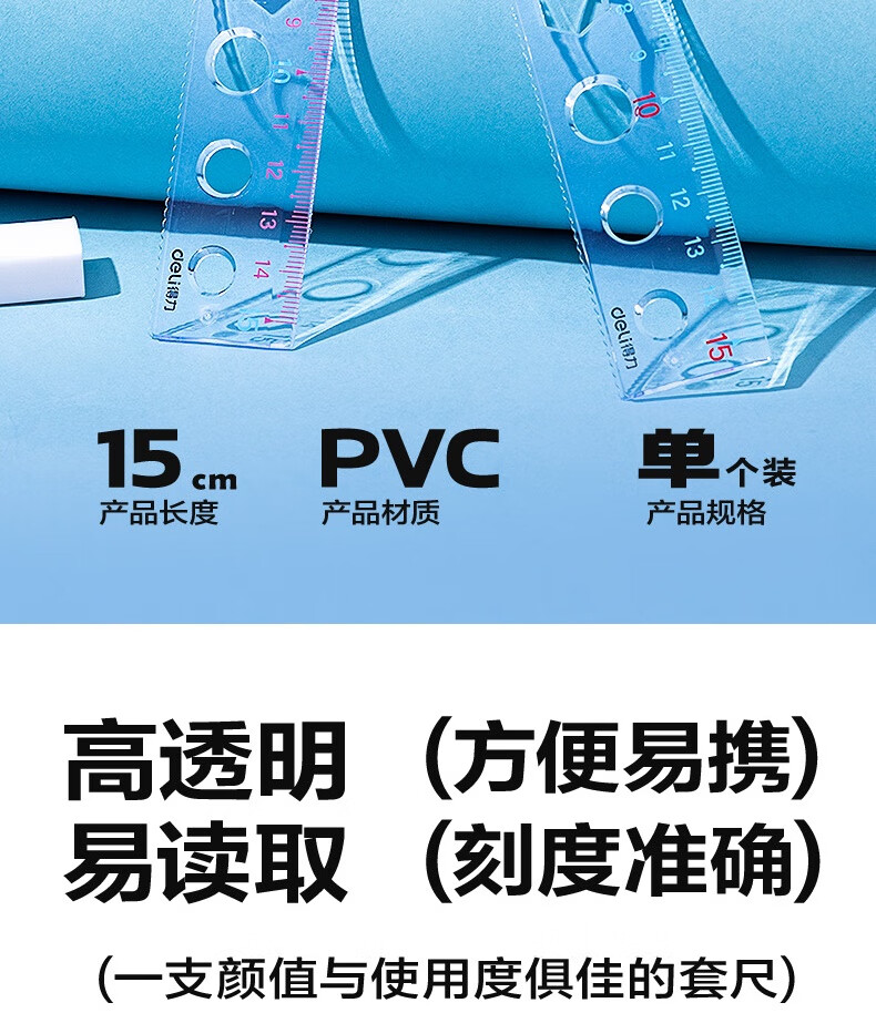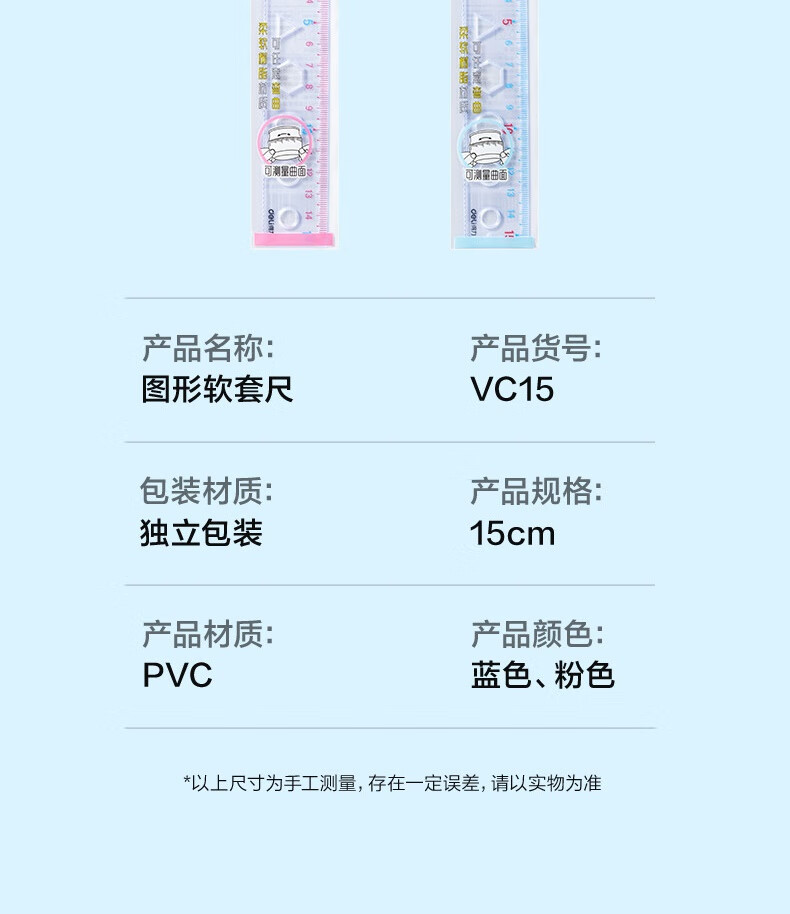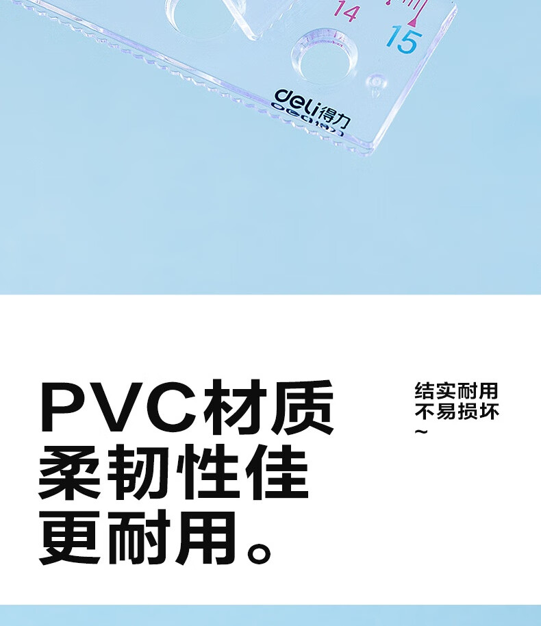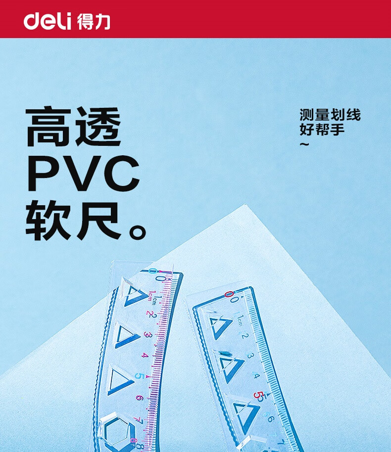 得力(deli)15cm透明软直尺 绘图尺/韧性好不易折断耐用柔软 尺子学生 颜色随机