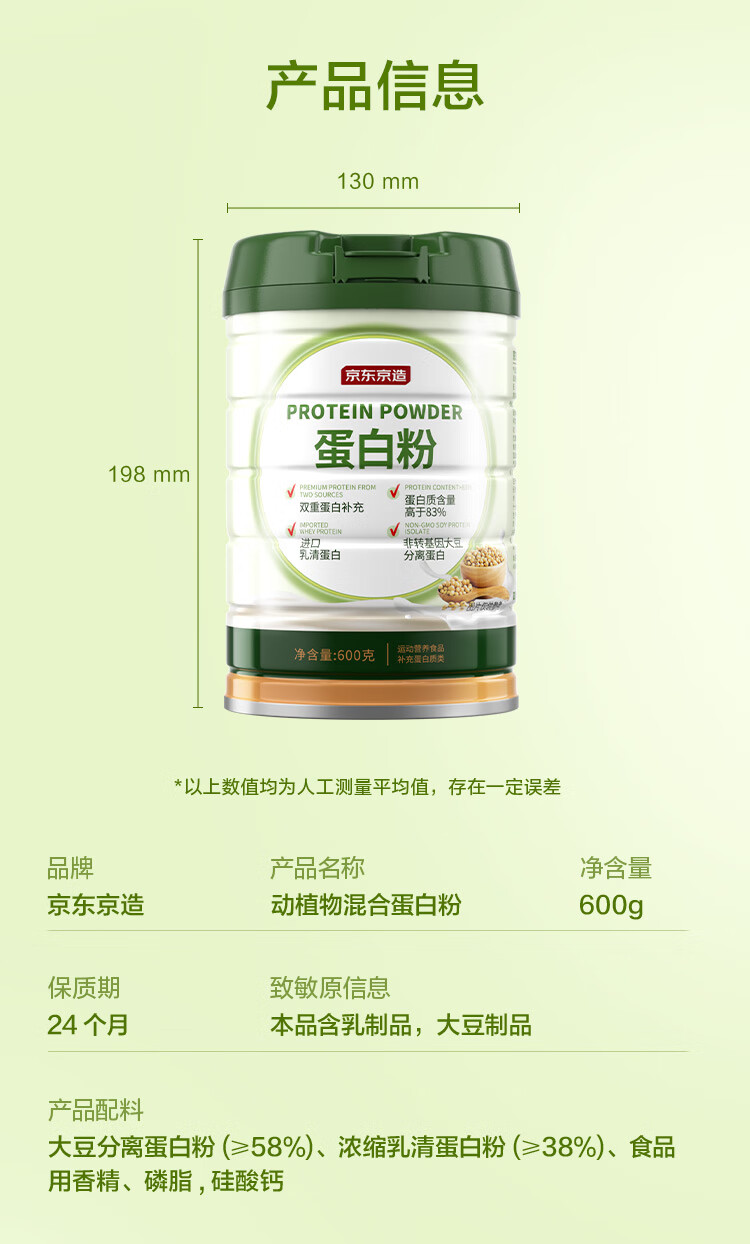 京东京造 双重蛋白粉600g 营养双蛋白动植物双重补充蛋白质成人中老年