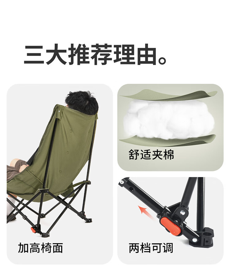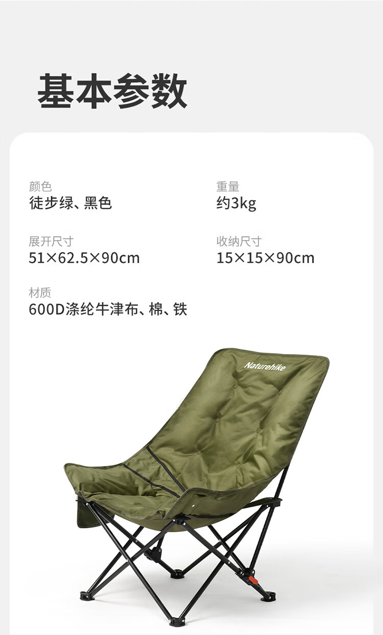 Naturehike挪客海星户外露营折叠椅躺椅钓鱼椅子沙滩椅便携高背月亮椅徒步绿