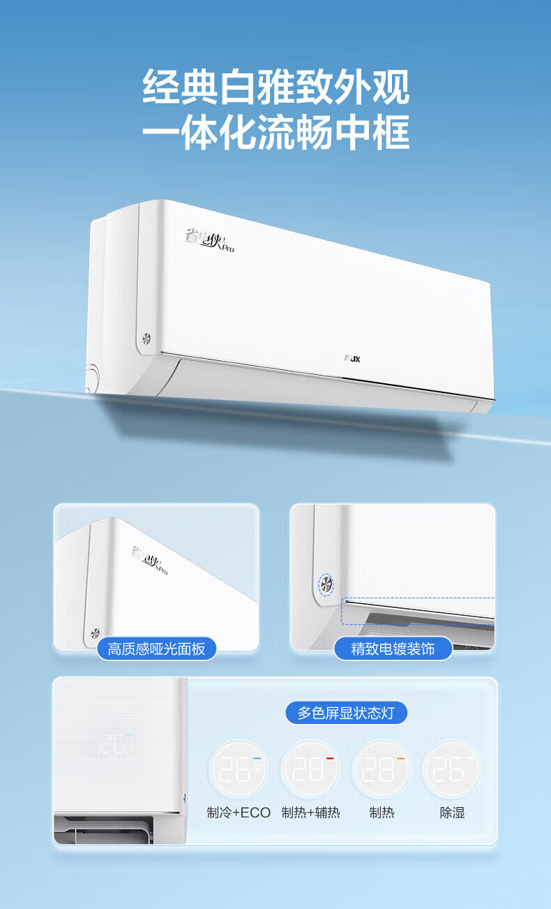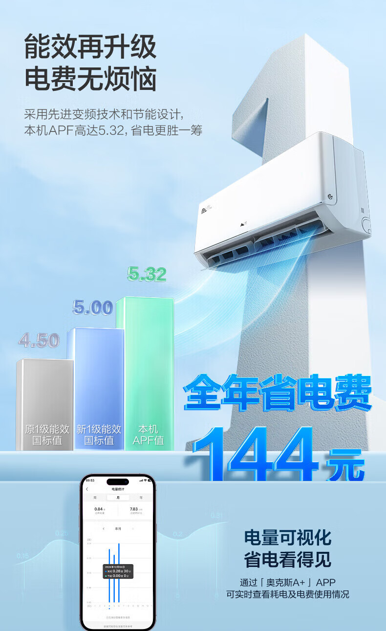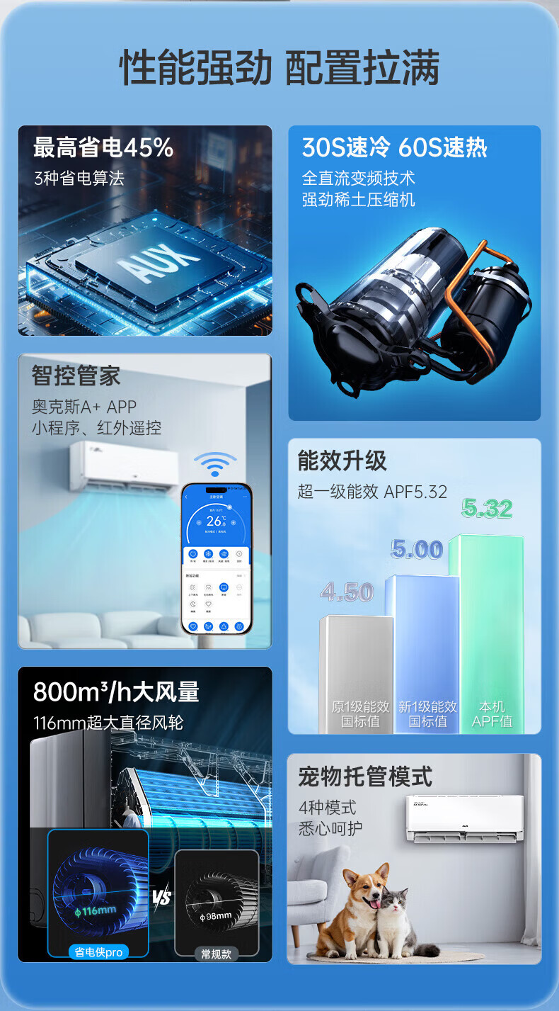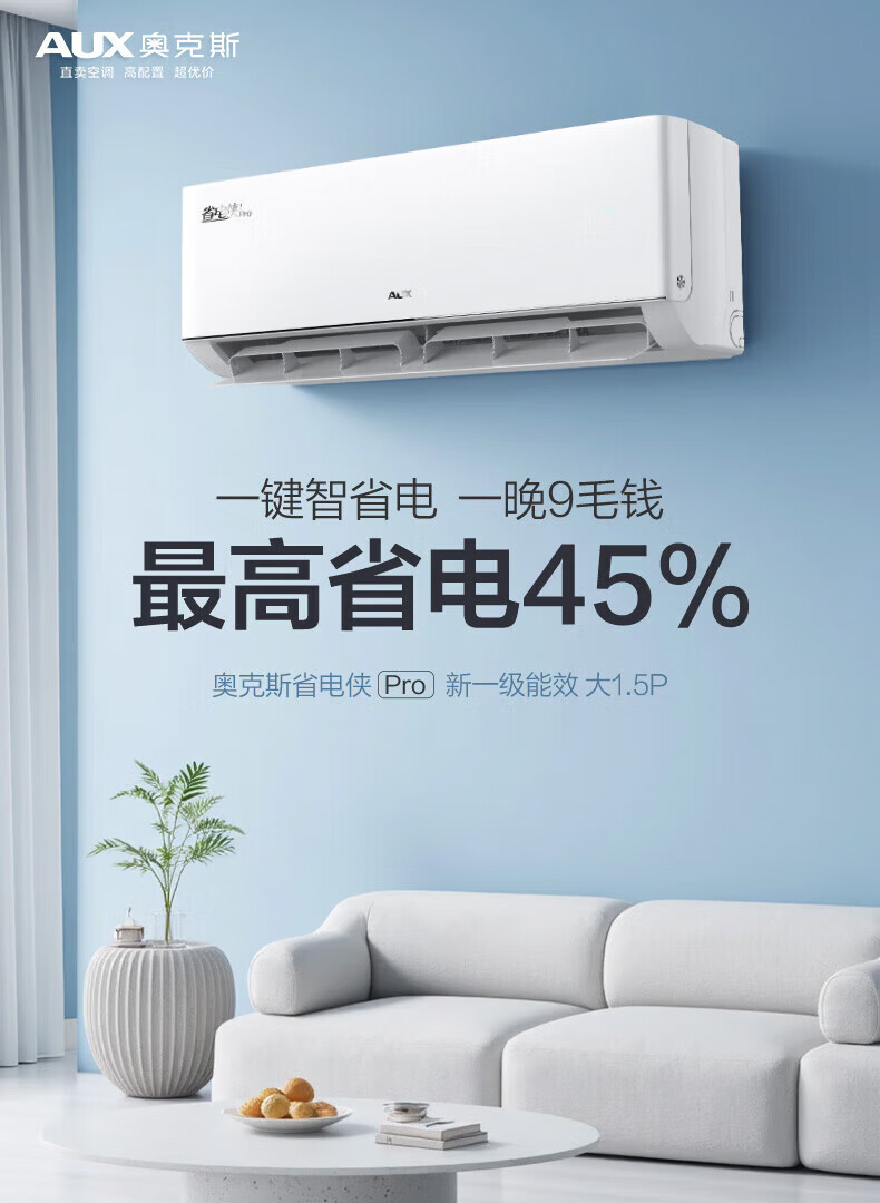 奥克斯(AUX)空调挂机大1.5匹 一级能效 大1匹变频速冷暖 低噪节能 壁挂式家用自清洁空调 以旧换新 大1.5匹 一级能效【省电侠变频冷暖】15-23㎡