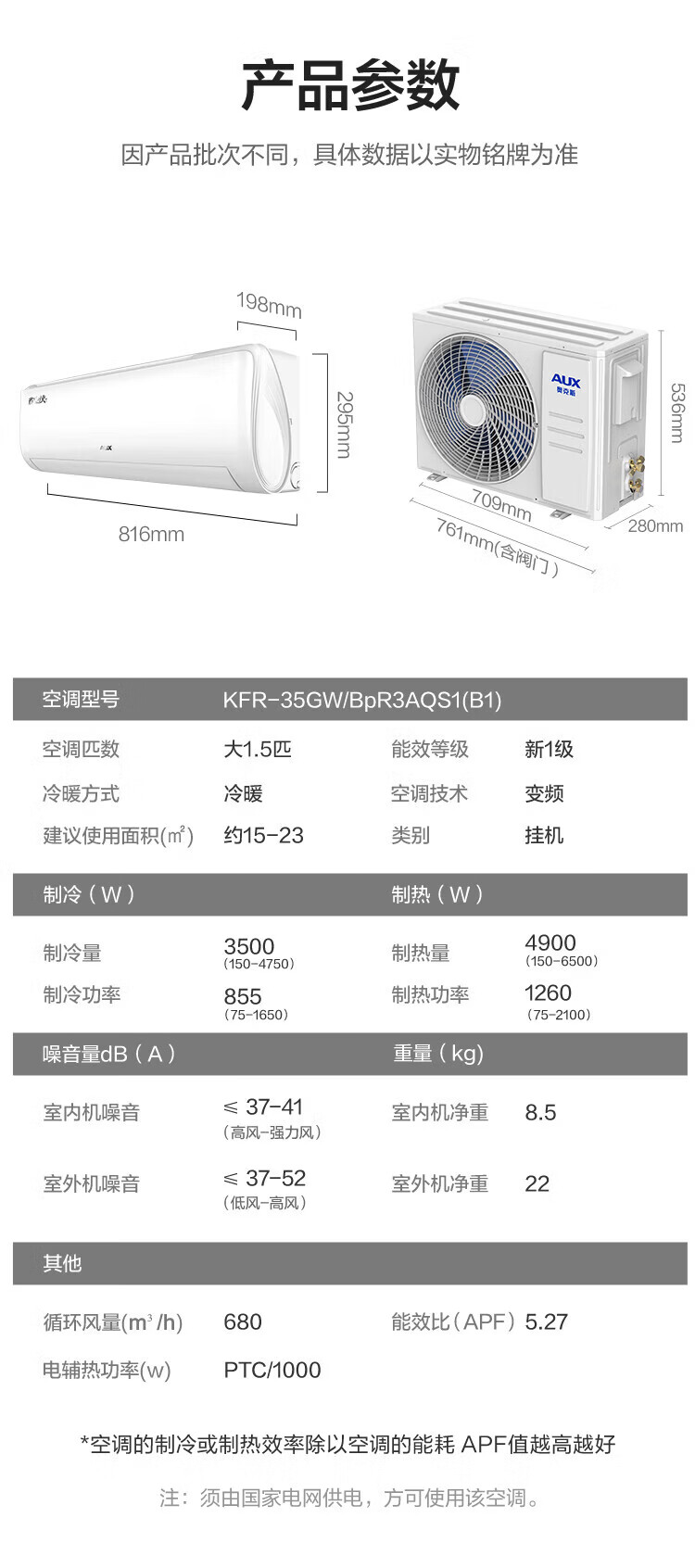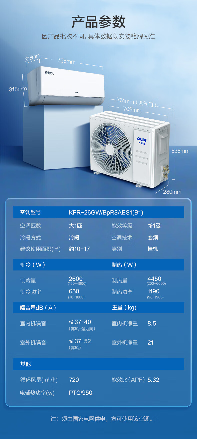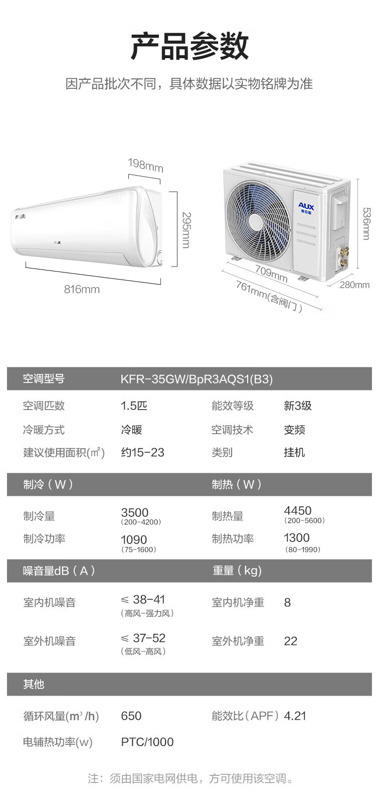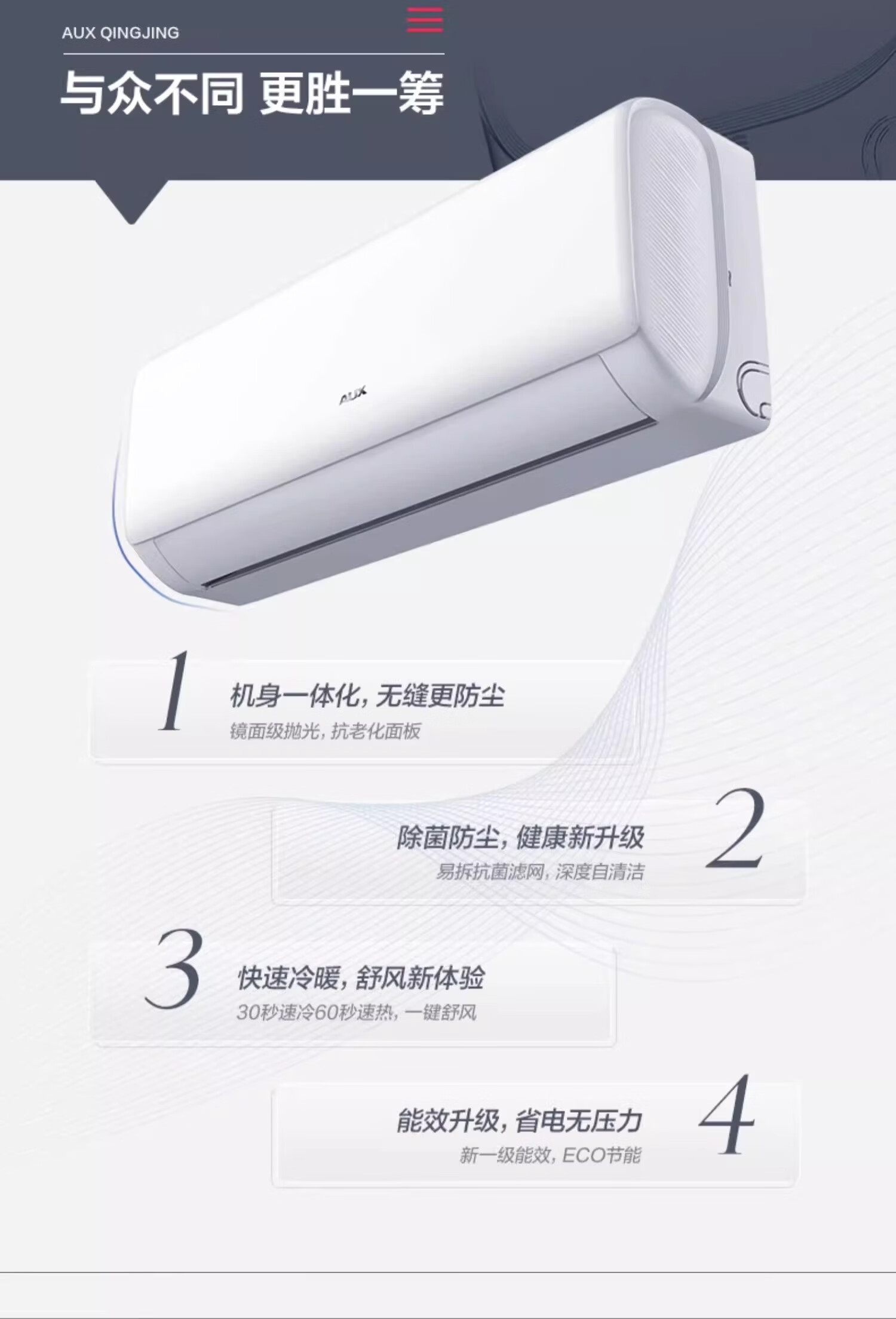 奥克斯(AUX)空调挂机大1.5匹 一级能效 大1匹变频速冷暖 低噪节能 壁挂式家用自清洁空调 以旧换新 大1.5匹 一级能效【省电侠变频冷暖】15-23㎡