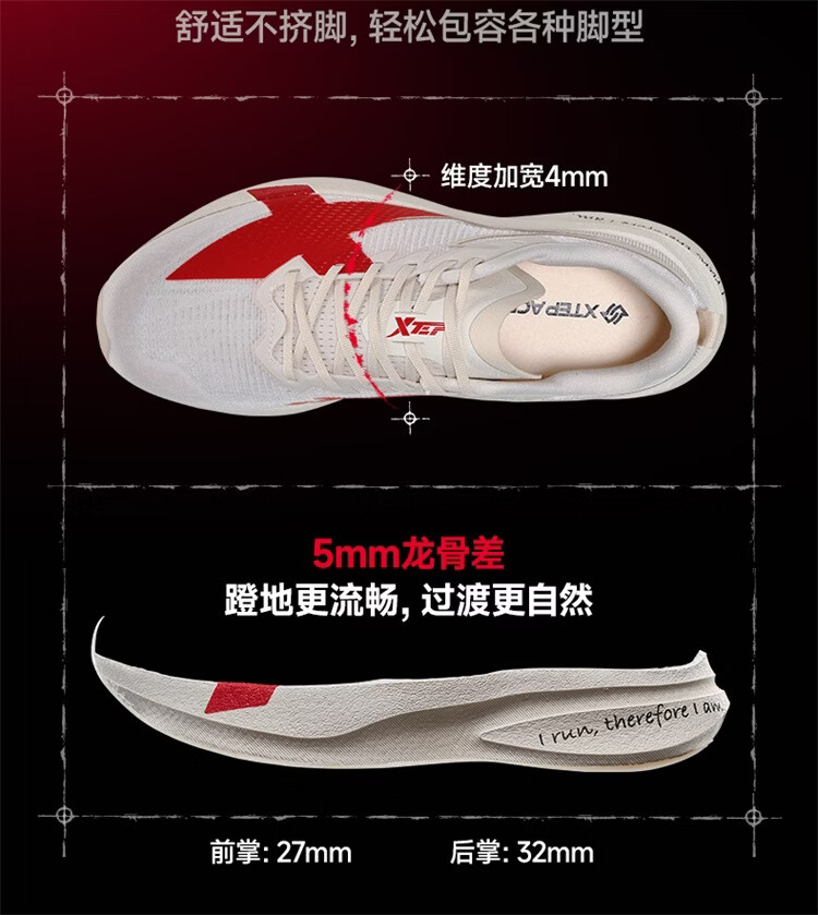 特步两千公里5代pro跑步鞋男减震回弹轻便透气耐磨无碳竞训体考跑鞋 帆白/黑【跑者限定】 43 (270mm)