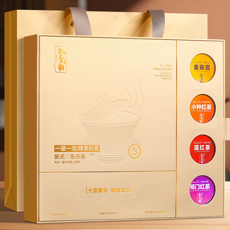 飘香韵 特级四大红茶 金骏眉小种红茶滇红祁门茶叶年货送礼礼盒装200g 四大红茶礼盒