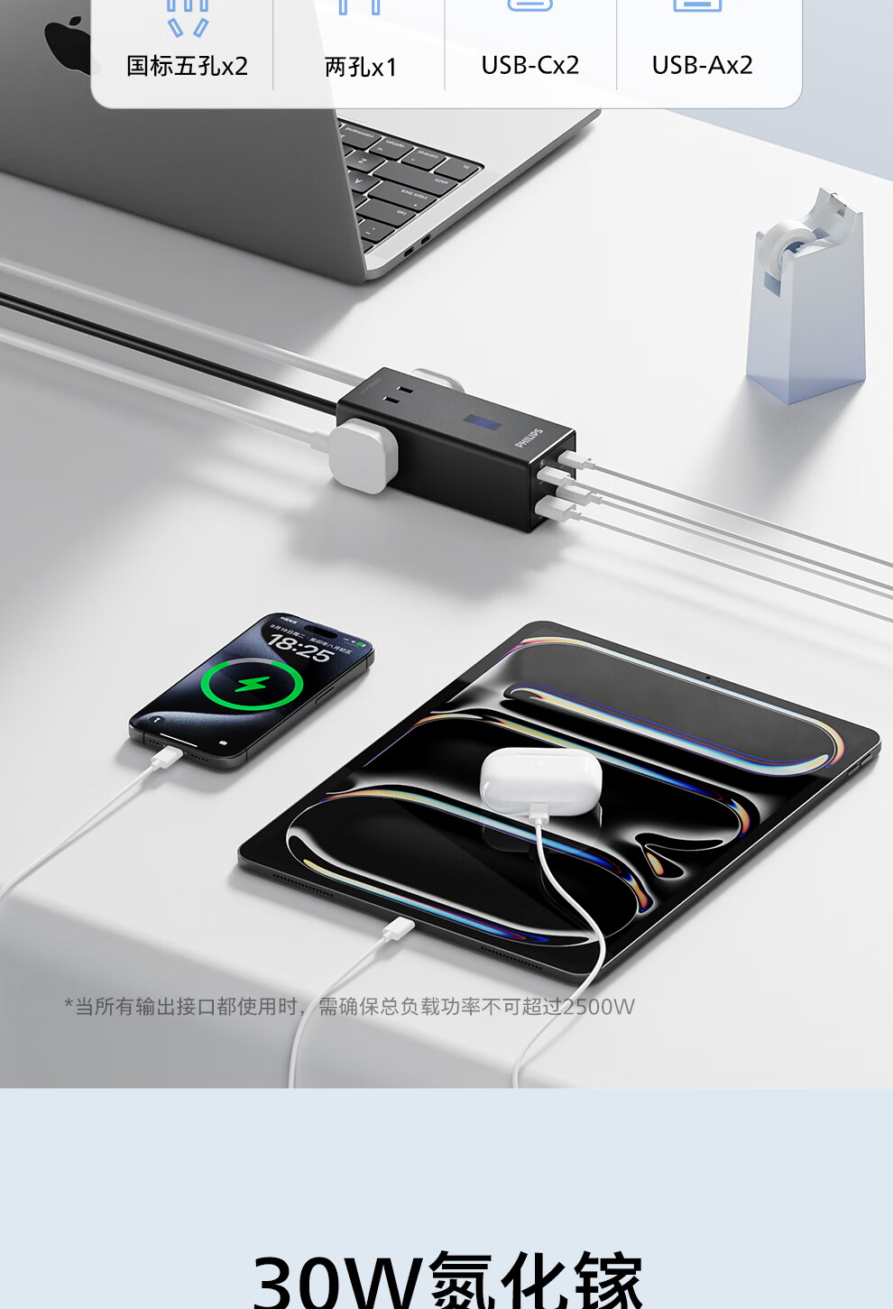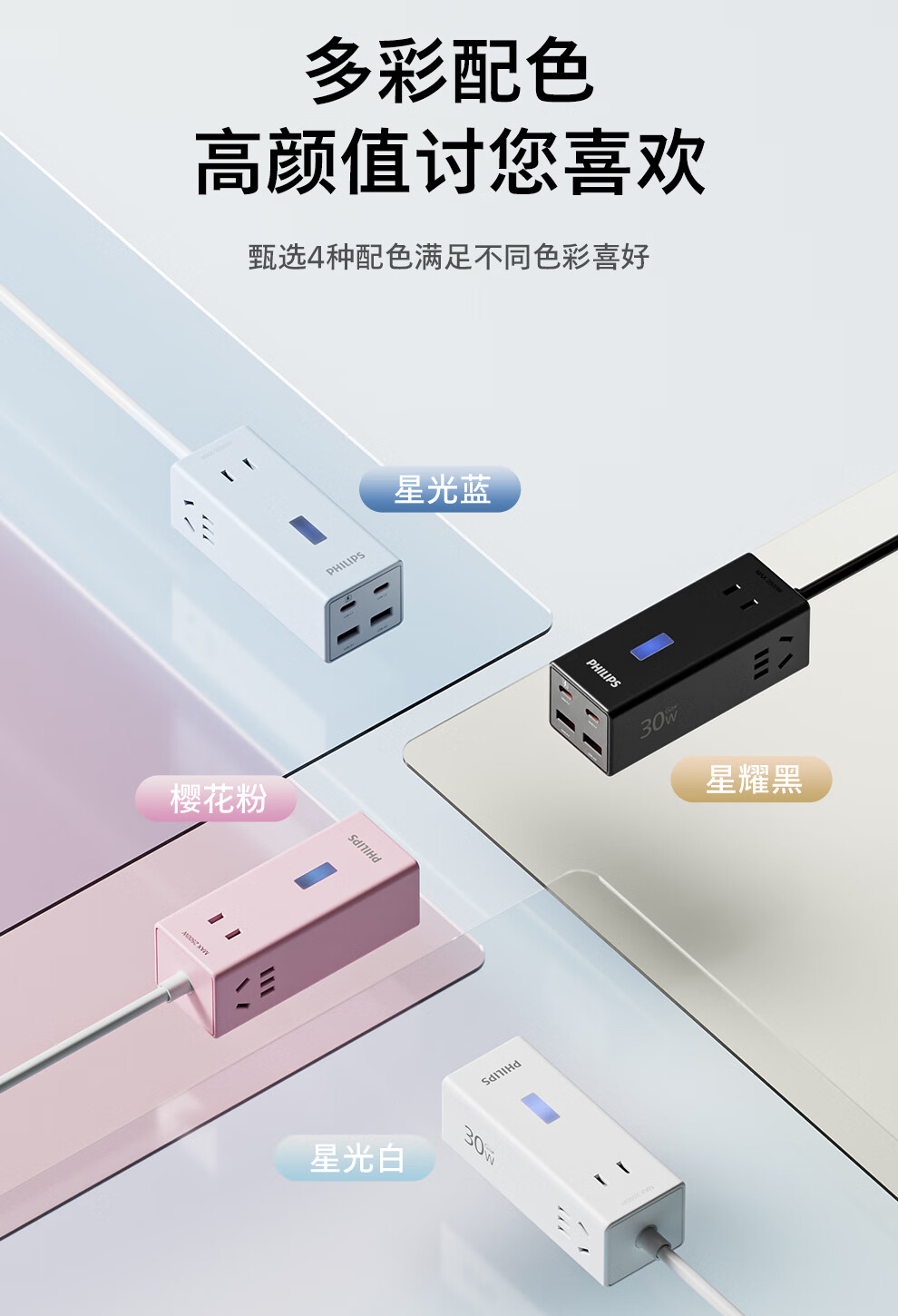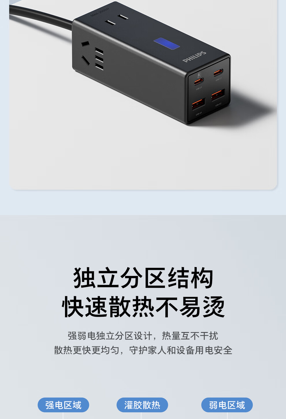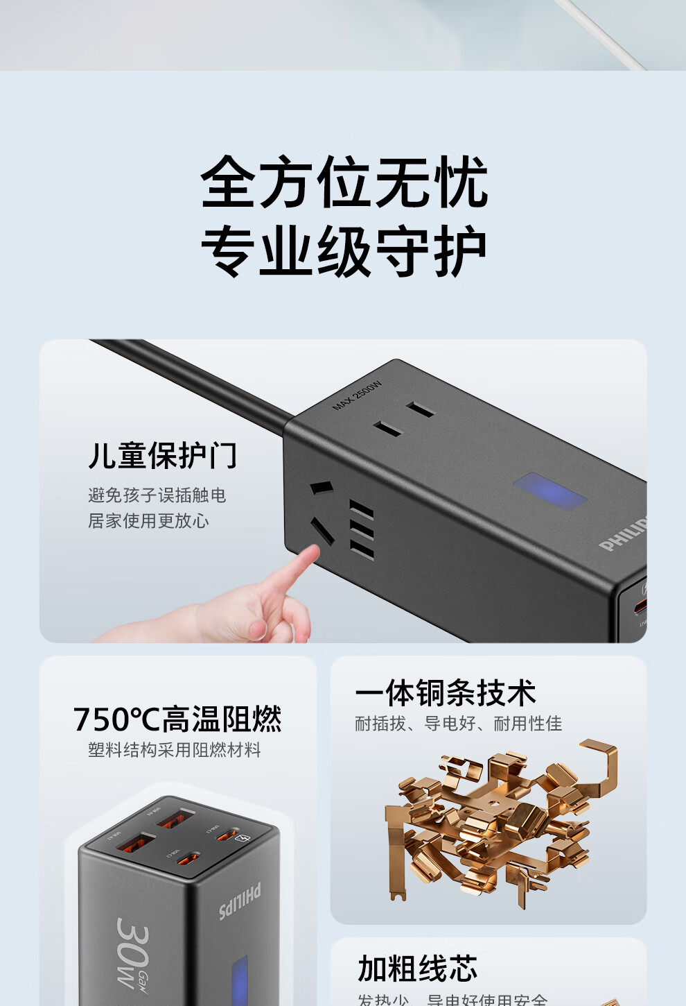 飞利浦(PHILIPS)桌面充电站30W带usb插座typec插排快充排插多功能插线板多口充电器扩产充电坞