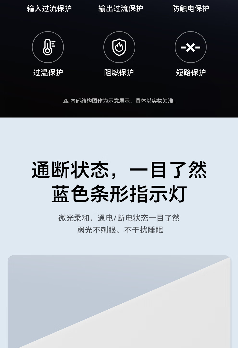 可来博航天级新国标多孔位扩展插座宿舍家用办公桌面插排/电源插线板排插 总控/分控/安全保护门 【分控】5位扩展10位全长1.9米