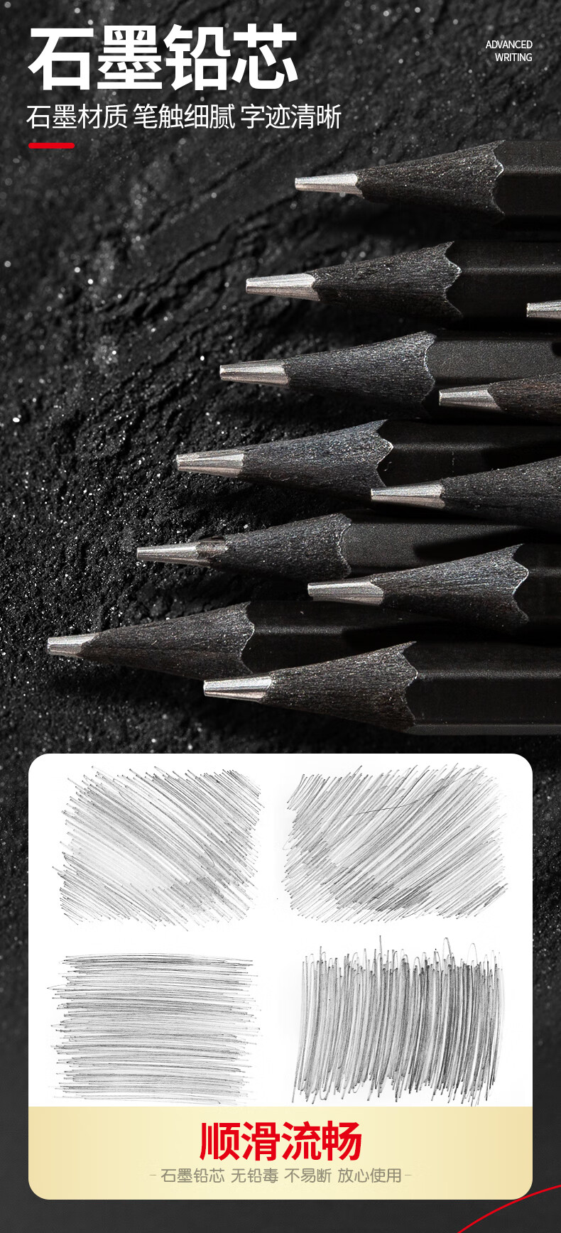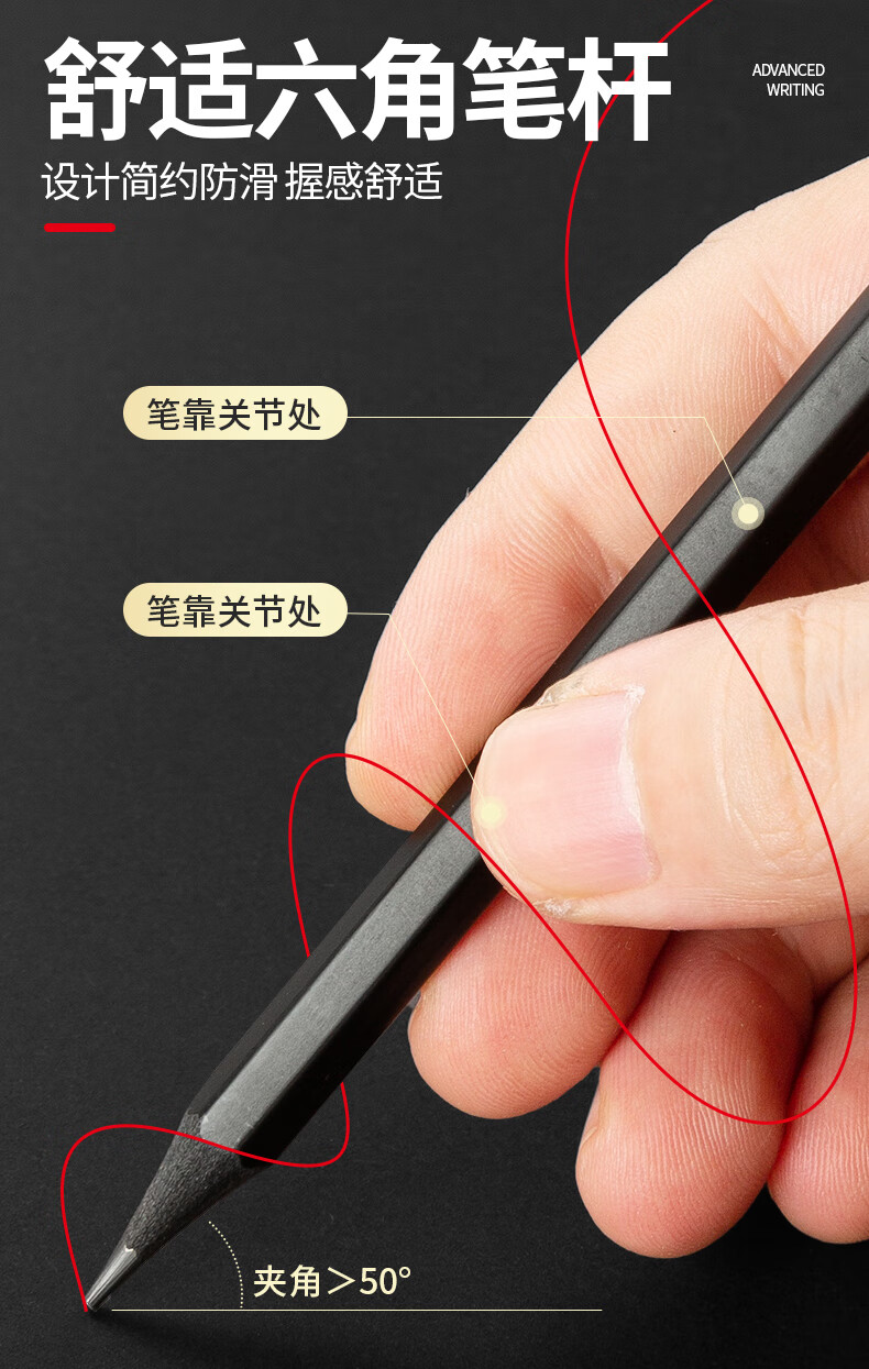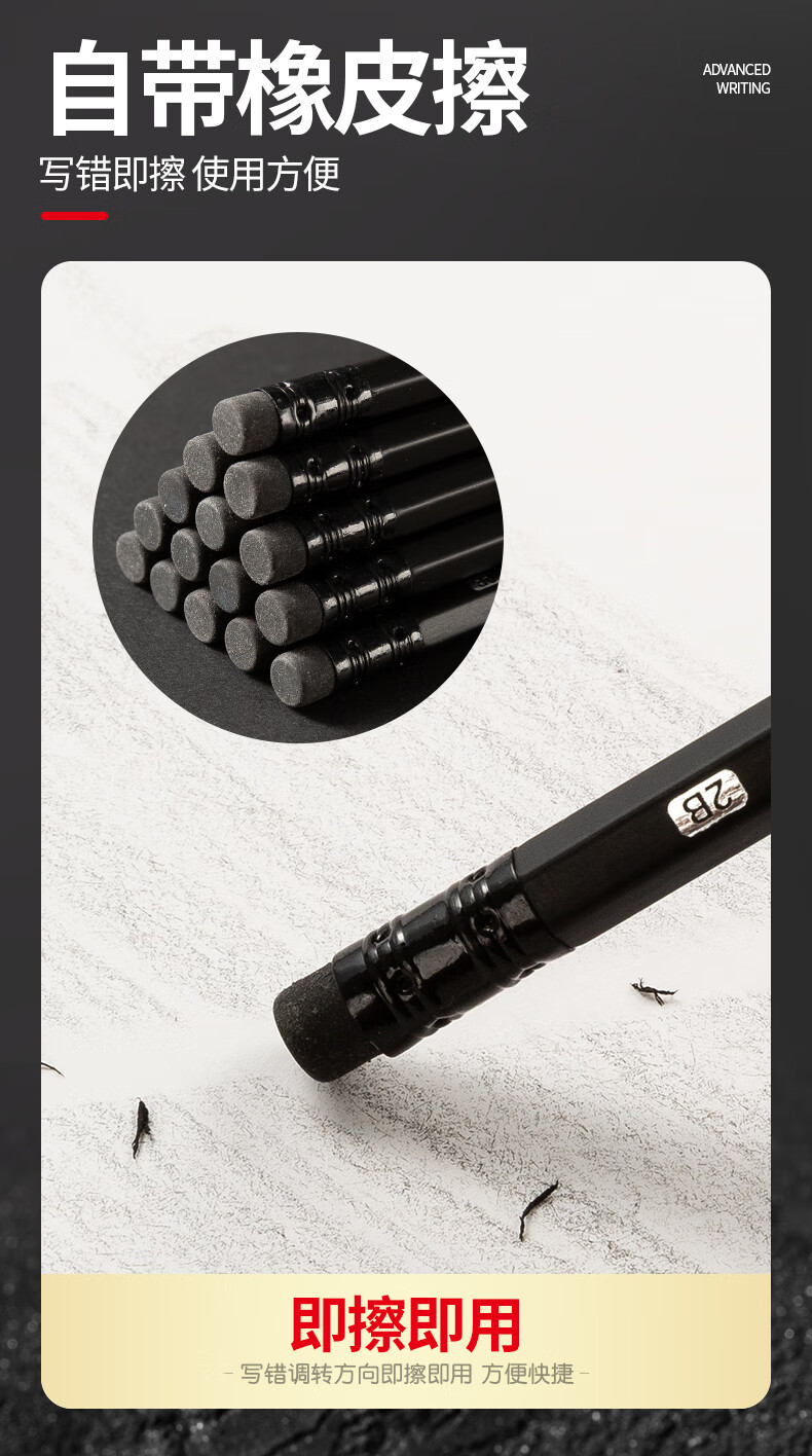 晨光(M&G)文具黑木铅笔 HB带橡皮头木杆铅笔 高档六角笔杆寒假美术生素描书写铅笔 12支装AWP308F6