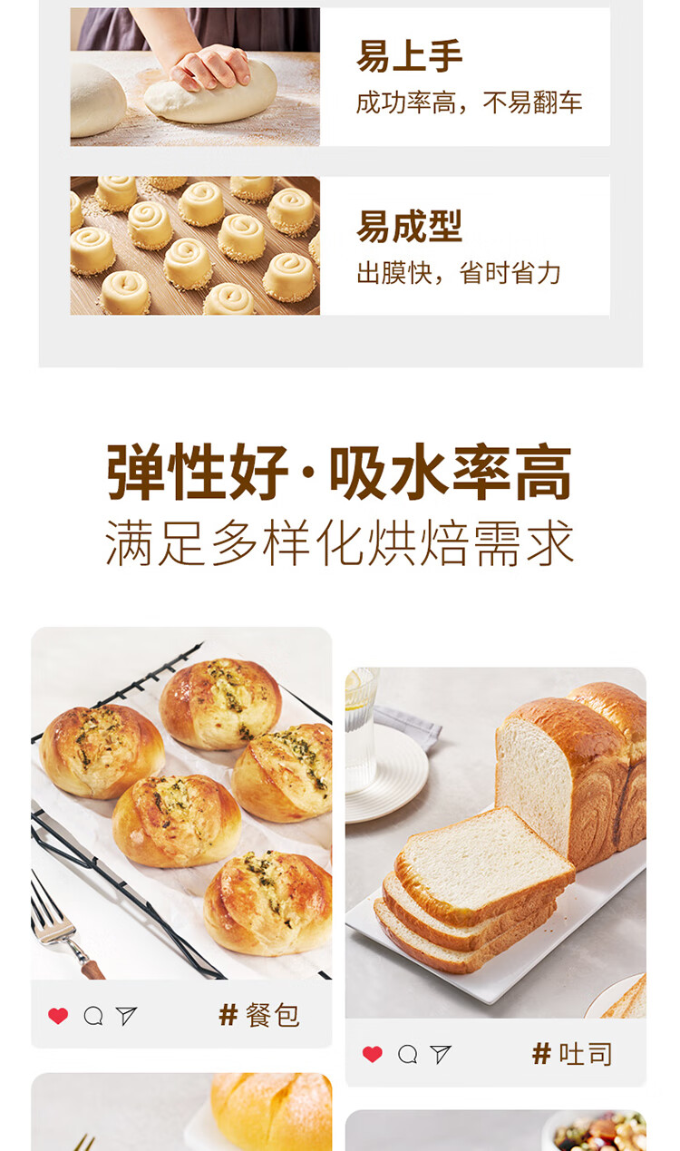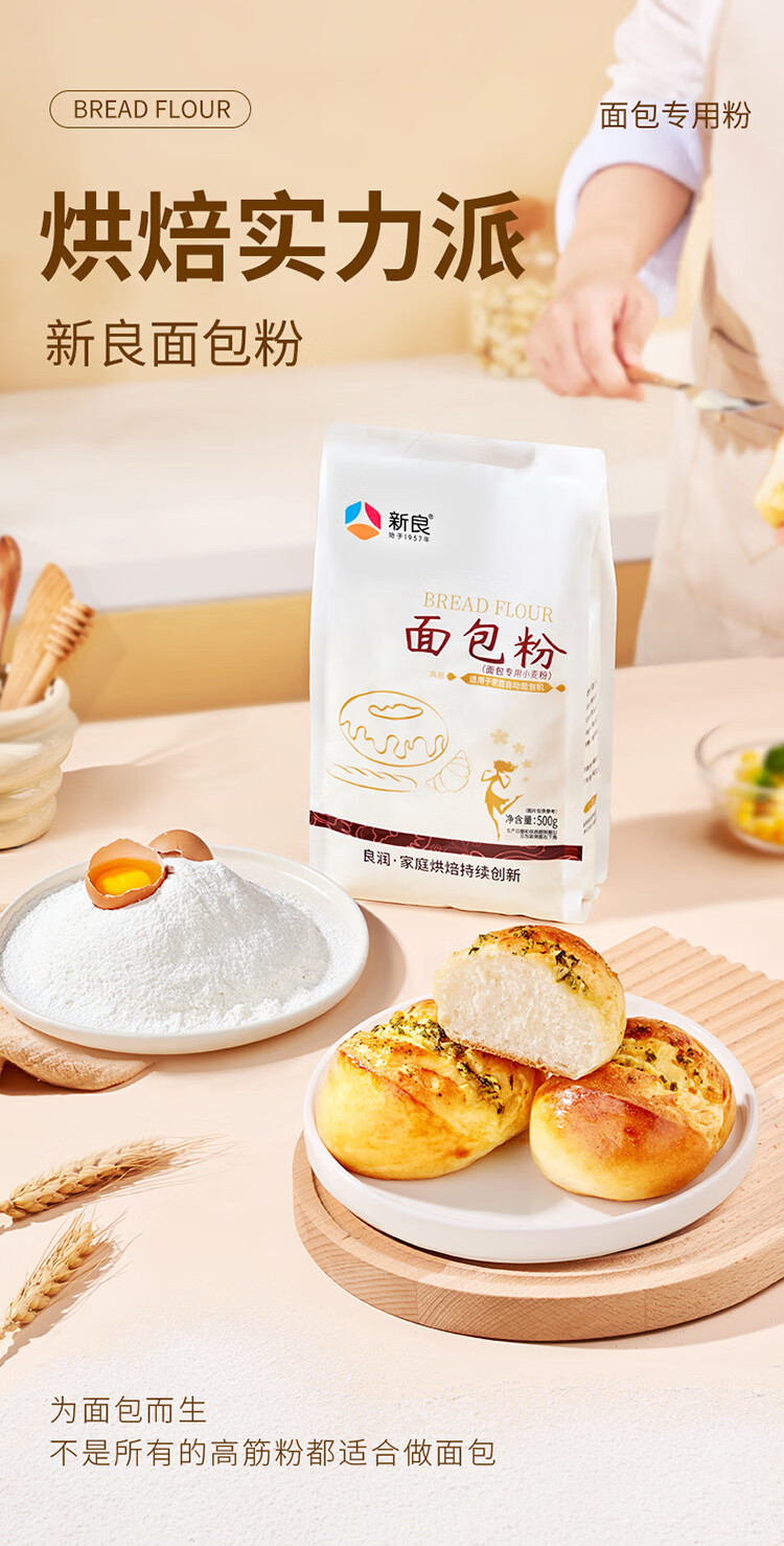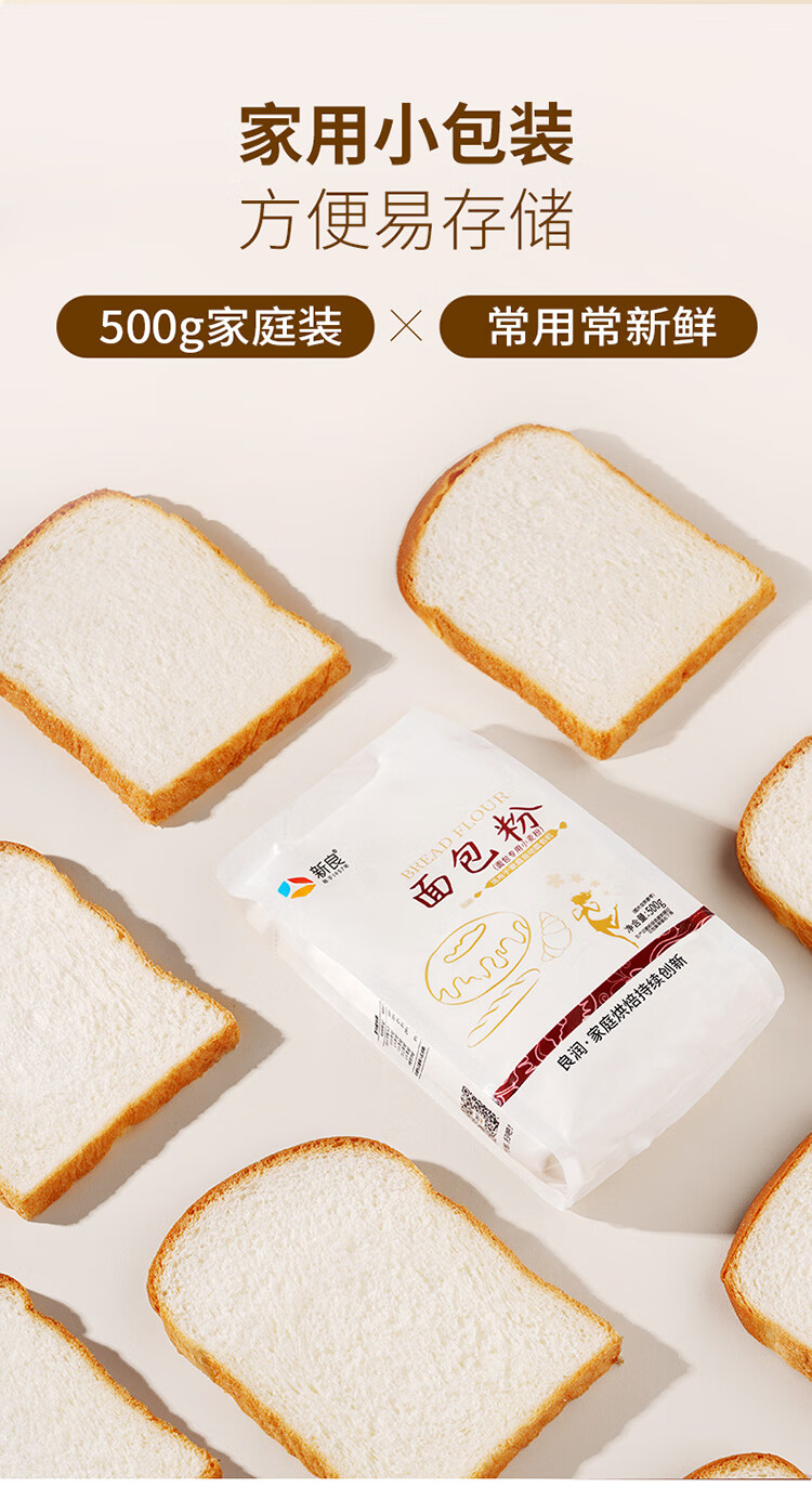 新良面包粉500g 高筋面粉 烘焙原料 手撕面包机用小麦粉
