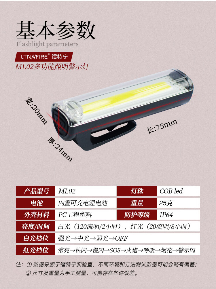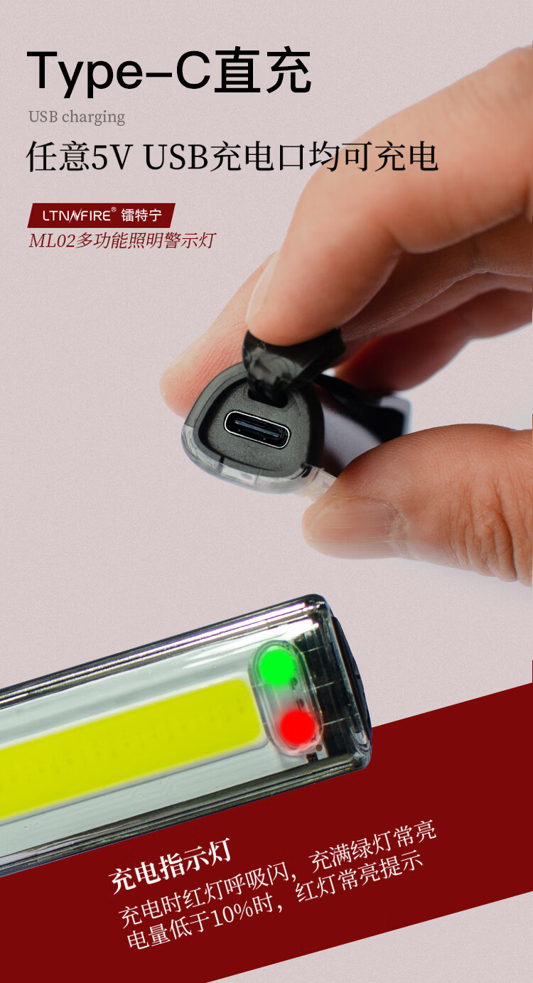 镭特宁ML02警示信号灯红白光充电 户外夜骑车尾灯长续航夜钓跑步肩夹灯 ML02标配