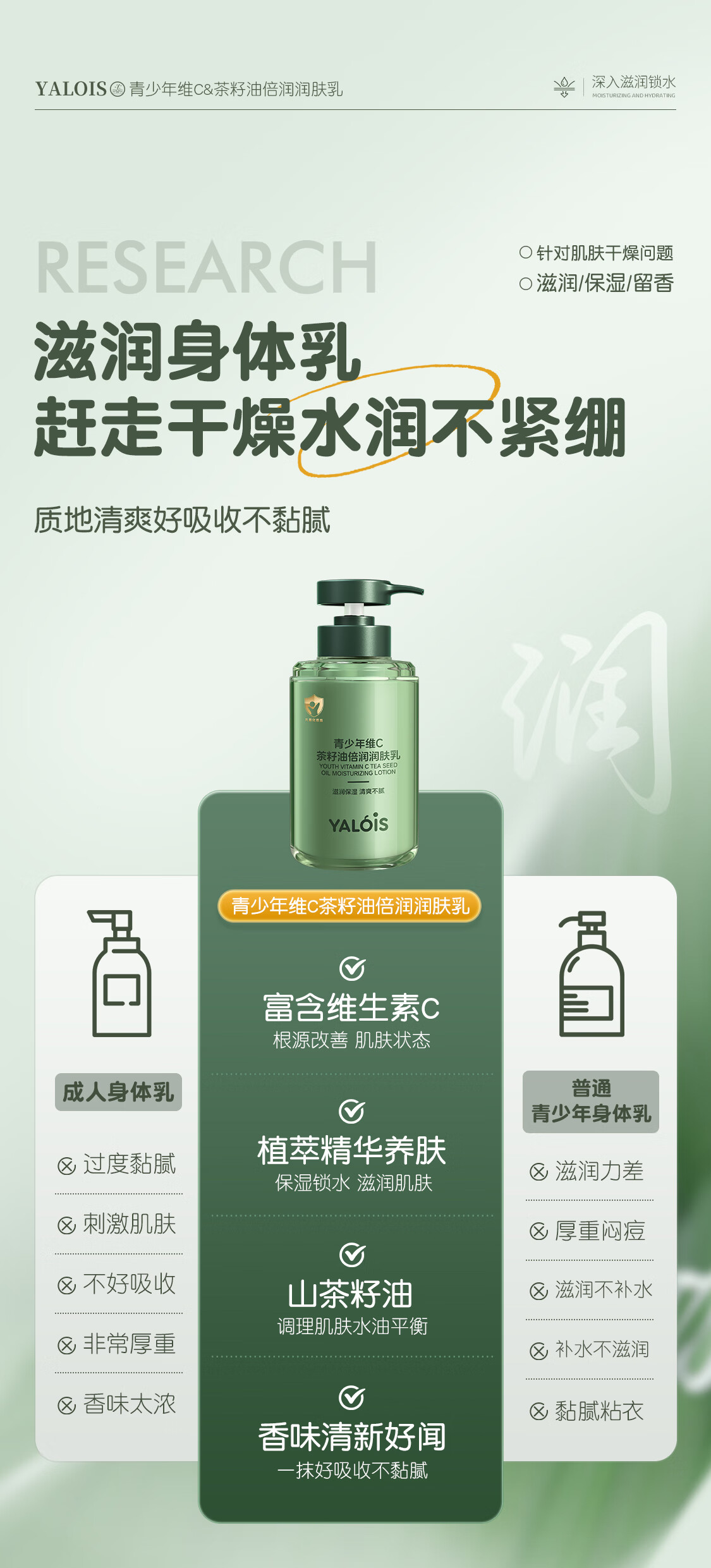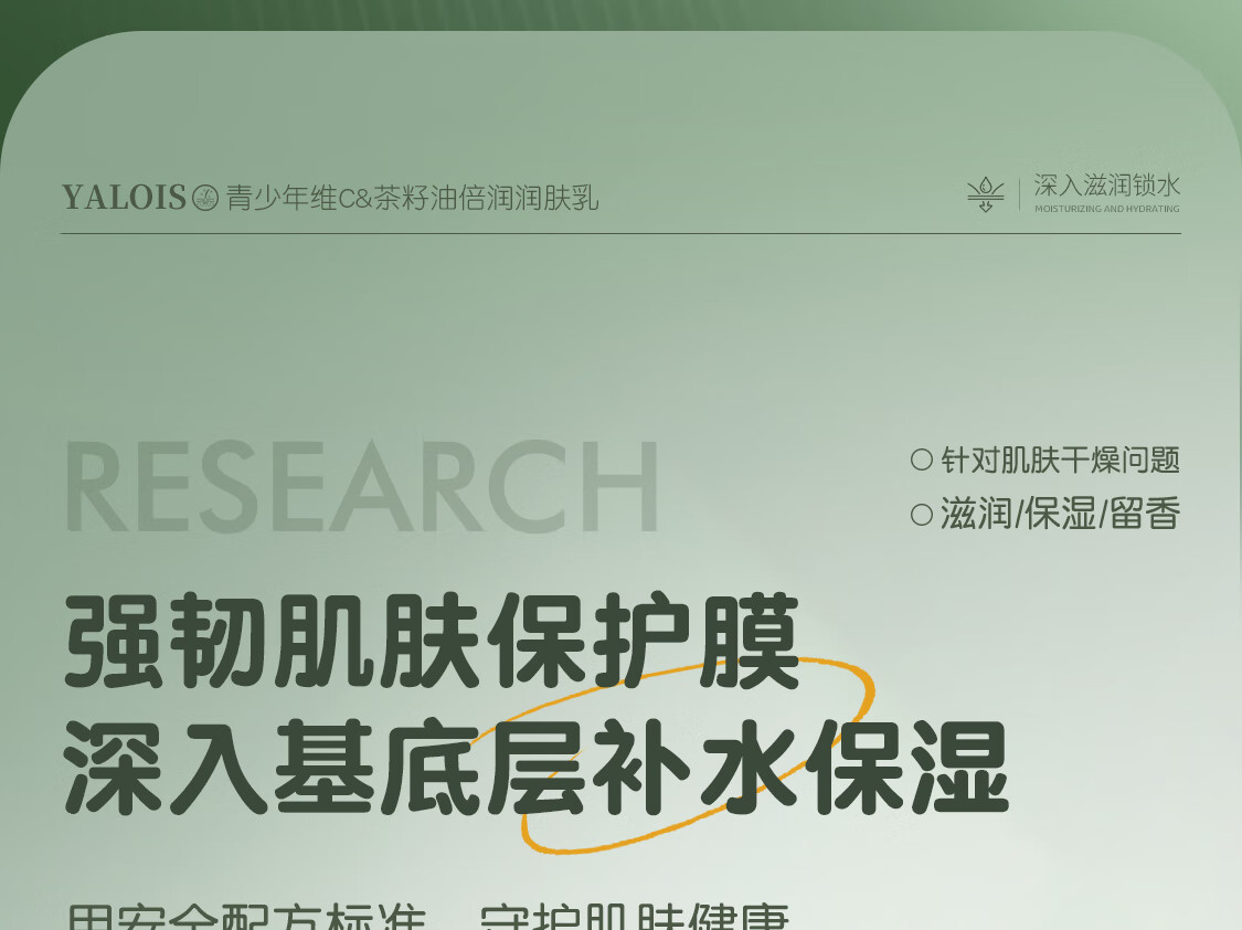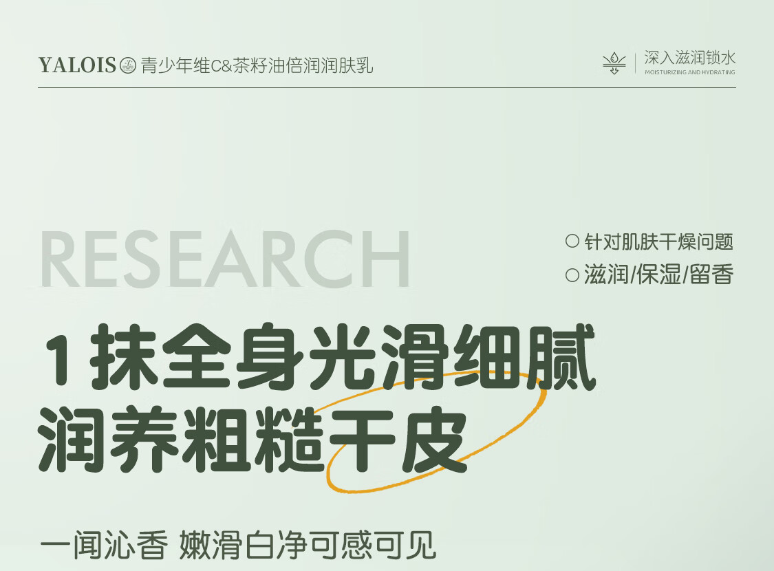 YALOIS青少年维C茶籽油身体乳补水保湿舒缓干燥久留香儿童润肤乳液600ml