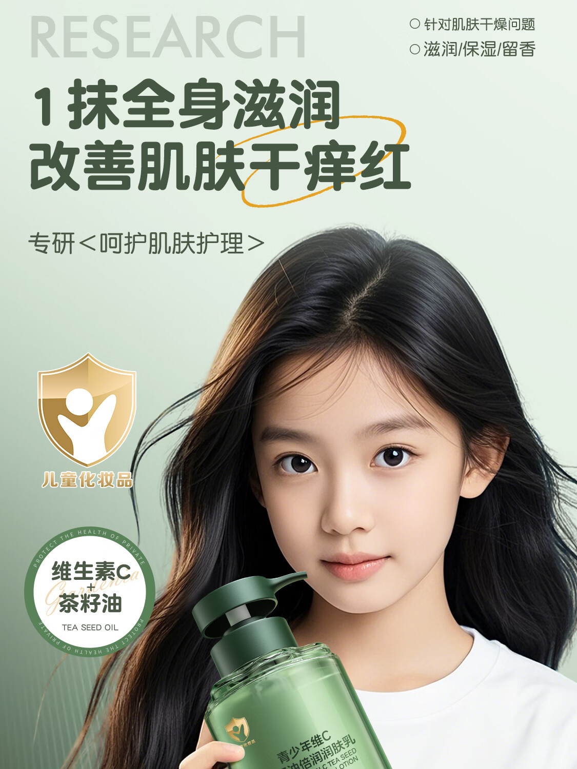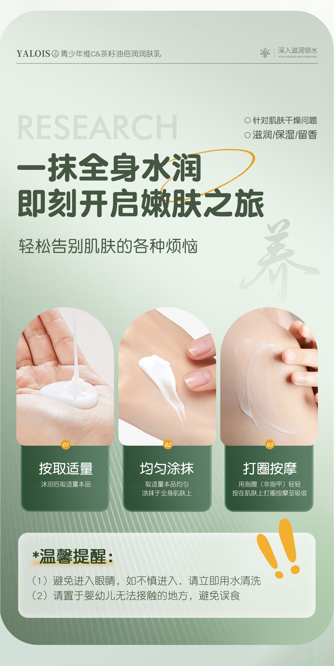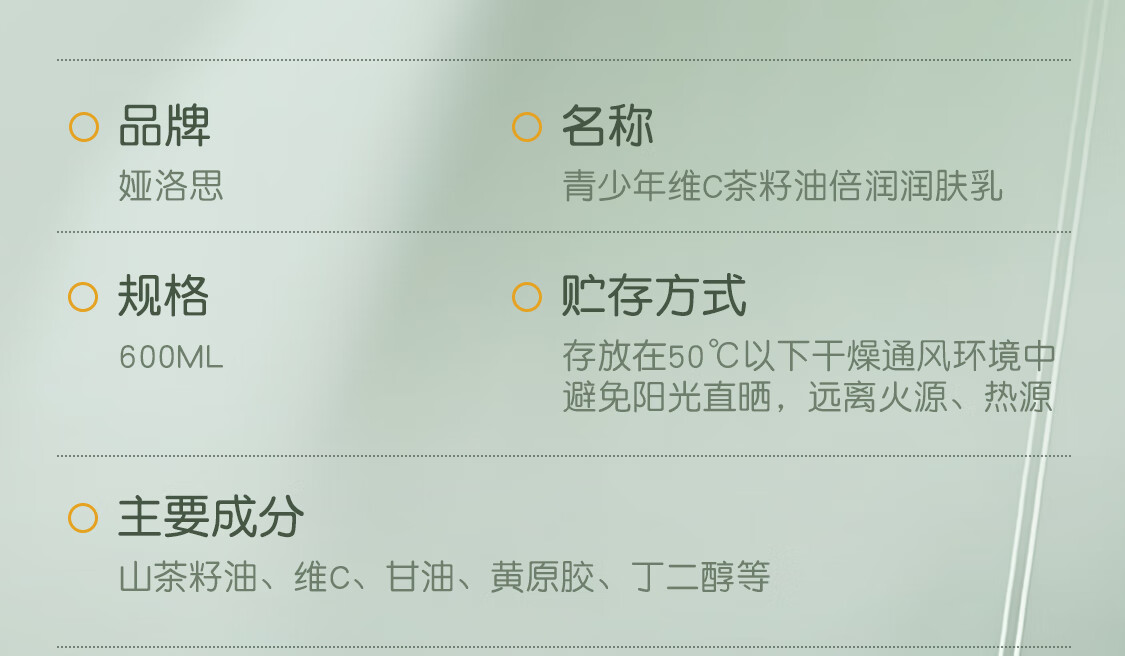 YALOIS青少年维C茶籽油身体乳补水保湿舒缓干燥久留香儿童润肤乳液600ml
