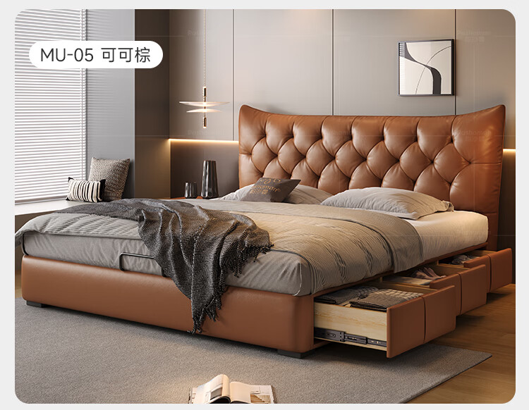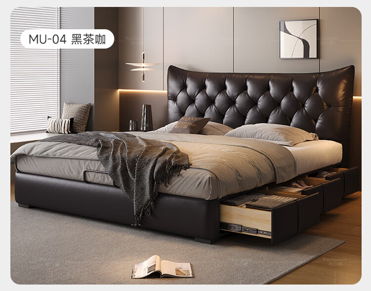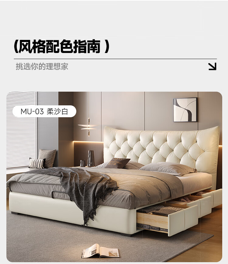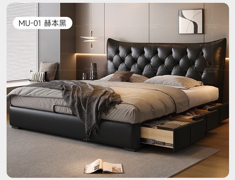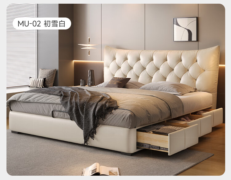 帕沙曼真皮床意式极简储物床主卧高端软包床轻奢婚床白色8099CP 【榉木】单床+TR1802#床头柜*1 框架结构1800mm*2000mm