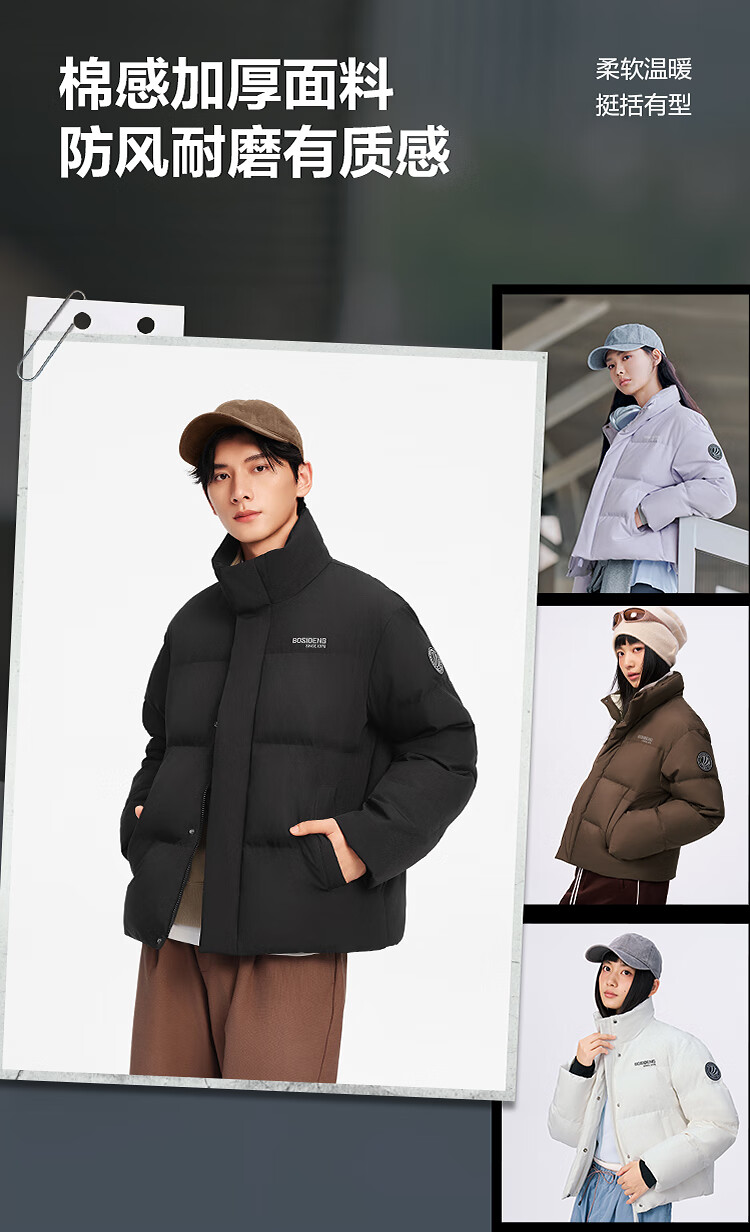 波司登冬羽绒服男女情侣款修身短款90绒加厚运动面包服外套