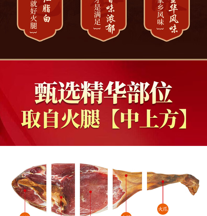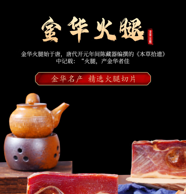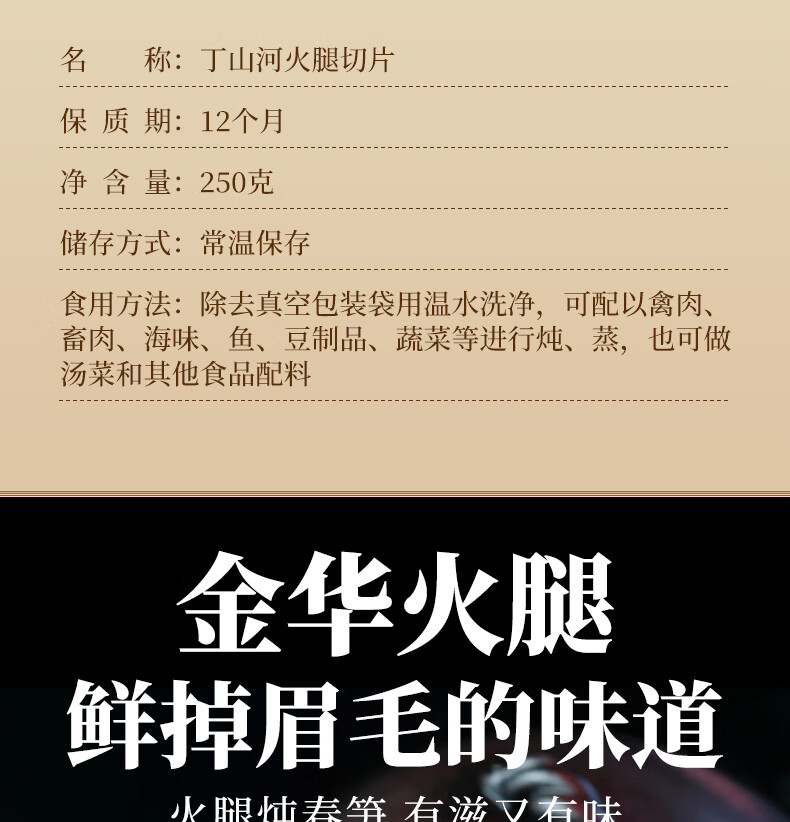 丁山河金华火腿切片250g 腊肉火腿肉 火腿块 过年年货煲汤下酒菜