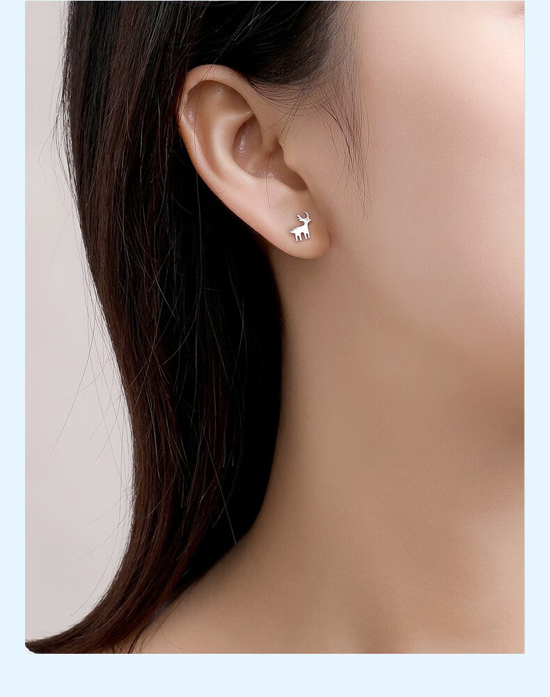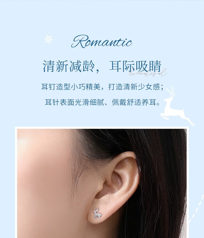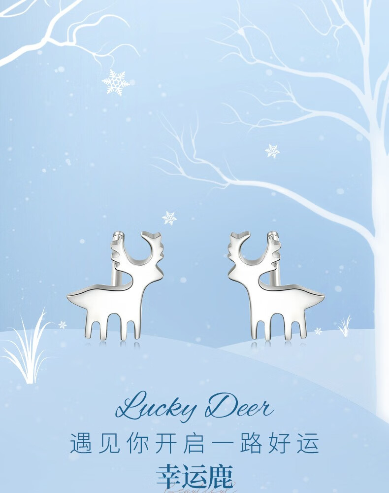 周六福(ZLF) S925银饰耳钉女一鹿有你高级感本命年耳环饰银饰送礼 耳钉一对
