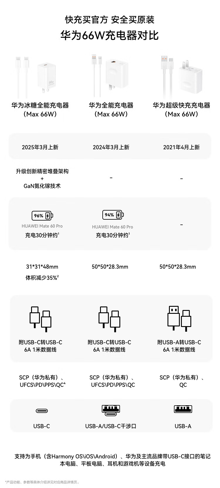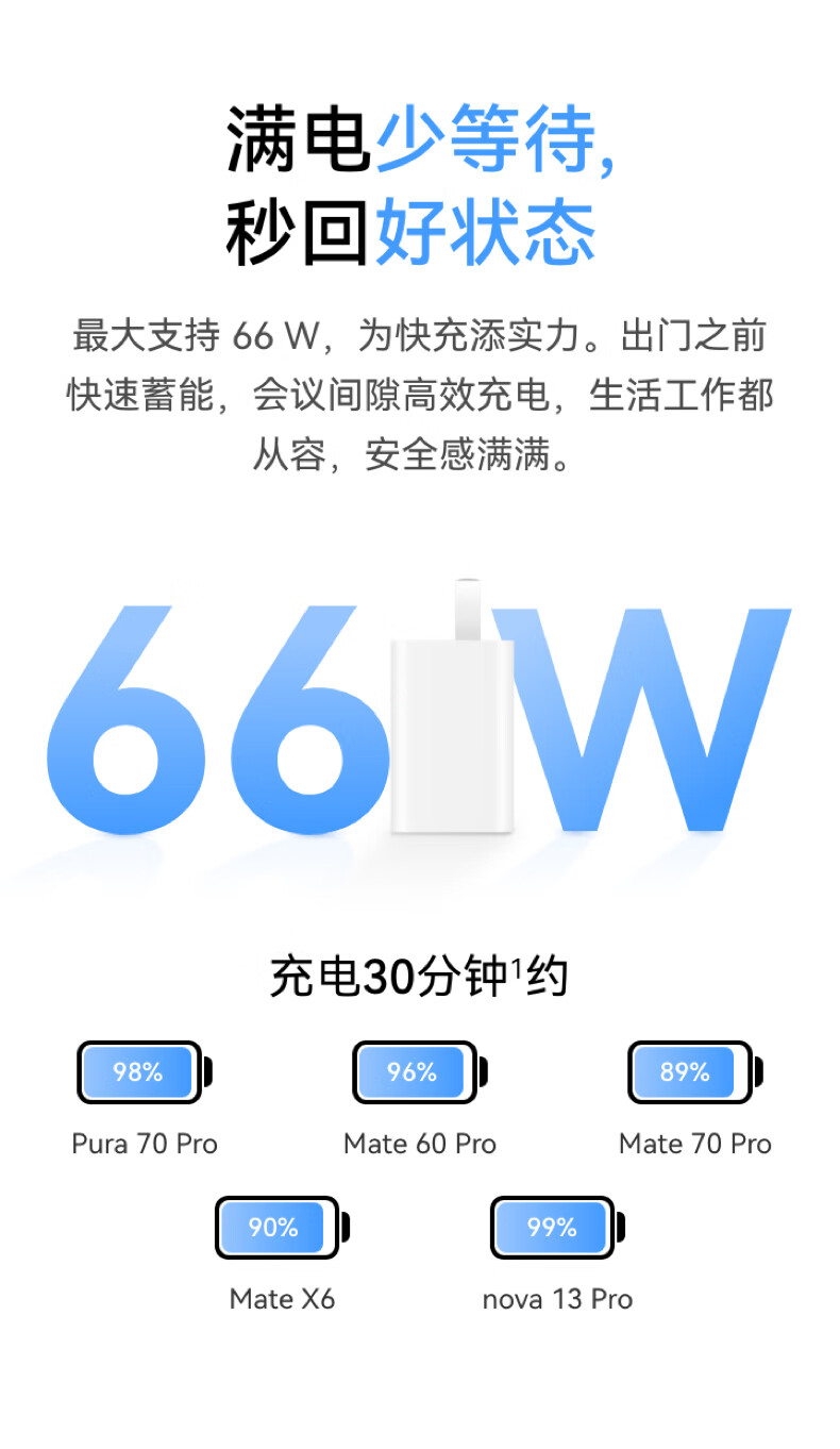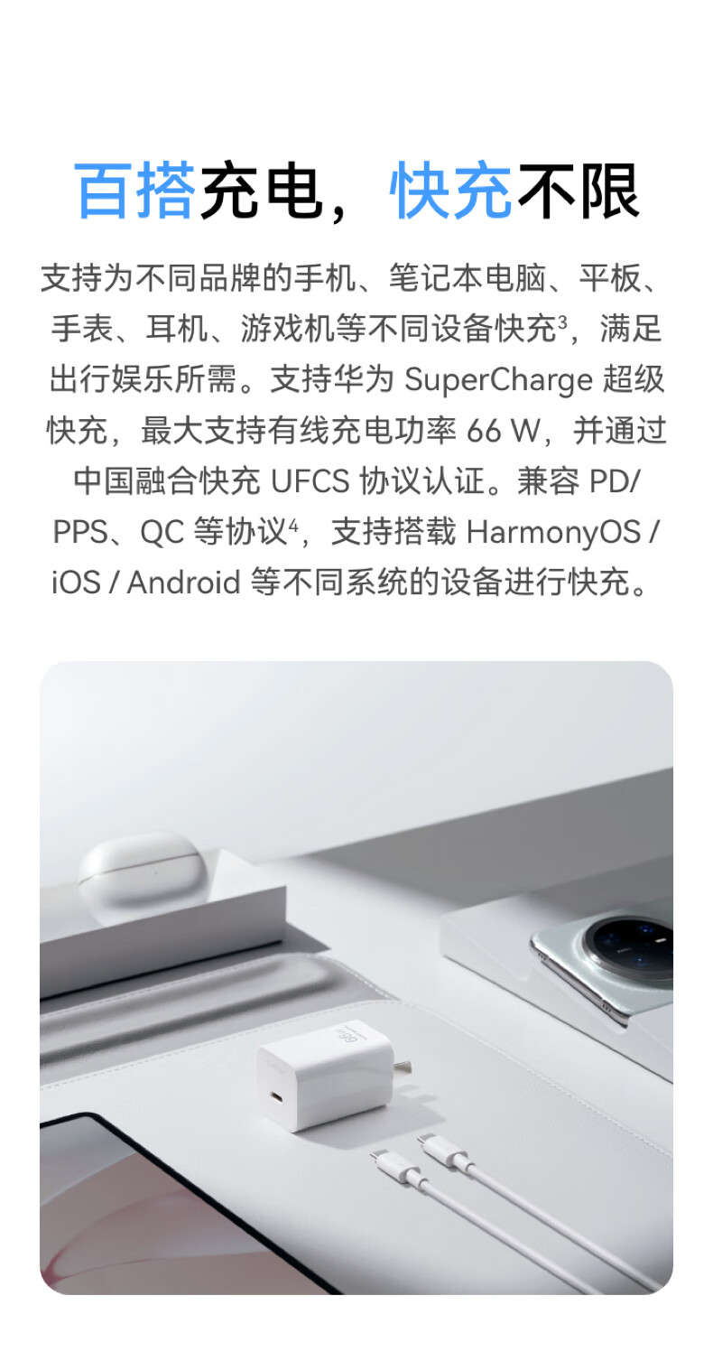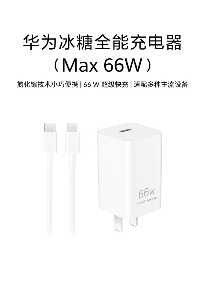 华为冰糖全能充电器(Max 66W) 氮化镓技术3C认证 66W超级快充华为原装充电器适用于Mate70系列/MateXTs