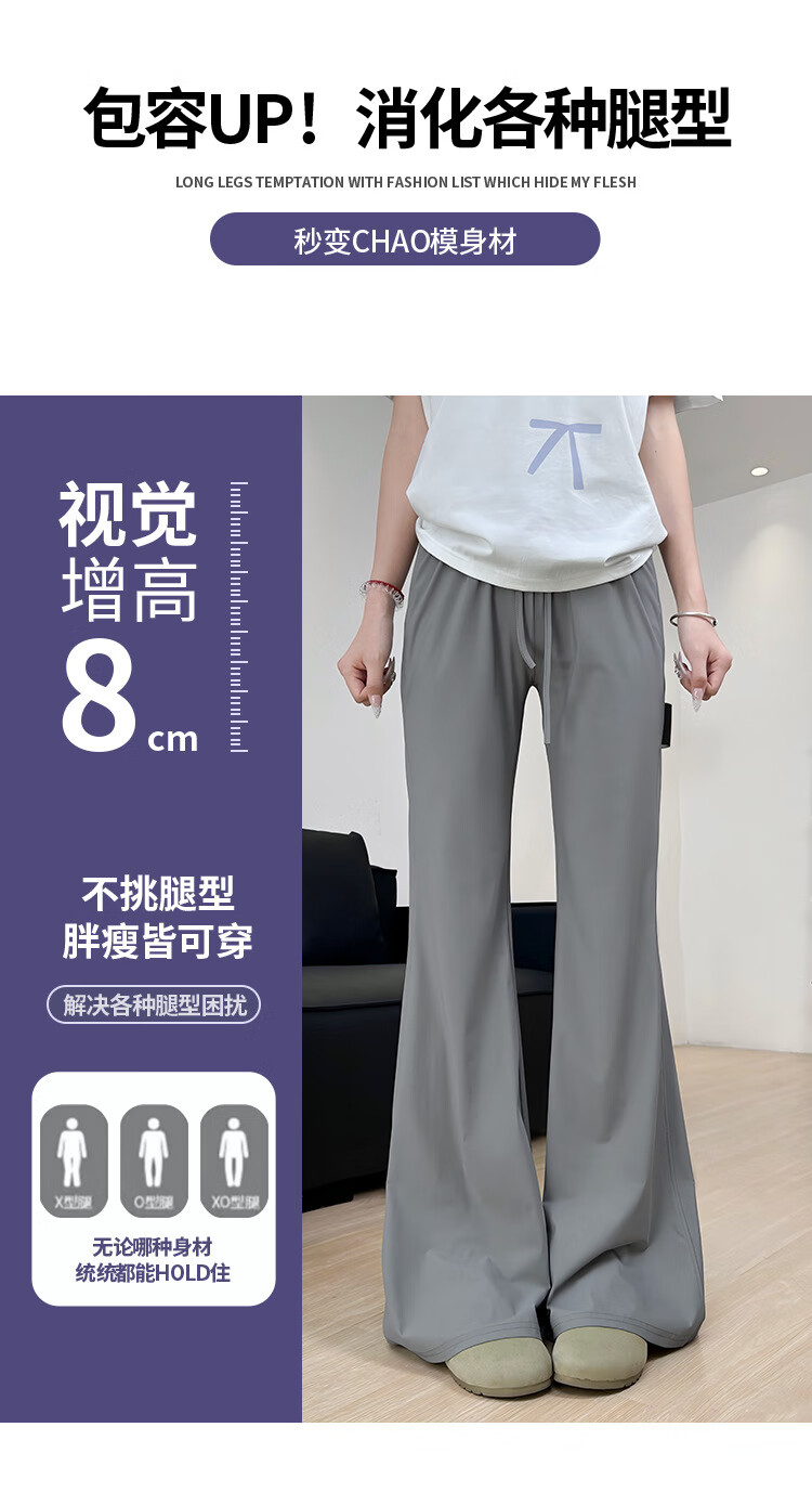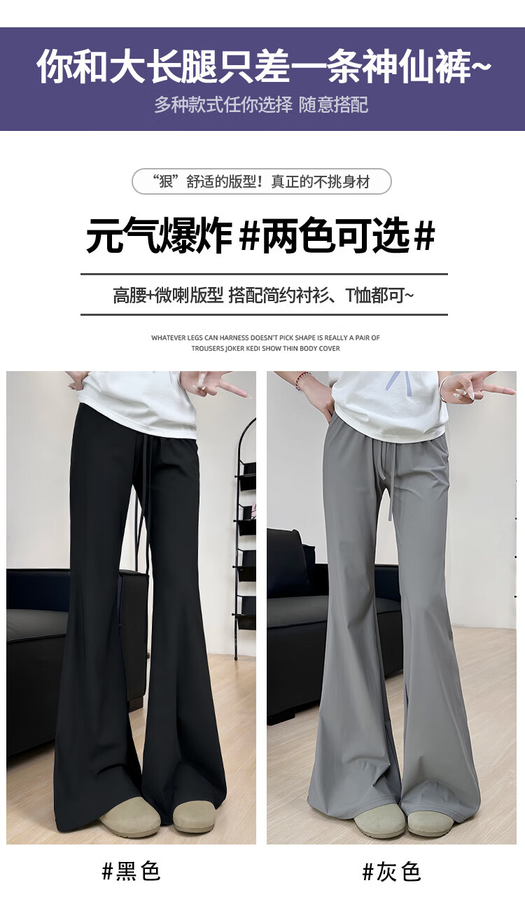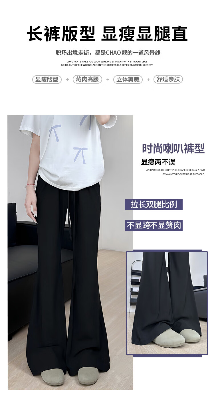 相伊恋人微喇休闲裤女2026年夏季新款冰丝薄款防晒裤小个子速干运动阔腿裤 黑色【小个款-冰丝凉感UPF50+】 M 【推荐96-110斤】