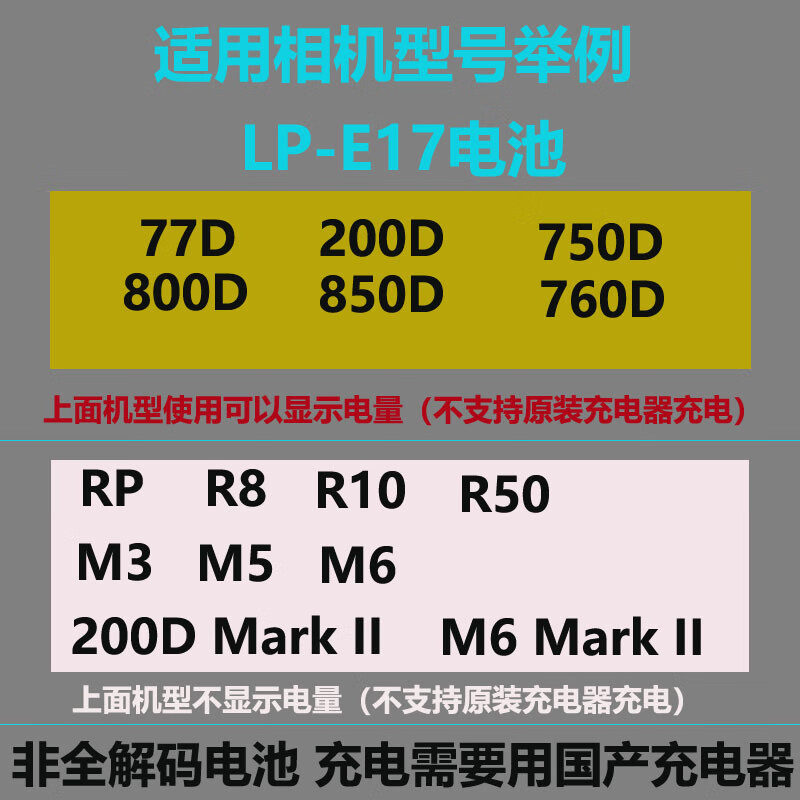 NOTVDLPE17电池适配佳能R50R10RP200D2750D77DR8充电器LP-17电池 (原装充电器不能充),LP-E17充电器 LP-E17电池+充电器
