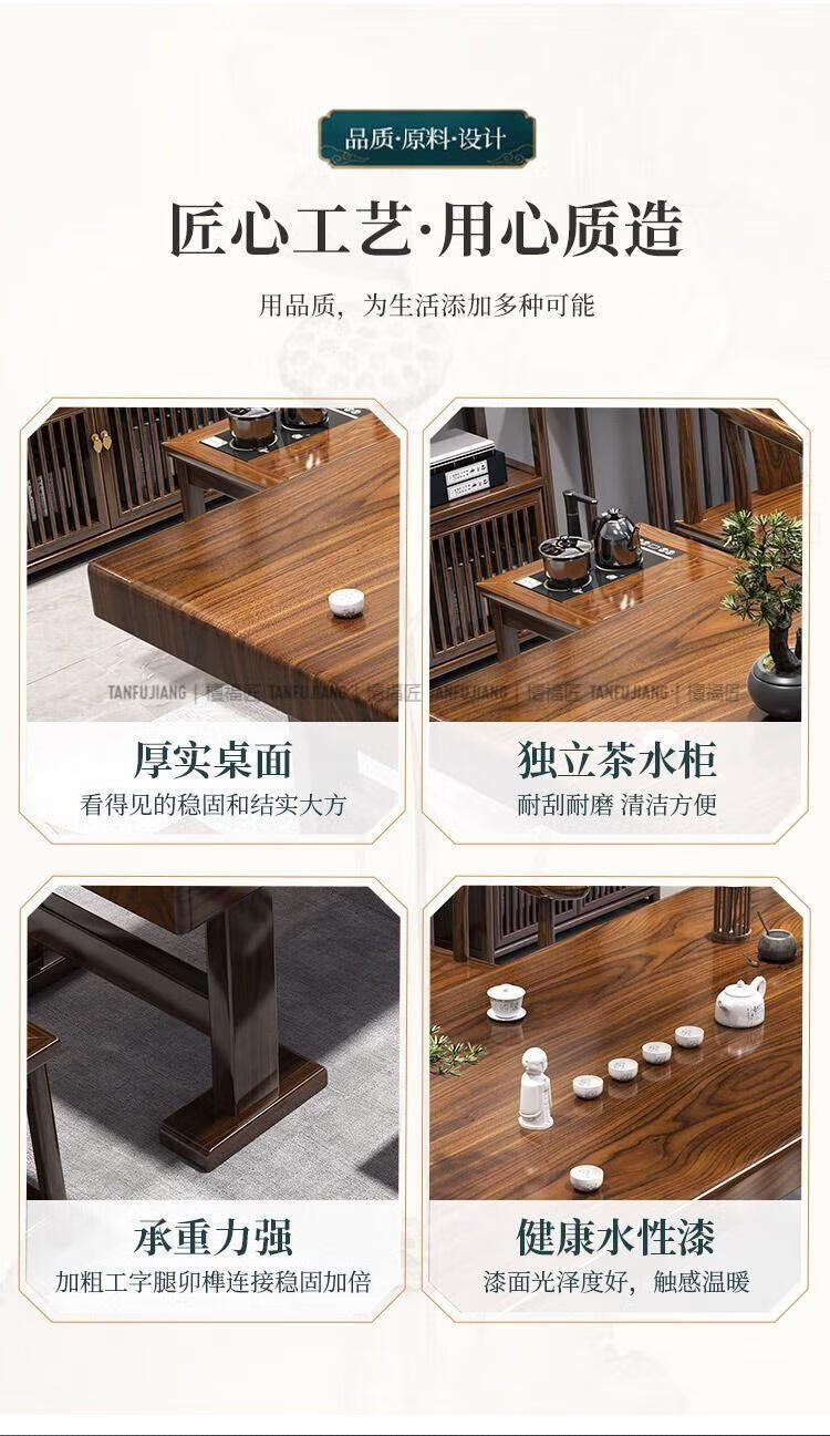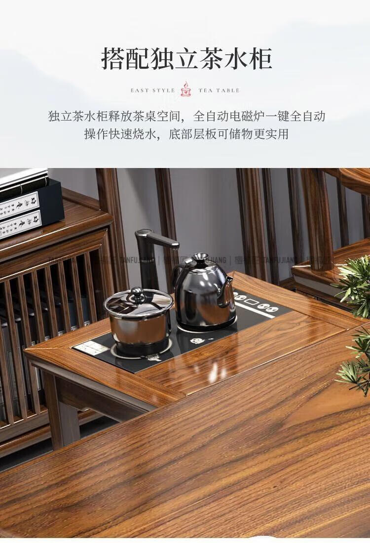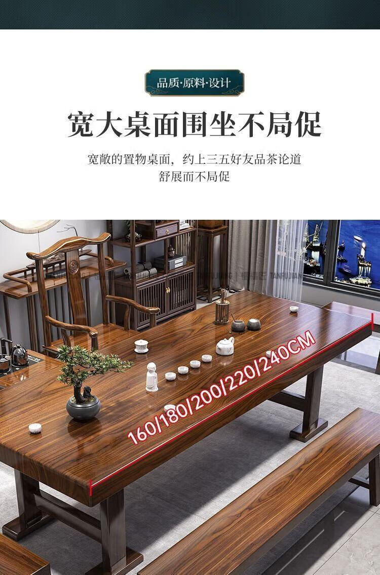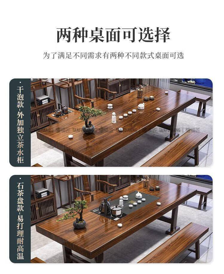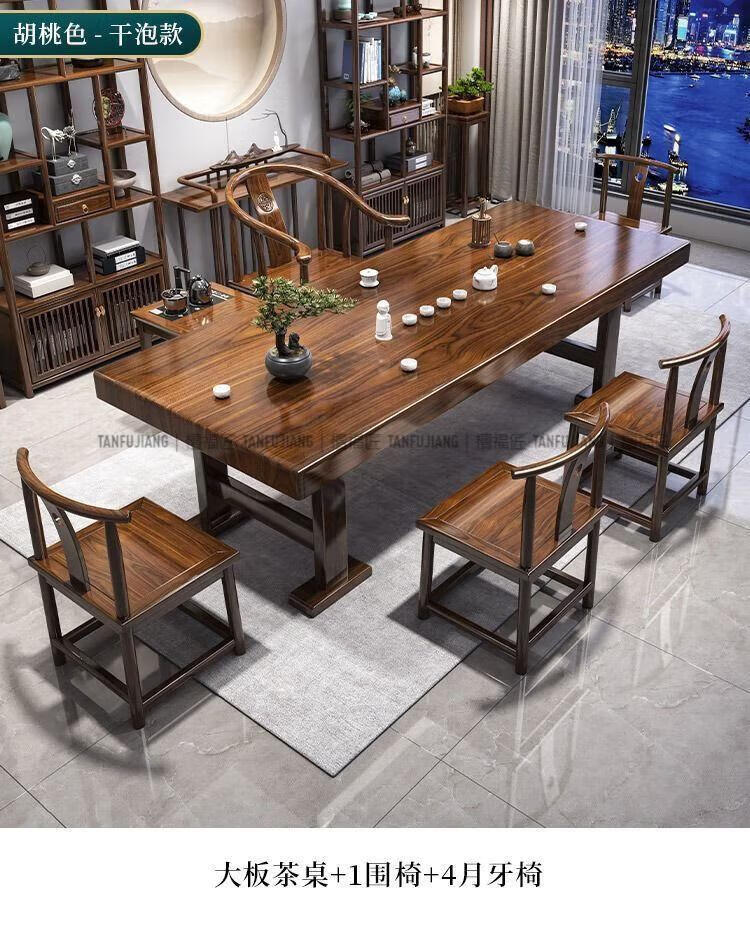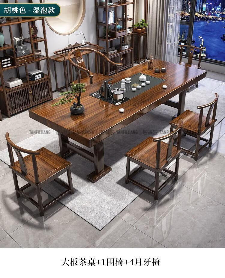 梵盛林2026新款实木茶桌大板茶桌椅组合一整套茶台一体全自动茶具接待室 石盘款+电磁炉 加厚1.6米桌+1围椅+4月牙椅